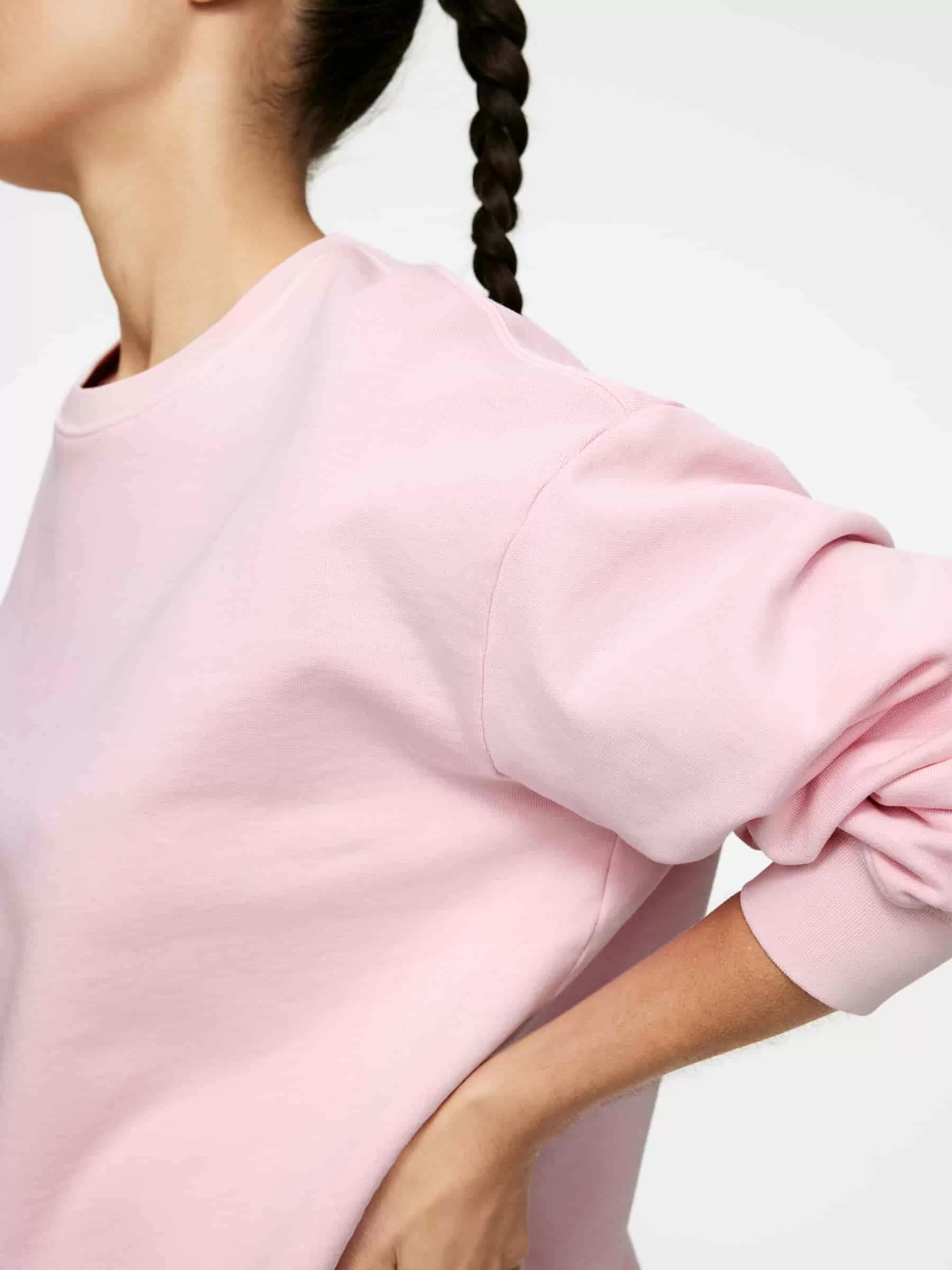 Sudadera confeccionada en algodón con parte inferior de felpa francesa para propiedades que absorben la humedad. Canalé en cuello y puños. Ajuste holgado.