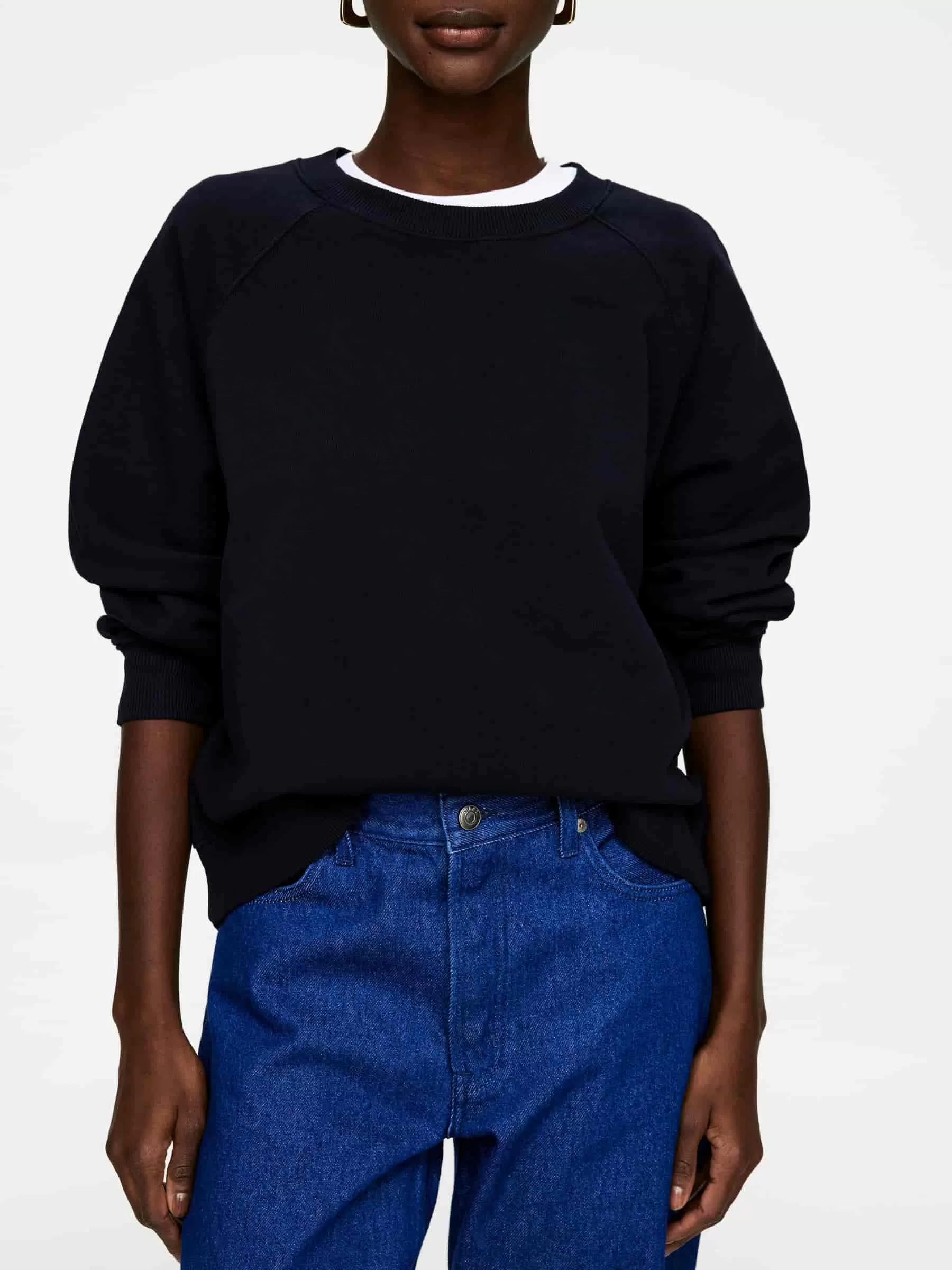 Sudadera de cuello redondo confeccionada con un suave tejido de felpa francesa de algodón. Diseñado con mangas raglán y ribetes de canalé. Ajuste regular.