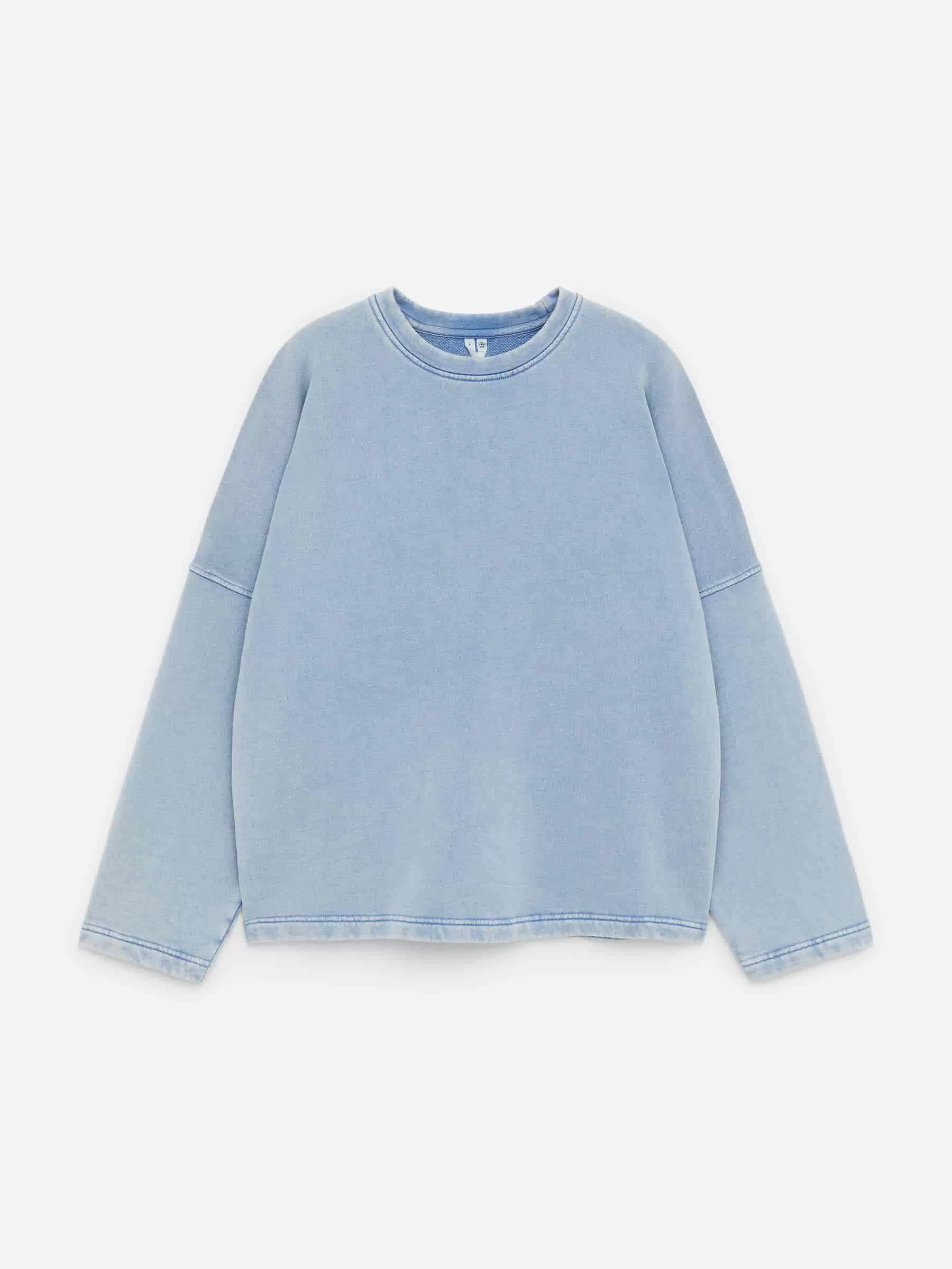 Sudadera de cuello redondo confeccionada en suave mezcla de algodón con efecto lavado. Diseñado con hombros caídos. Ajuste regular.