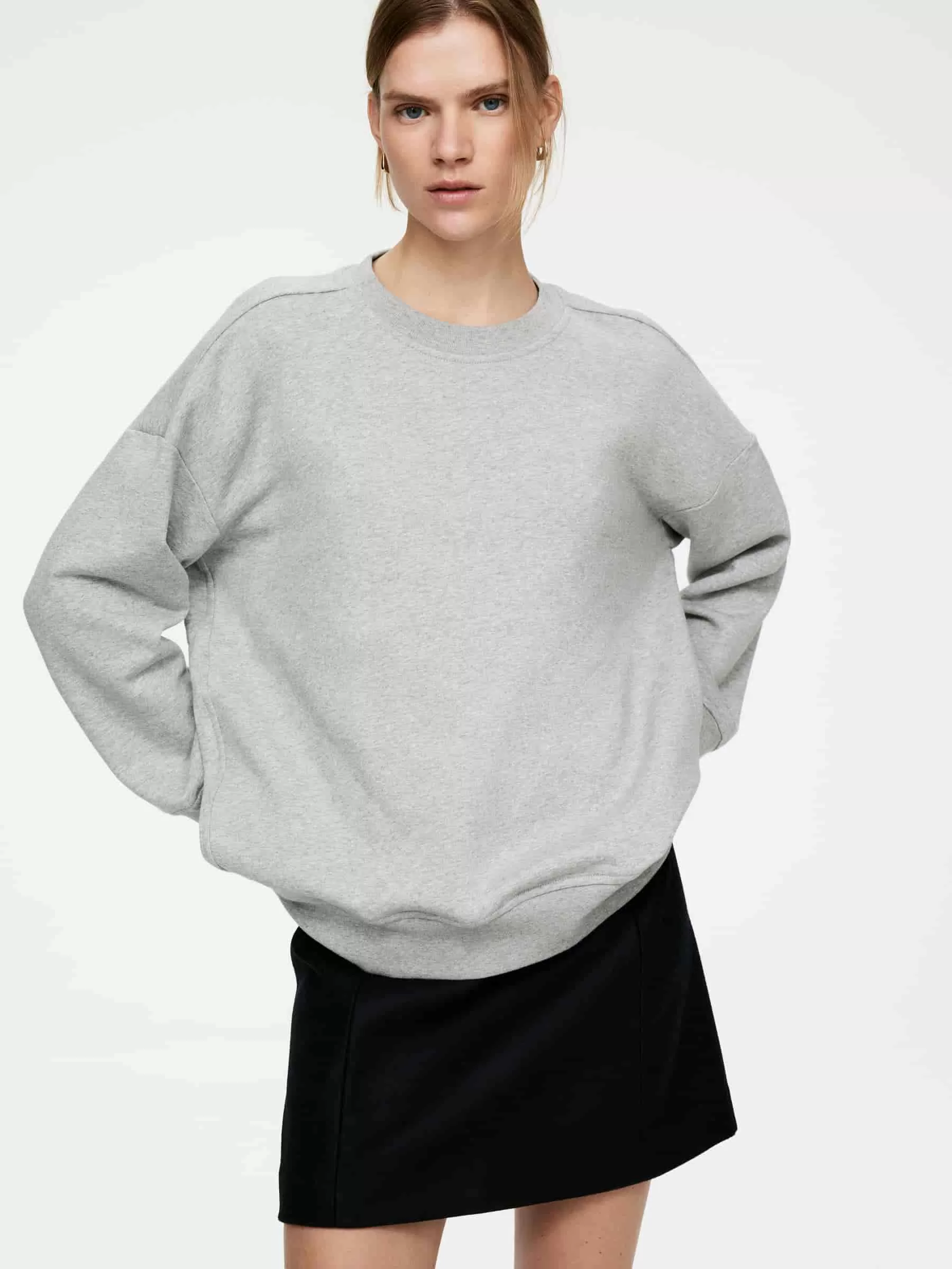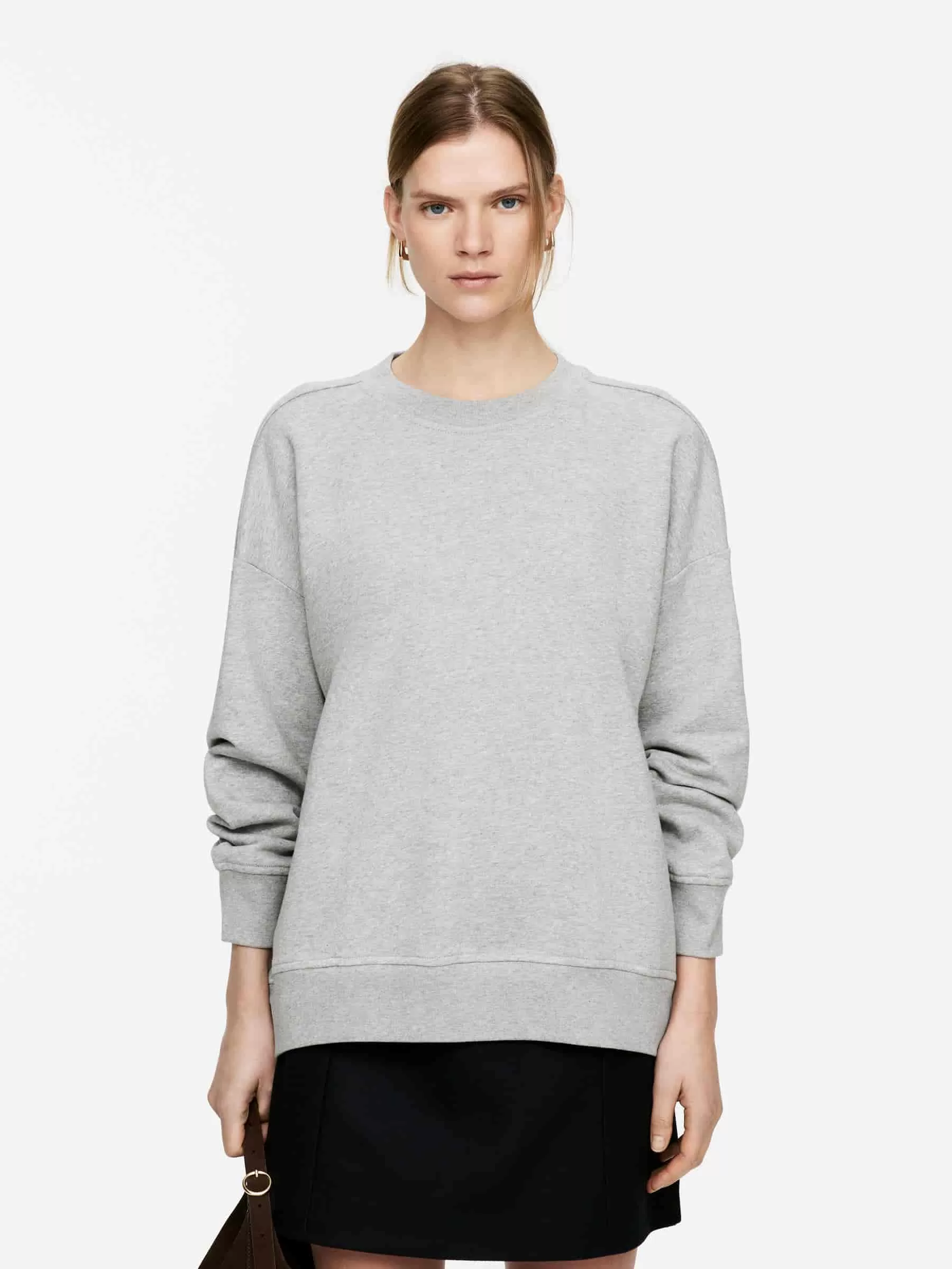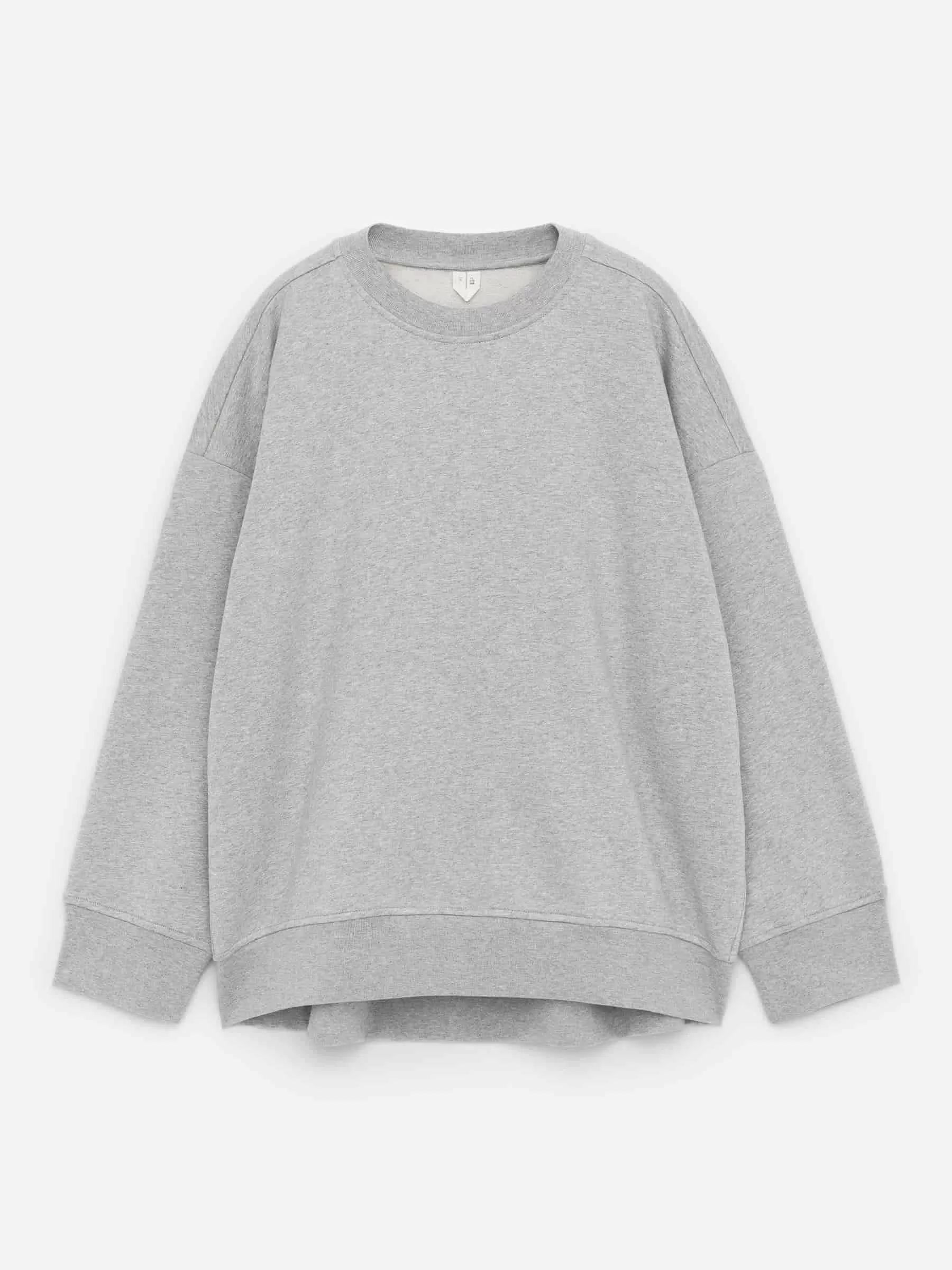 Sudadera relajada confeccionada en algodón con una parte inferior de felpa francesa para propiedades que absorben la humedad. Un estilo de cuello redondo con ribetes acanalados, hombros caídos y corte extragrande.