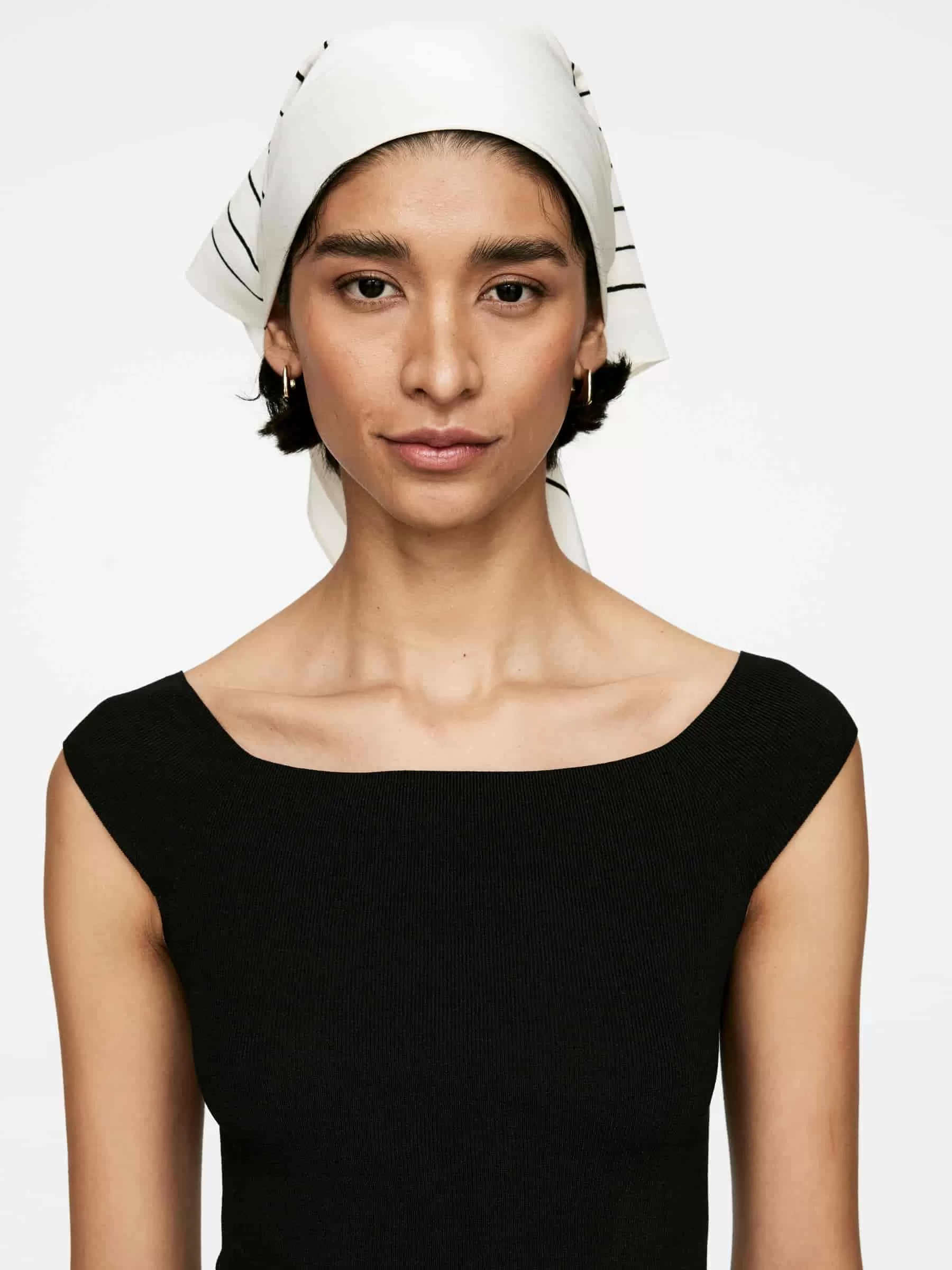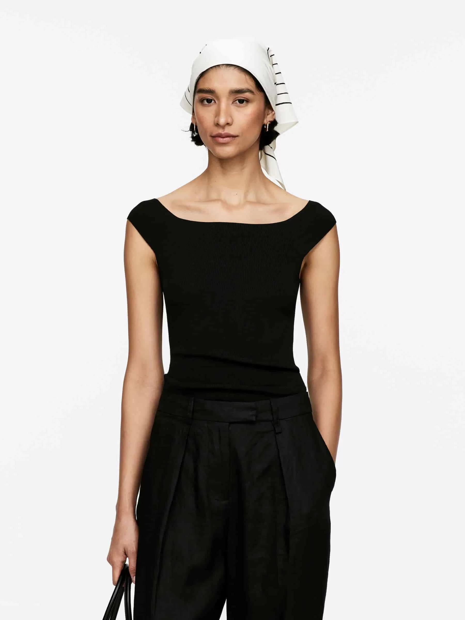 Top con hombros descubiertos tejido en una mezcla de viscosa. Corte ajustado.