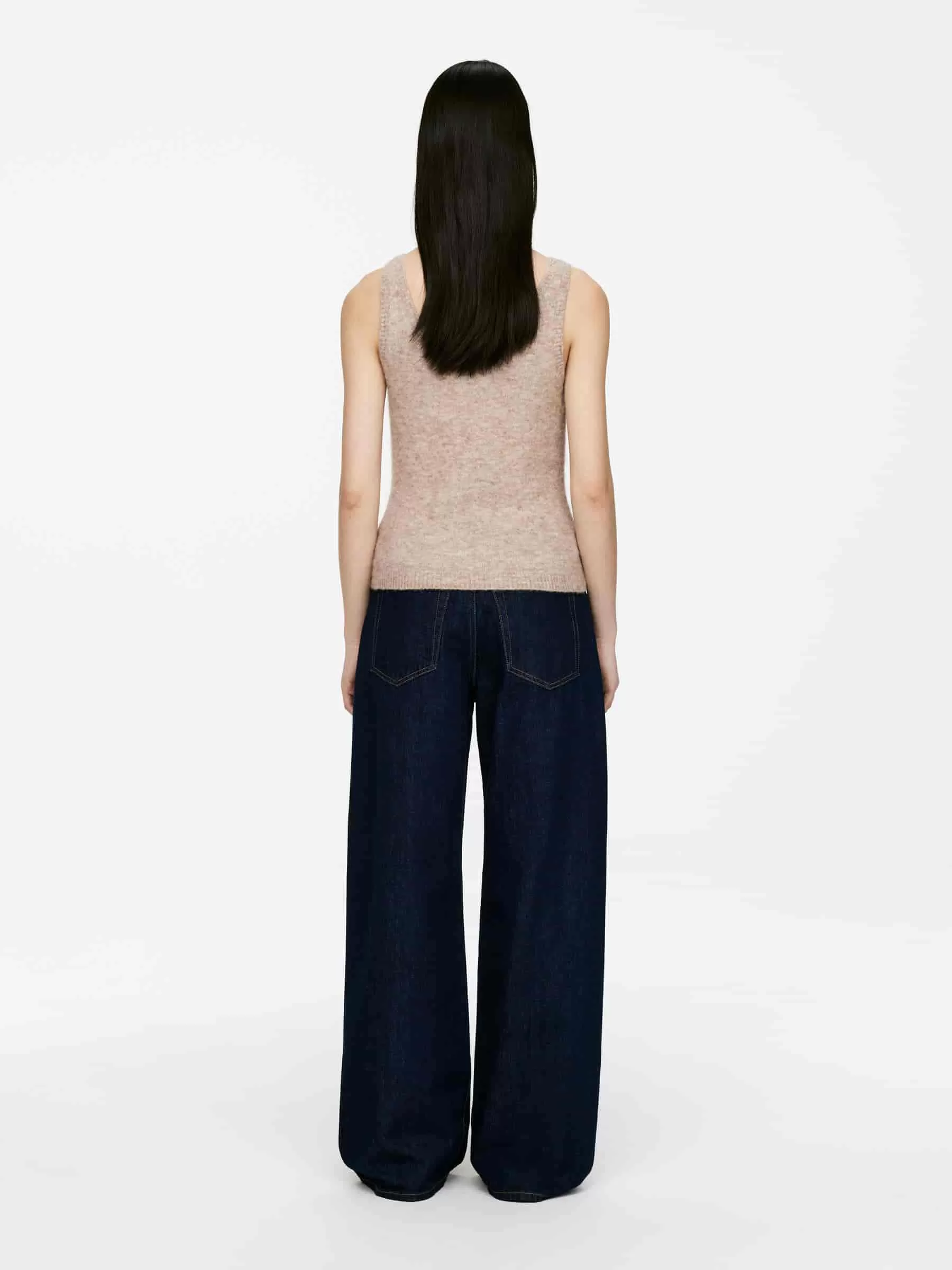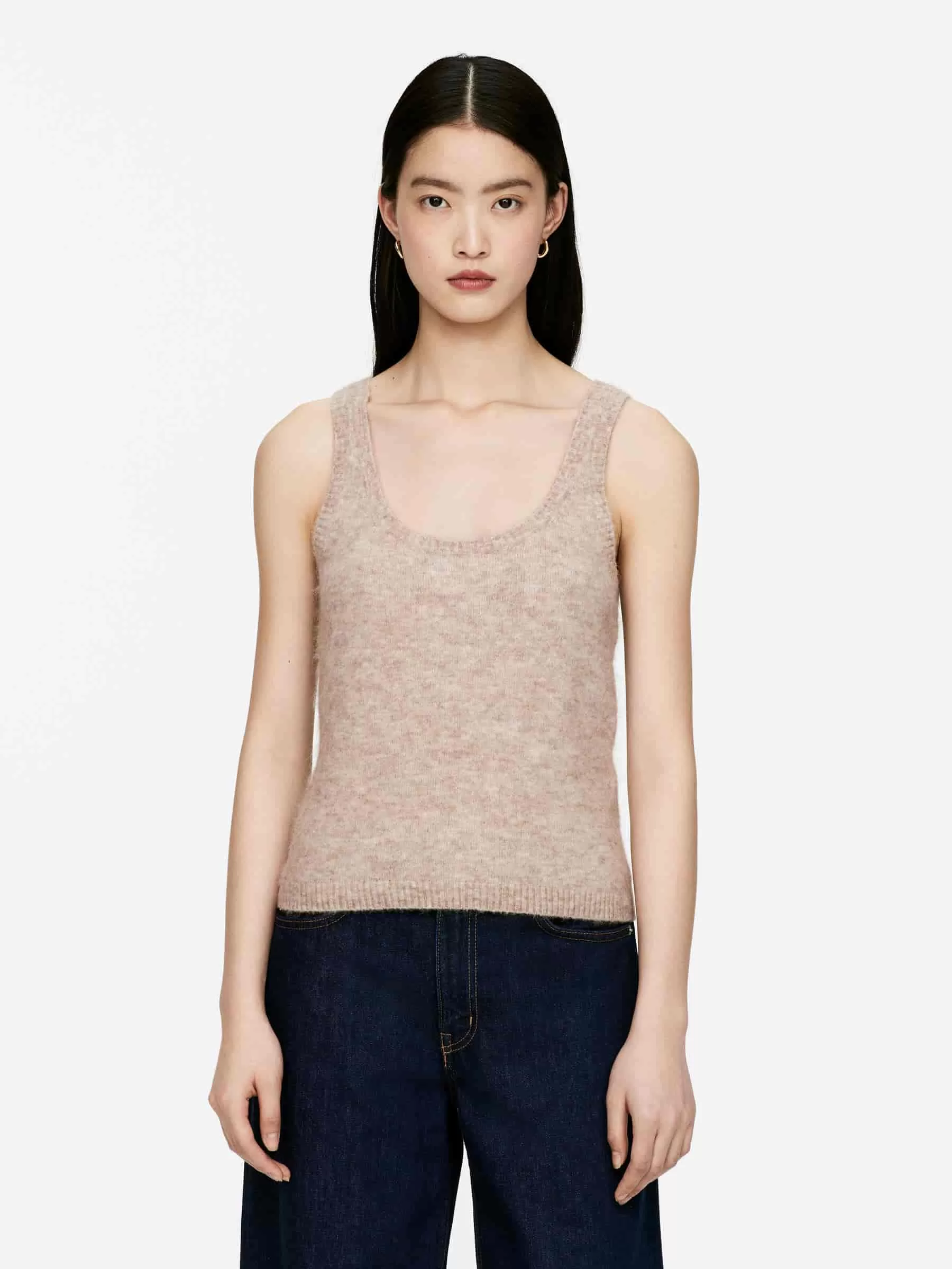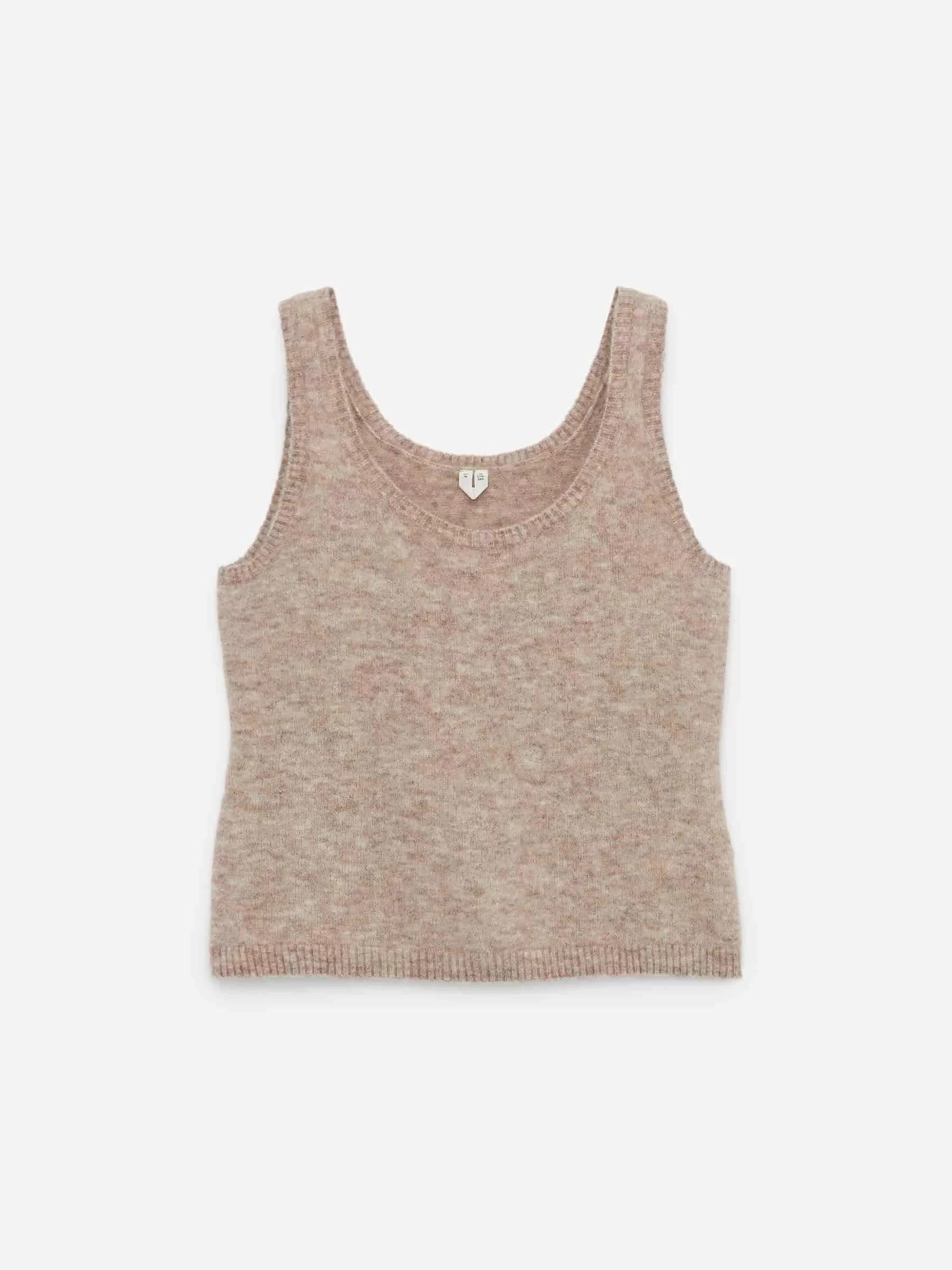 Camiseta de tirantes de punto en mezcla de lana y alpaca. Ajuste regular. Este estilo contiene 31% RAS Alpaca y 31% lana RWS (TE-00047206). Los productos certificados según el Estándar de lana responsable (RWS) y el Estándar de alpaca responsable (RAS) contienen lana y fibra de alpaca de granjas certificadas de forma independiente según los requisitos de bienestar animal y gestión de la tierra.