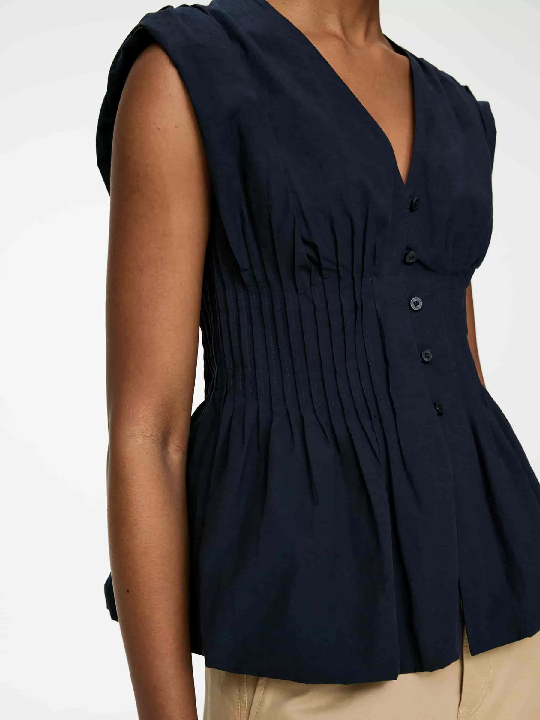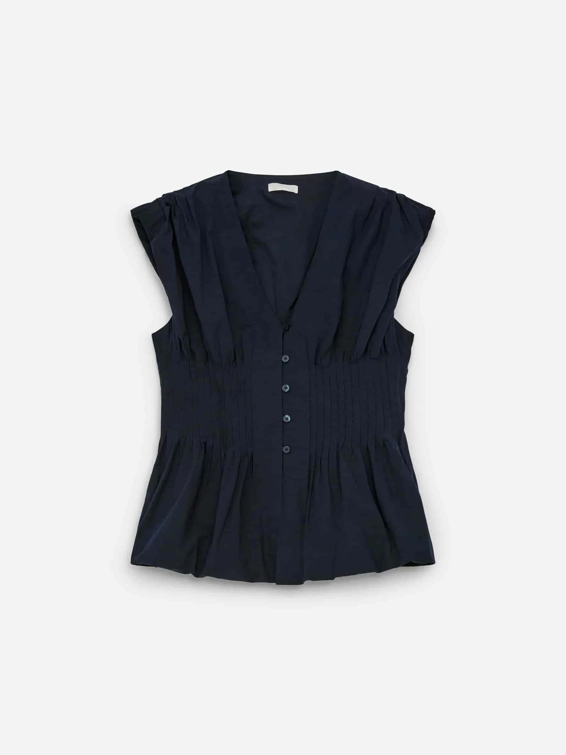 ARKE Mujer Top pintuck con dobladillo de burbujas Azul oscuro