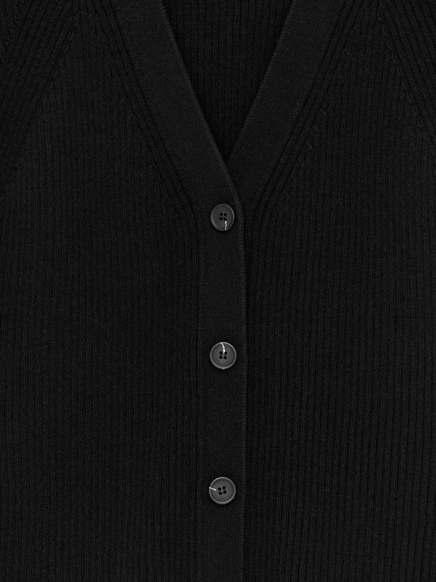 Top sin mangas en punto de canalé de algodón. Diseñado con un frente en forma de V y cierre de botón. Ajuste regular.
