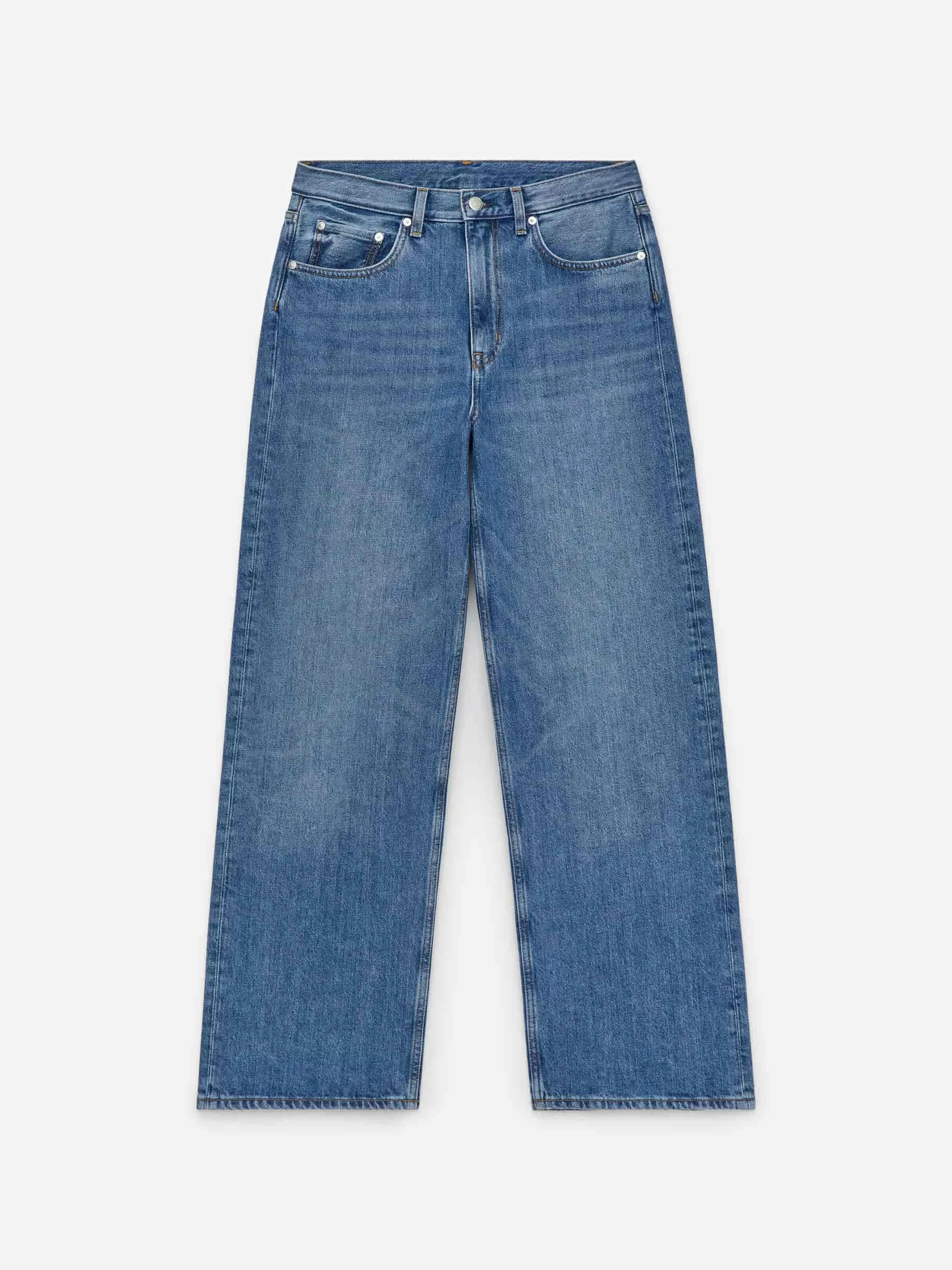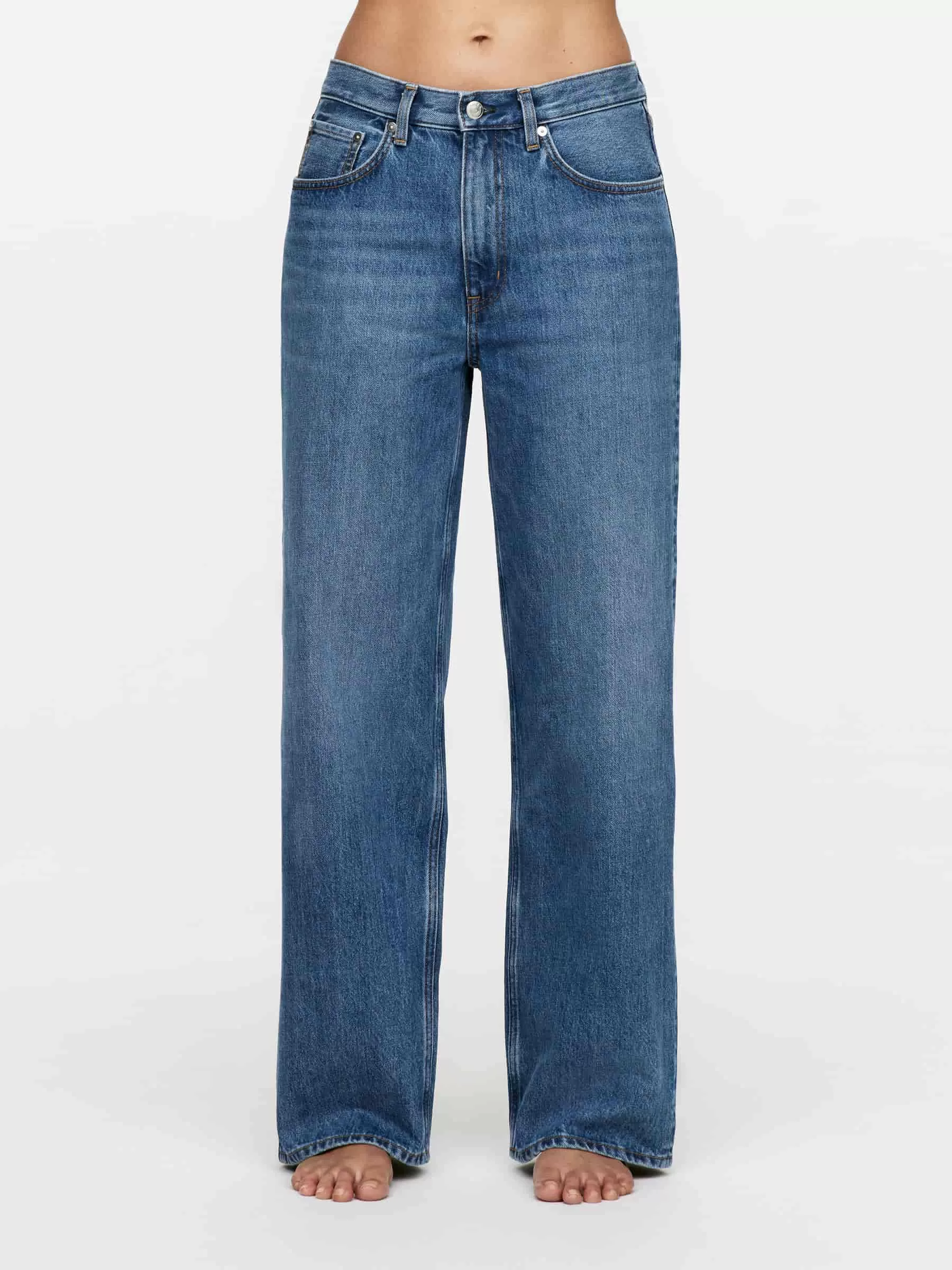 CORAL está confeccionado en denim no elástico y presenta cintura alta, ajuste relajado y perneras anchas.