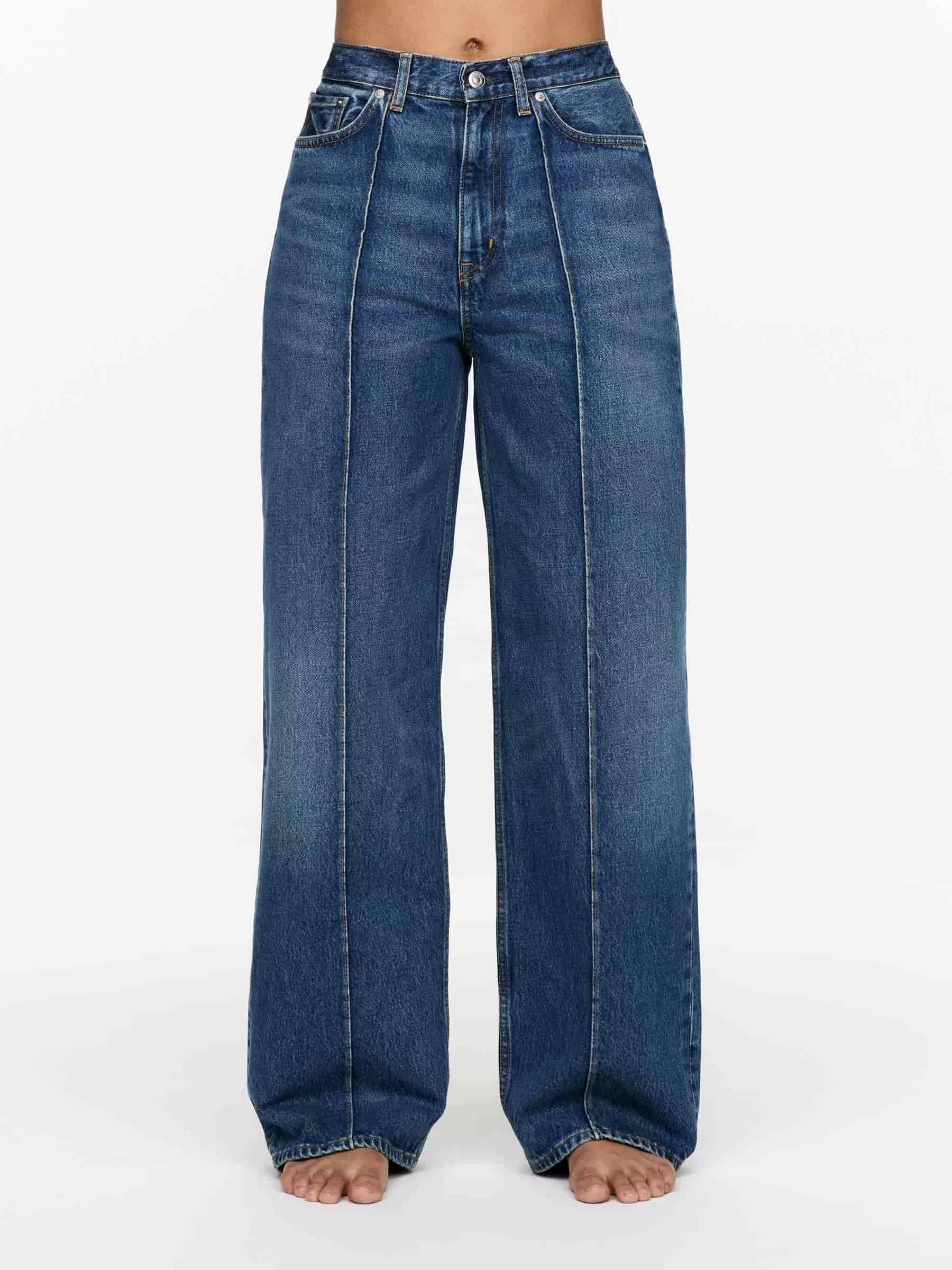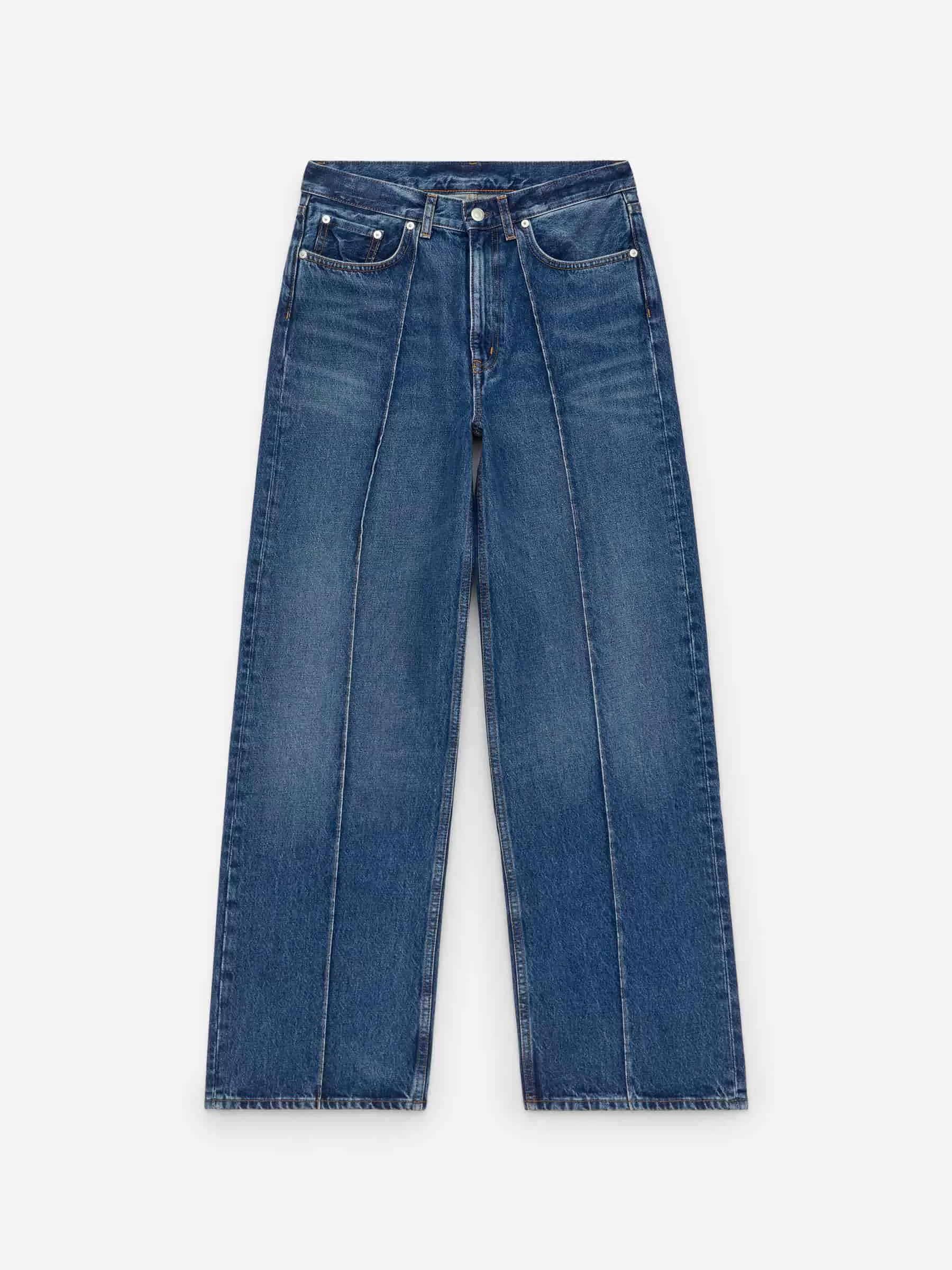CORAL Pintuck está confeccionado en denim no elástico y presenta pliegues a presión a lo largo de la parte delantera y trasera, cintura de talle alto, ajuste relajado y perneras anchas.