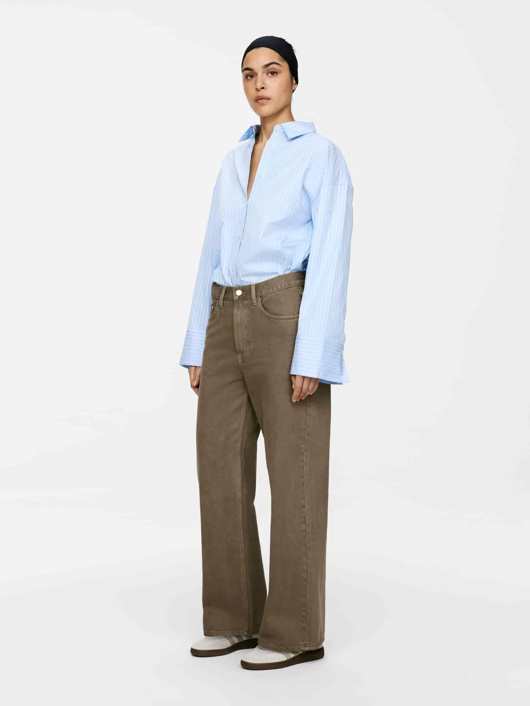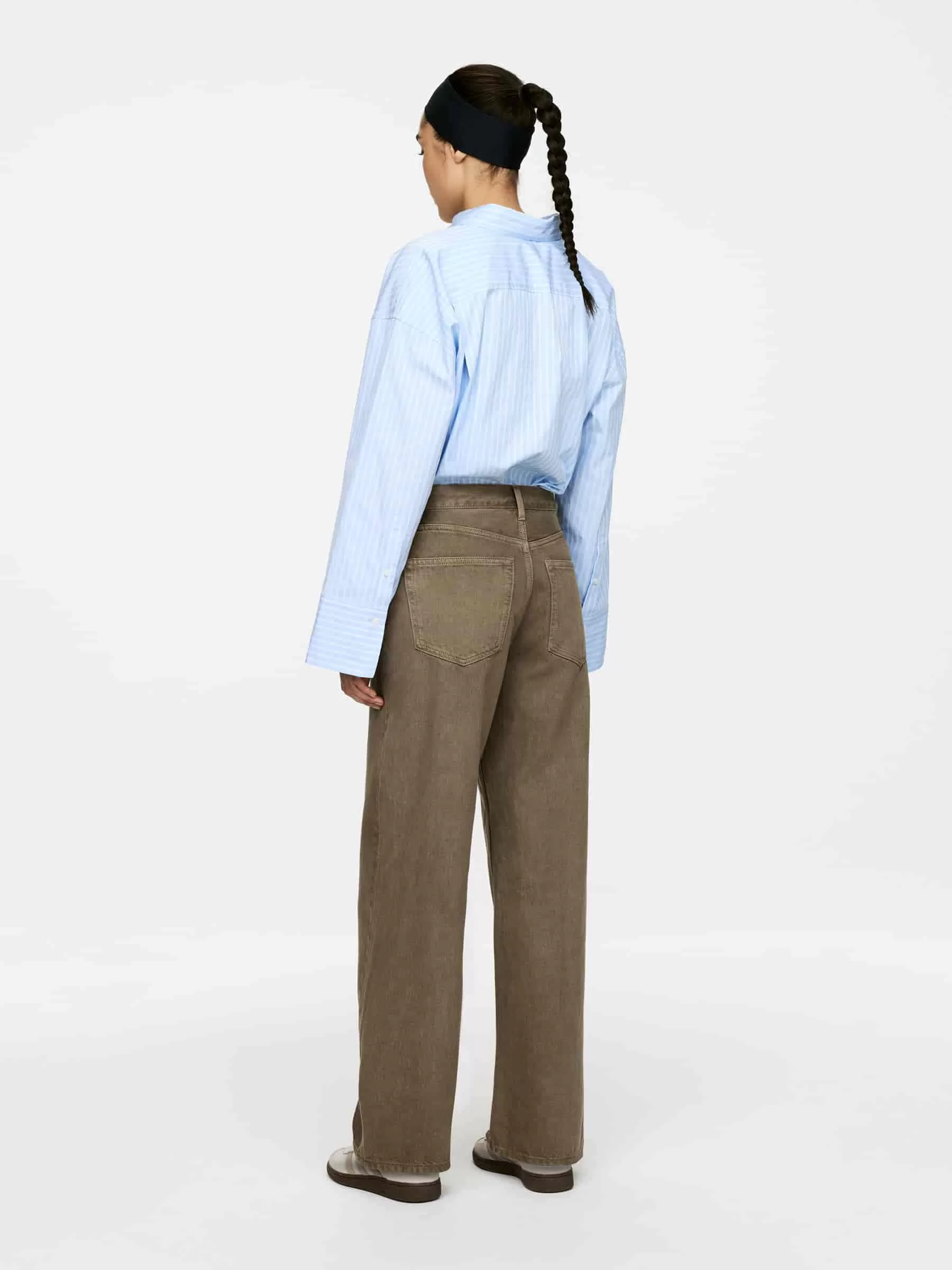 CORAL está confeccionado en denim no elástico y presenta cintura alta, ajuste relajado y perneras anchas.