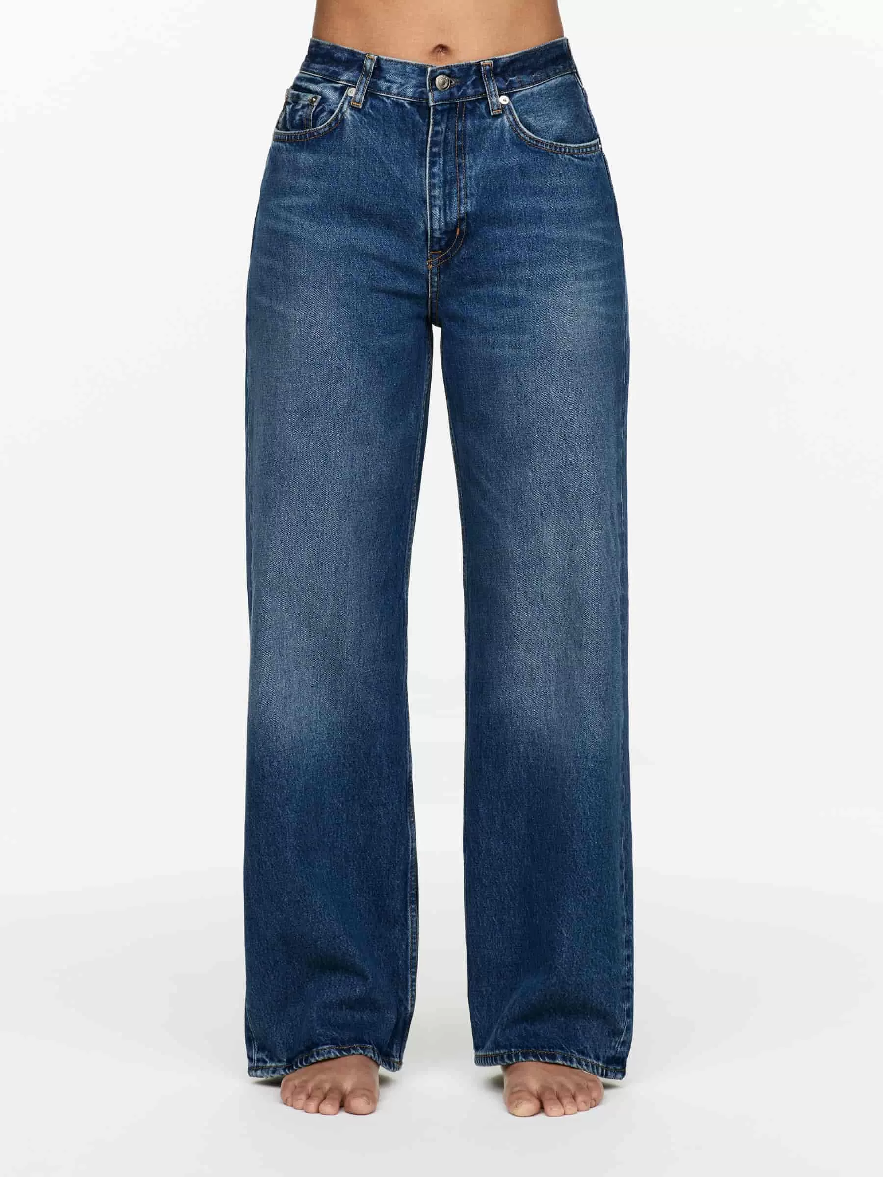 CORAL está confeccionado en denim no elástico y presenta cintura alta, ajuste relajado y perneras anchas.