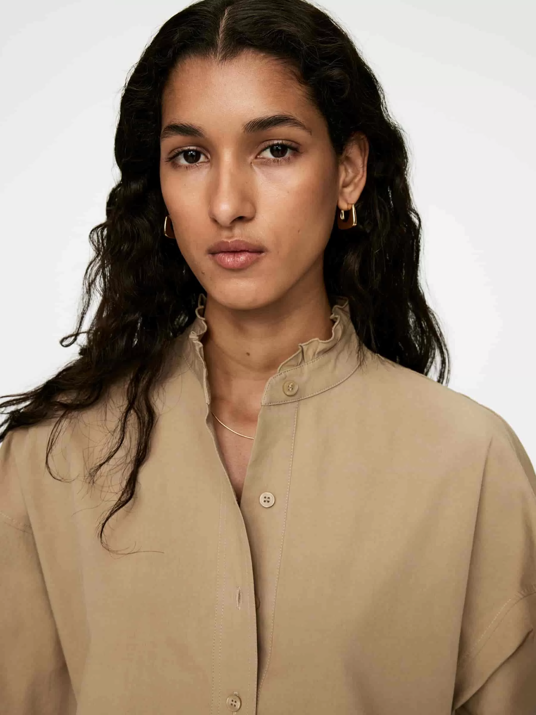 ARKE Mujer Vestido de algodón con detalle de volantes Beige oscuro