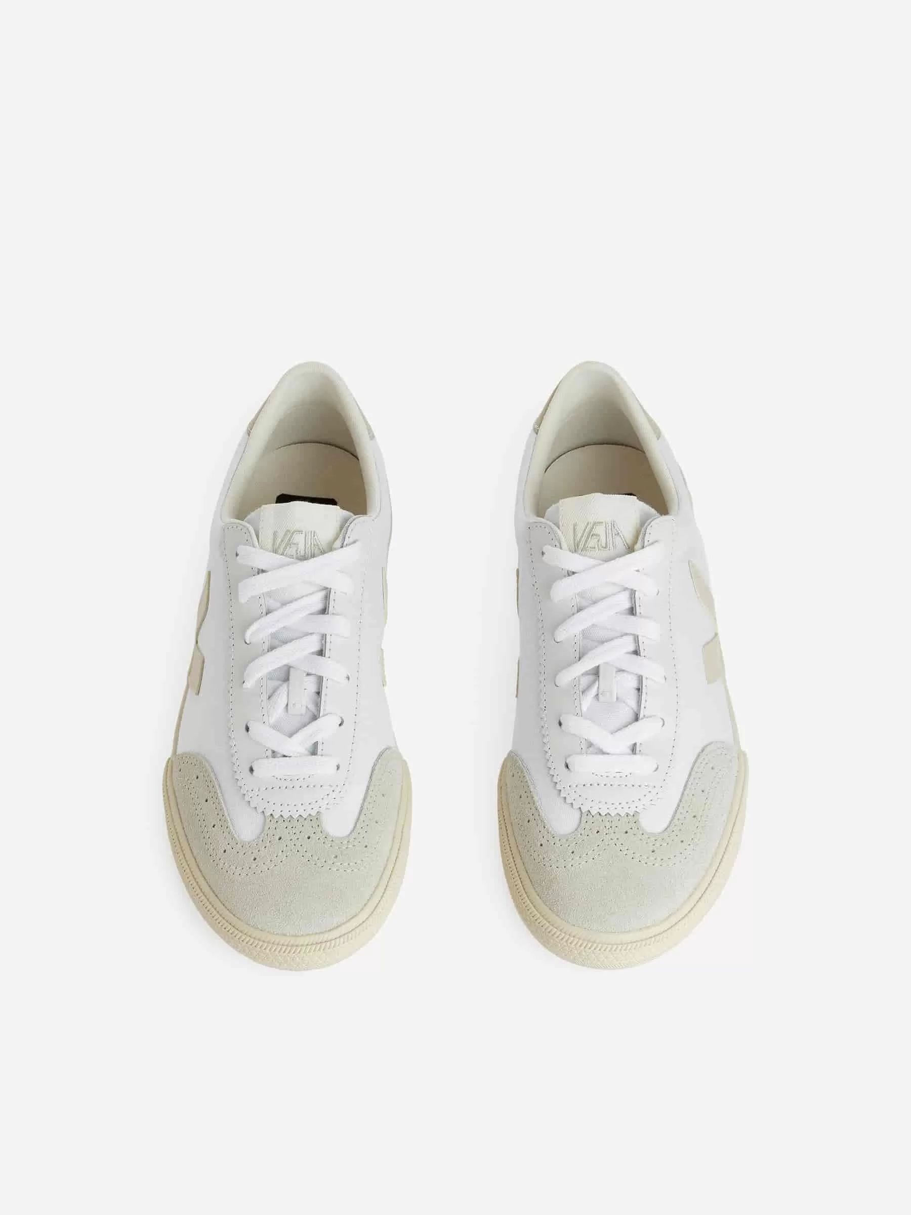 Zapatillas bajas de Veja. Inspiradas en los estilos de voleibol de los años 70, las Veja Volley presentan una parte superior de algodón y paneles de cuero y ante.