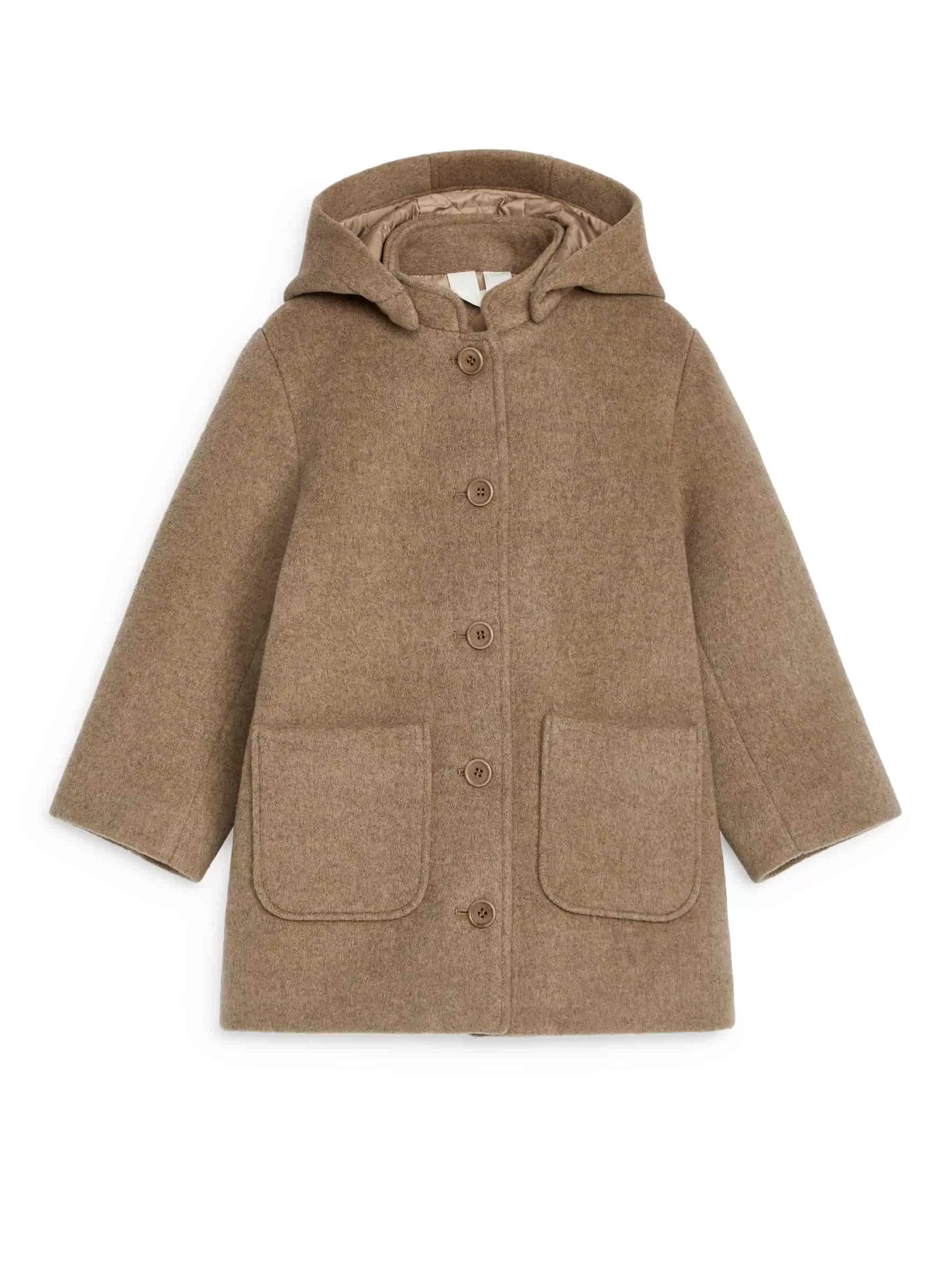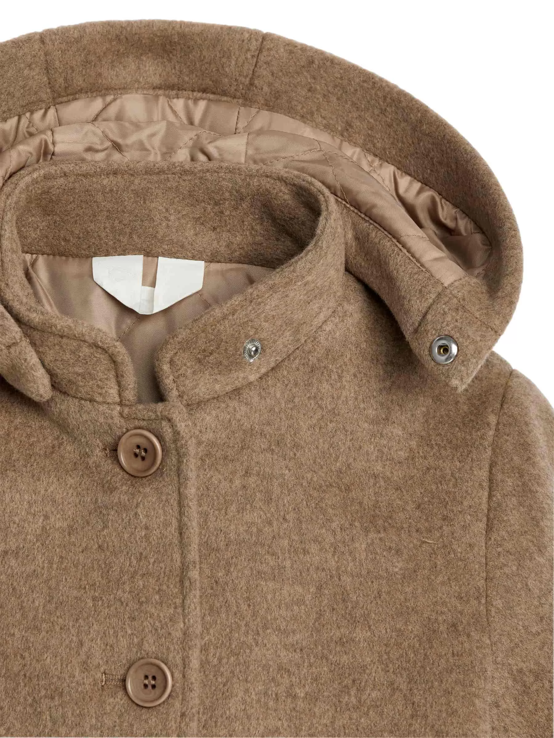 Abrigo confeccionado en mezcla de lana. Diseñado con capucha desmontable, botonadura delantera y bolsillos de parche. Forrado. El abrigo contiene 80% lana RWS (TE-00047206). Los productos certificados según el Estándar de Lana Responsable (RWS) contienen fibra de lana procedente de granjas certificadas de forma independiente según los requisitos de bienestar animal y gestión de la tierra.