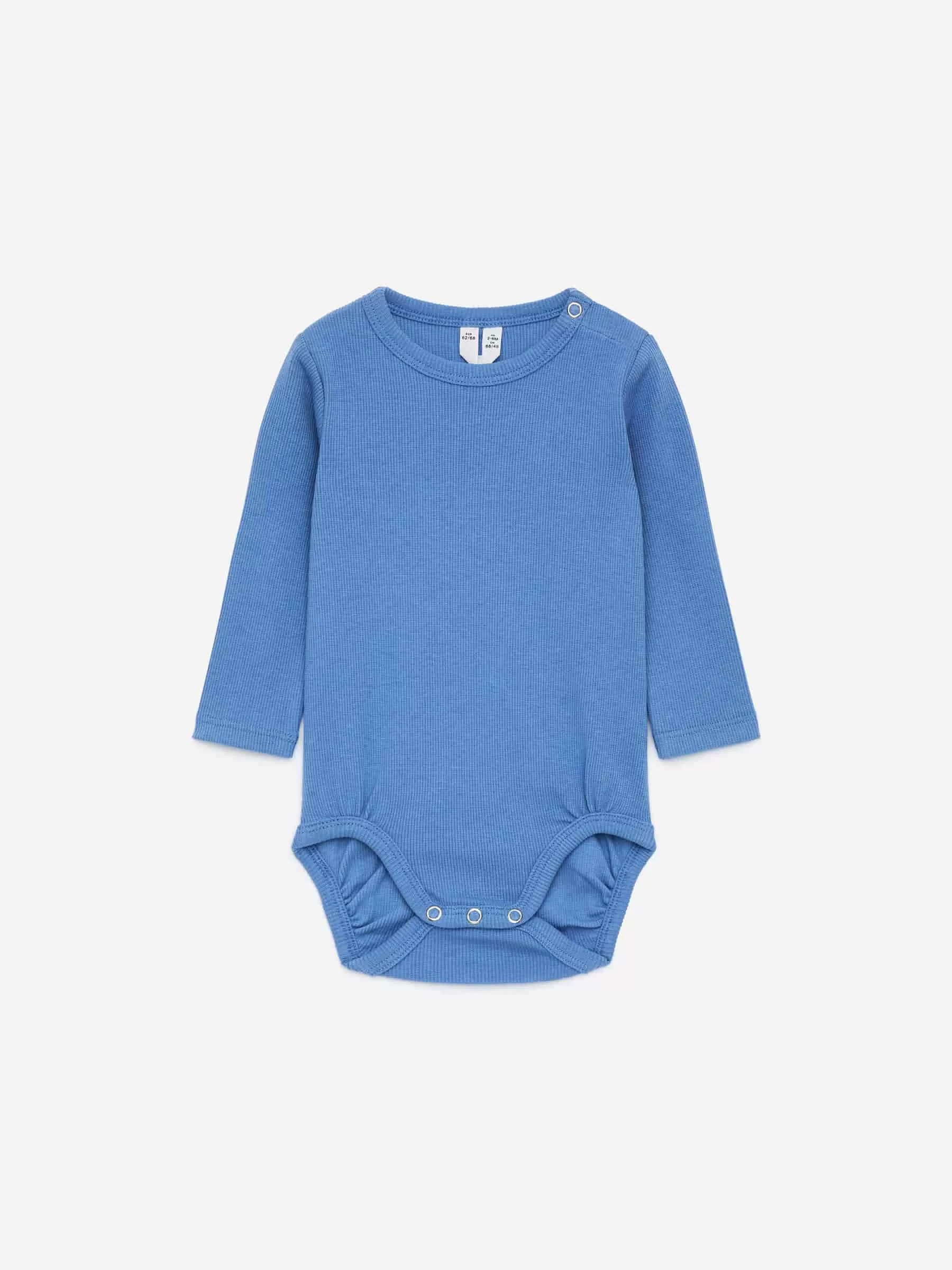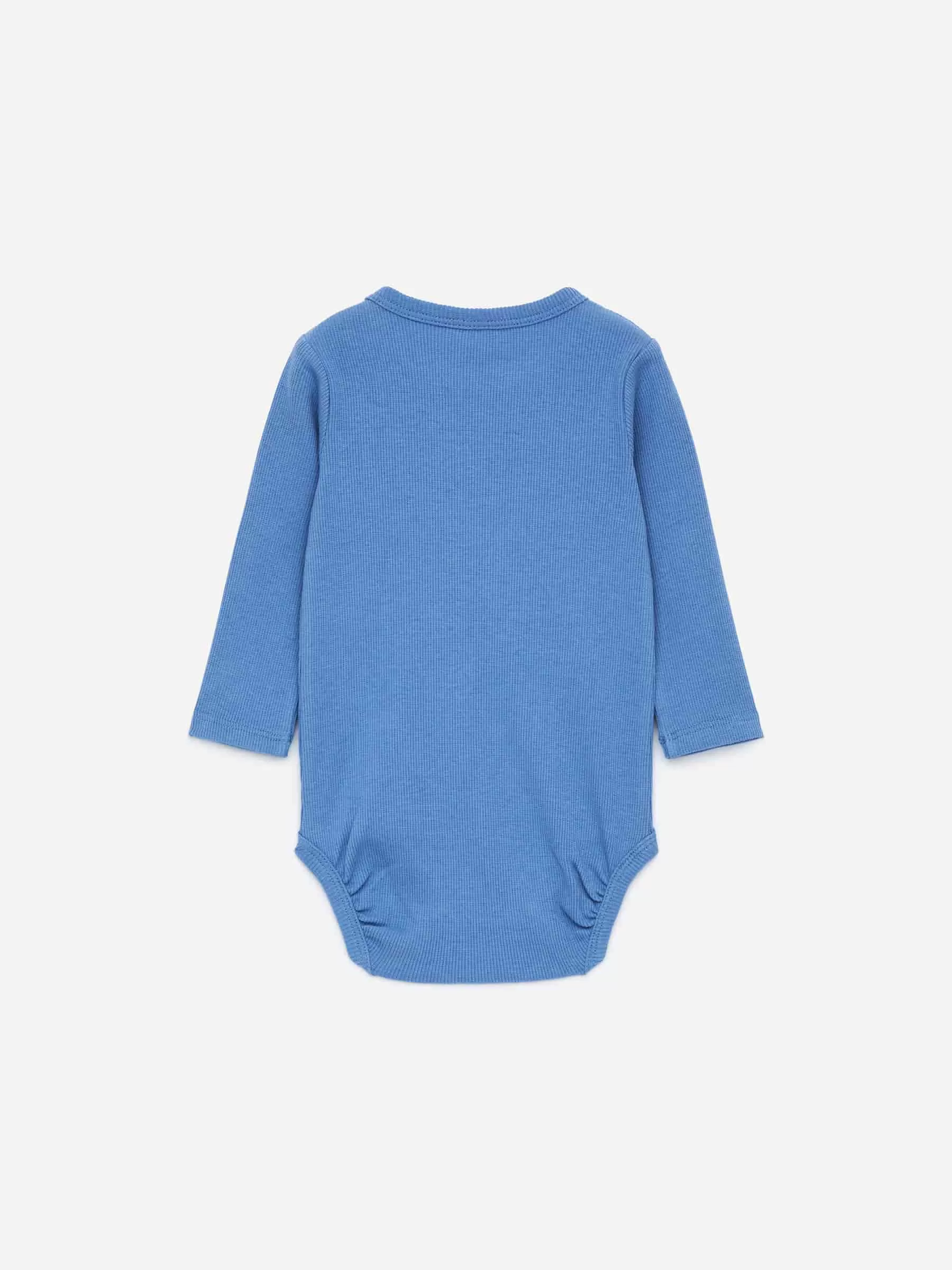 Body de manga larga en punto suave de algodón con construcción de canalé naturalmente elástico. Los botones a presión en el hombro y en la entrepierna permiten vestirse y cambiarse fácilmente.