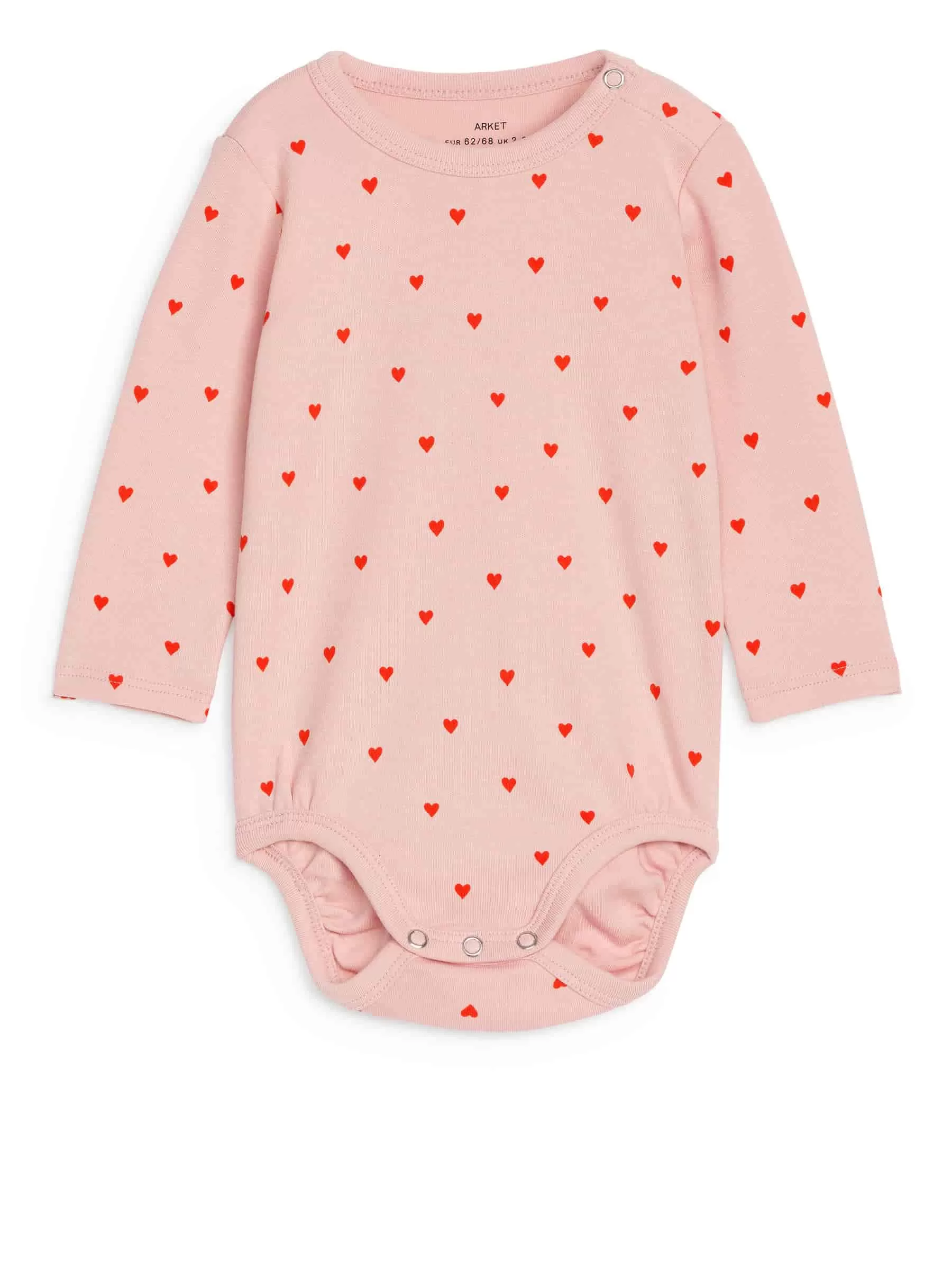 Body de manga larga en punto suave de algodón. Los botones a presión en el hombro y en la entrepierna permiten vestirse y cambiarse fácilmente.