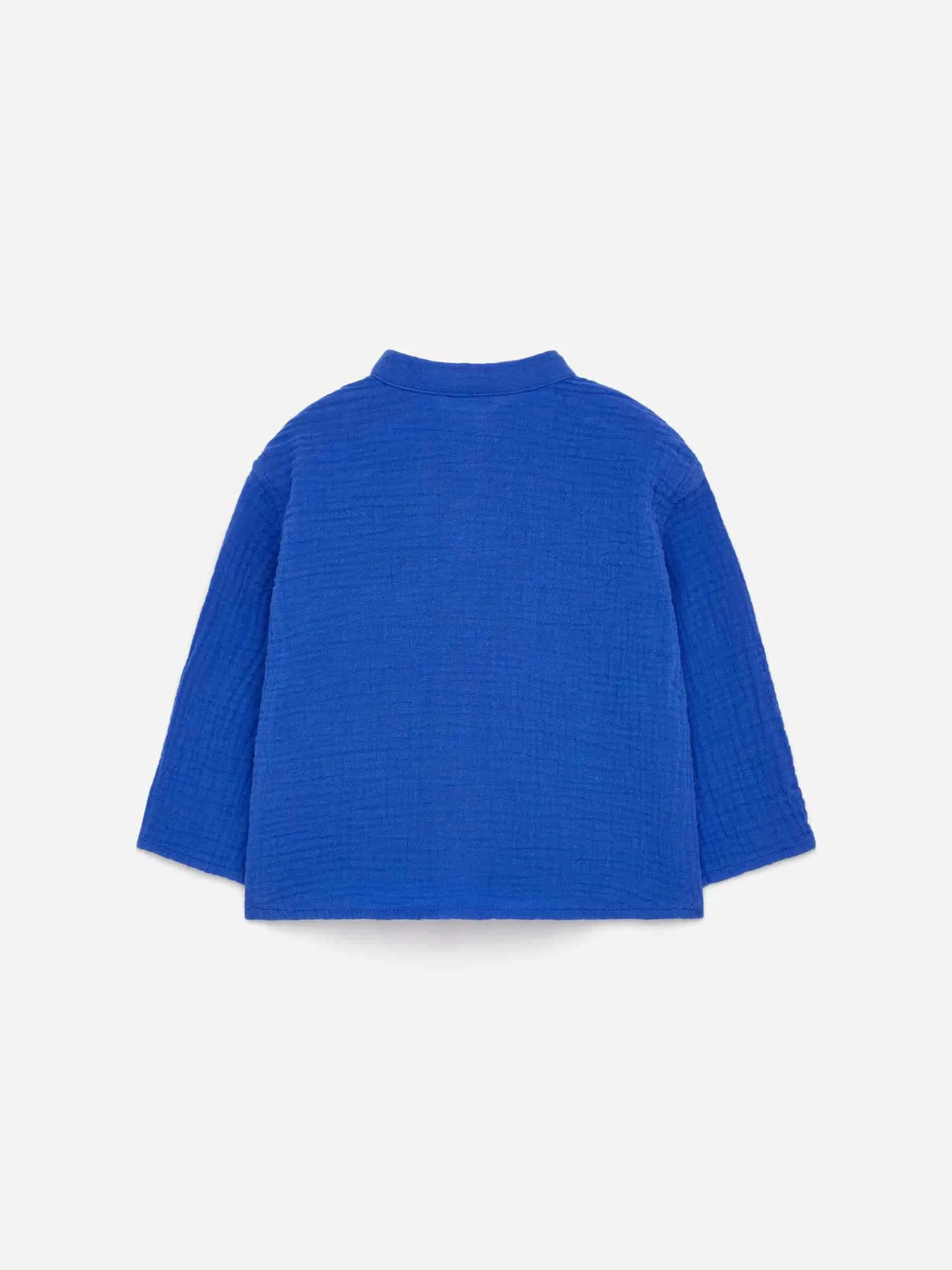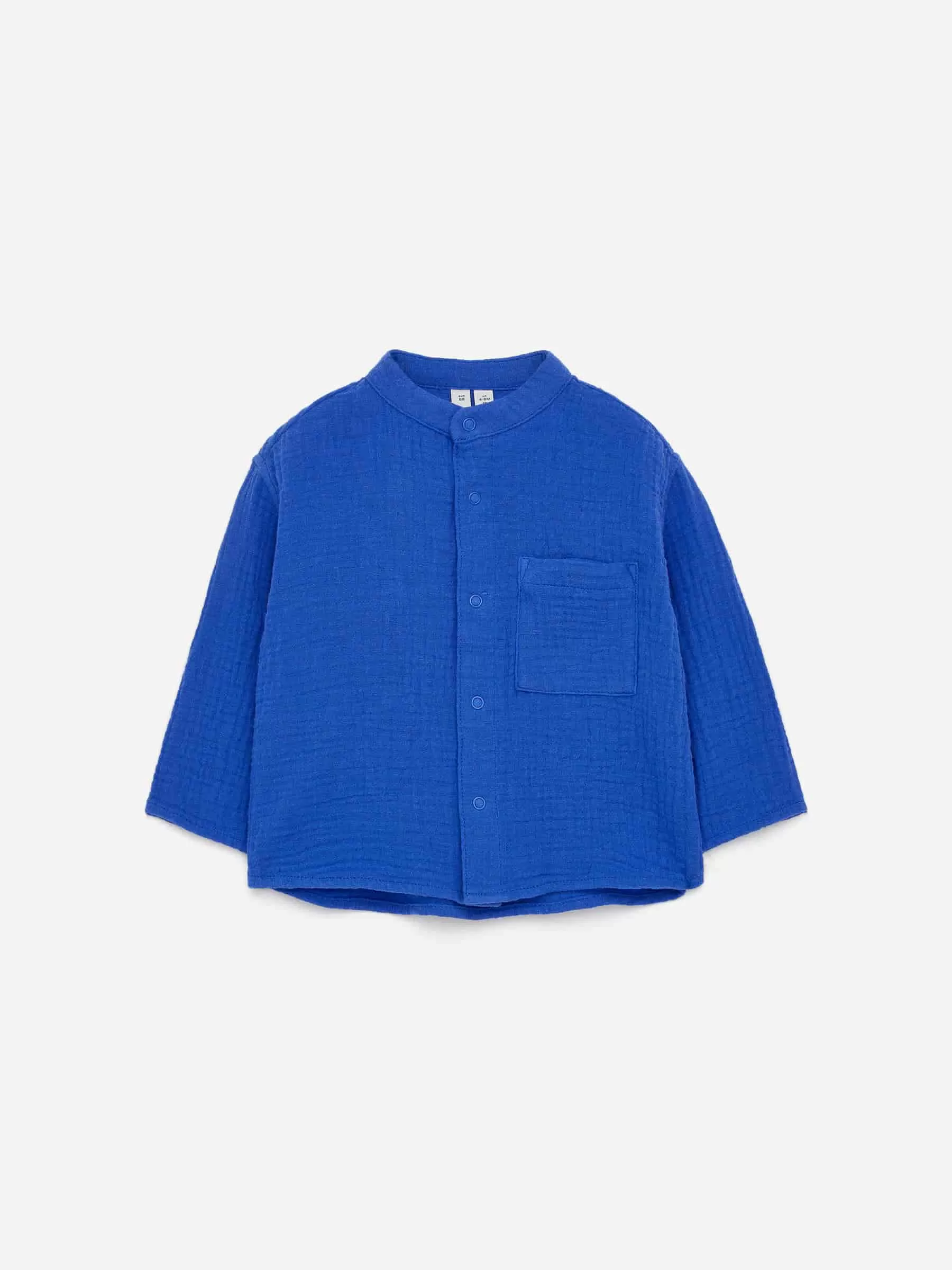 Camisa sin cuello confeccionada en muselina de algodón, con un único bolsillo en el pecho y un ajuste relajado.
