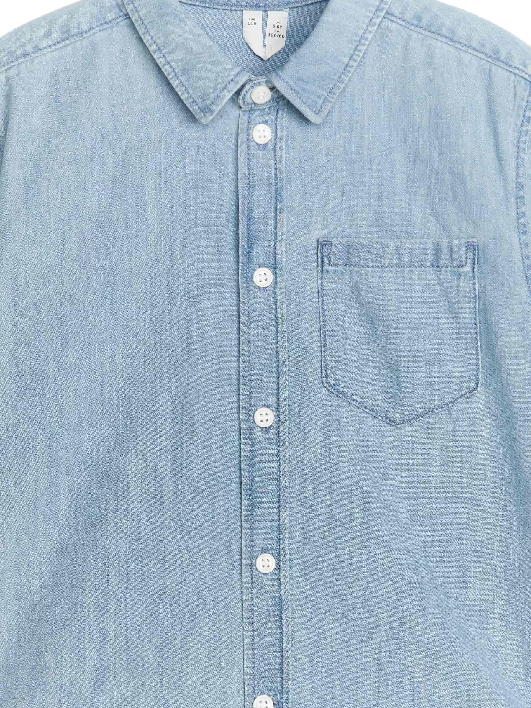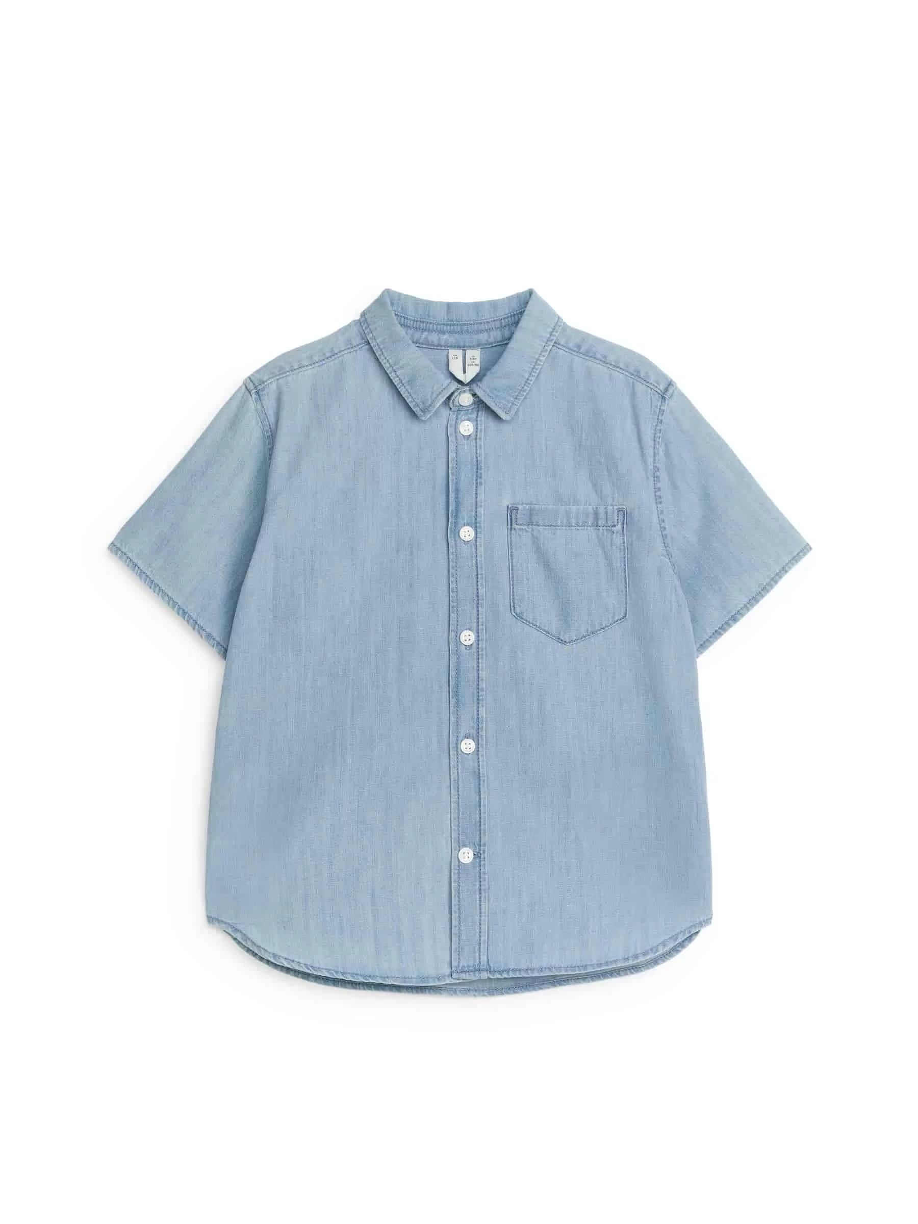 Camisa de manga corta en denim ligero confeccionado en algodón. Diseñado con botones en la parte delantera, cuello camisero clásico y un solo bolsillo de parche en el pecho. Ajuste regular. Parte del conjunto.
