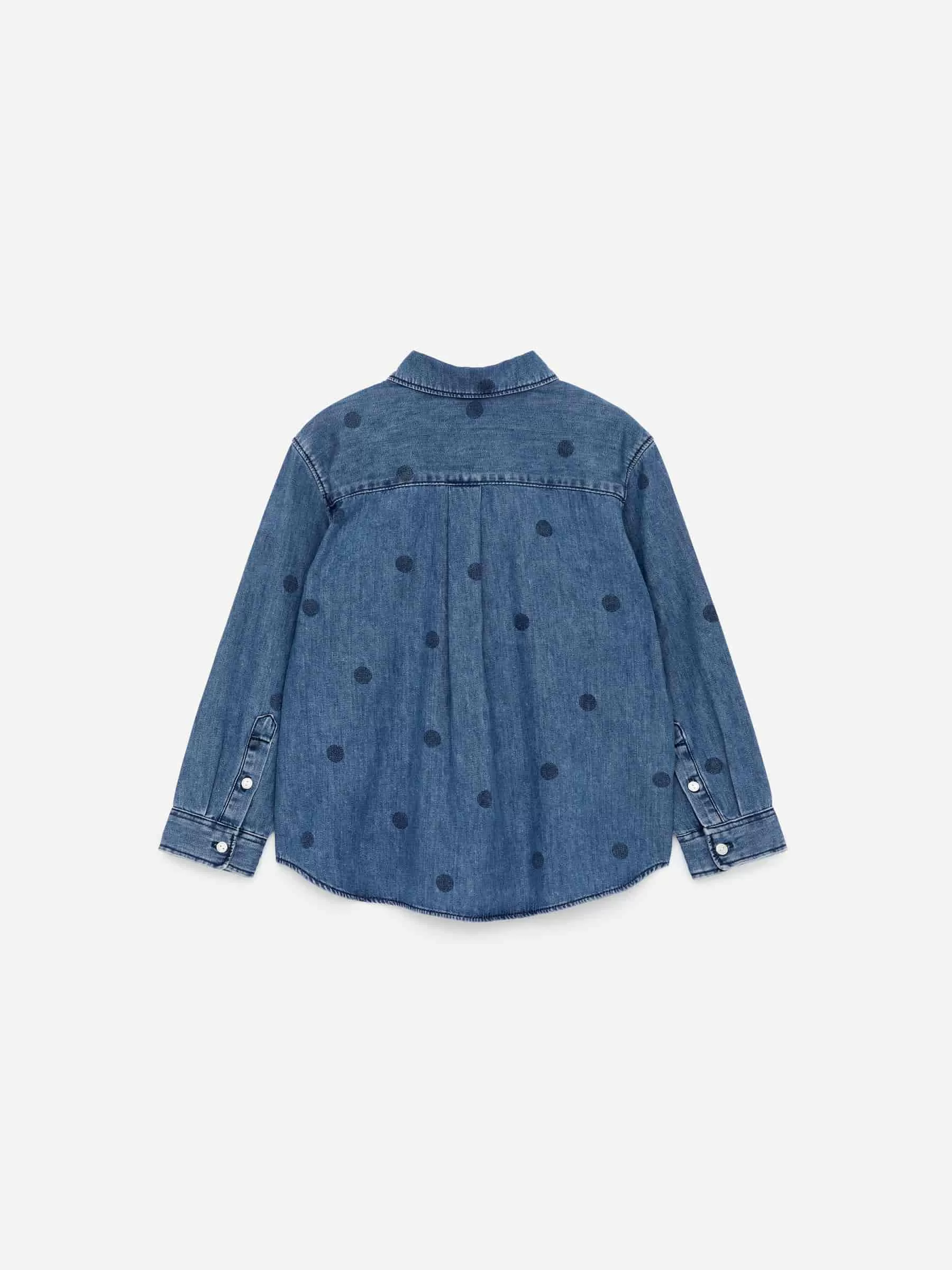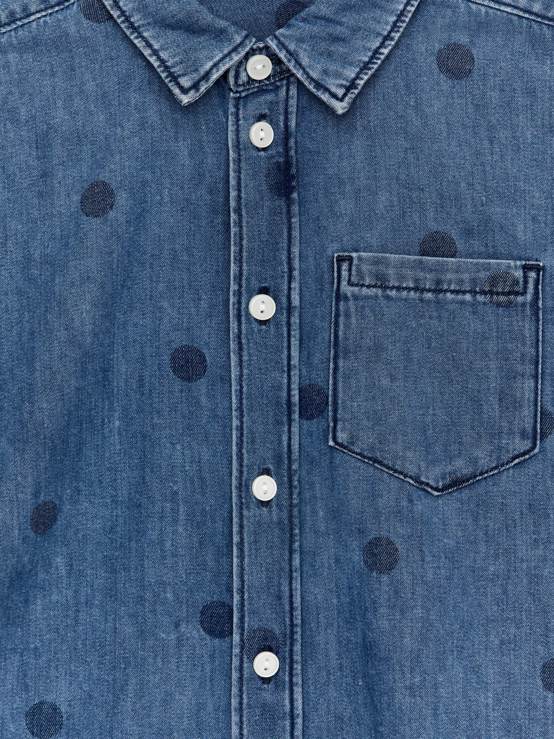 Camisa vaquera con corte regular fit. Diseñado con cuello normal, botonadura delantera y bolsillo de parche en el pecho. Puños abotonados. Dobladillo curvado.