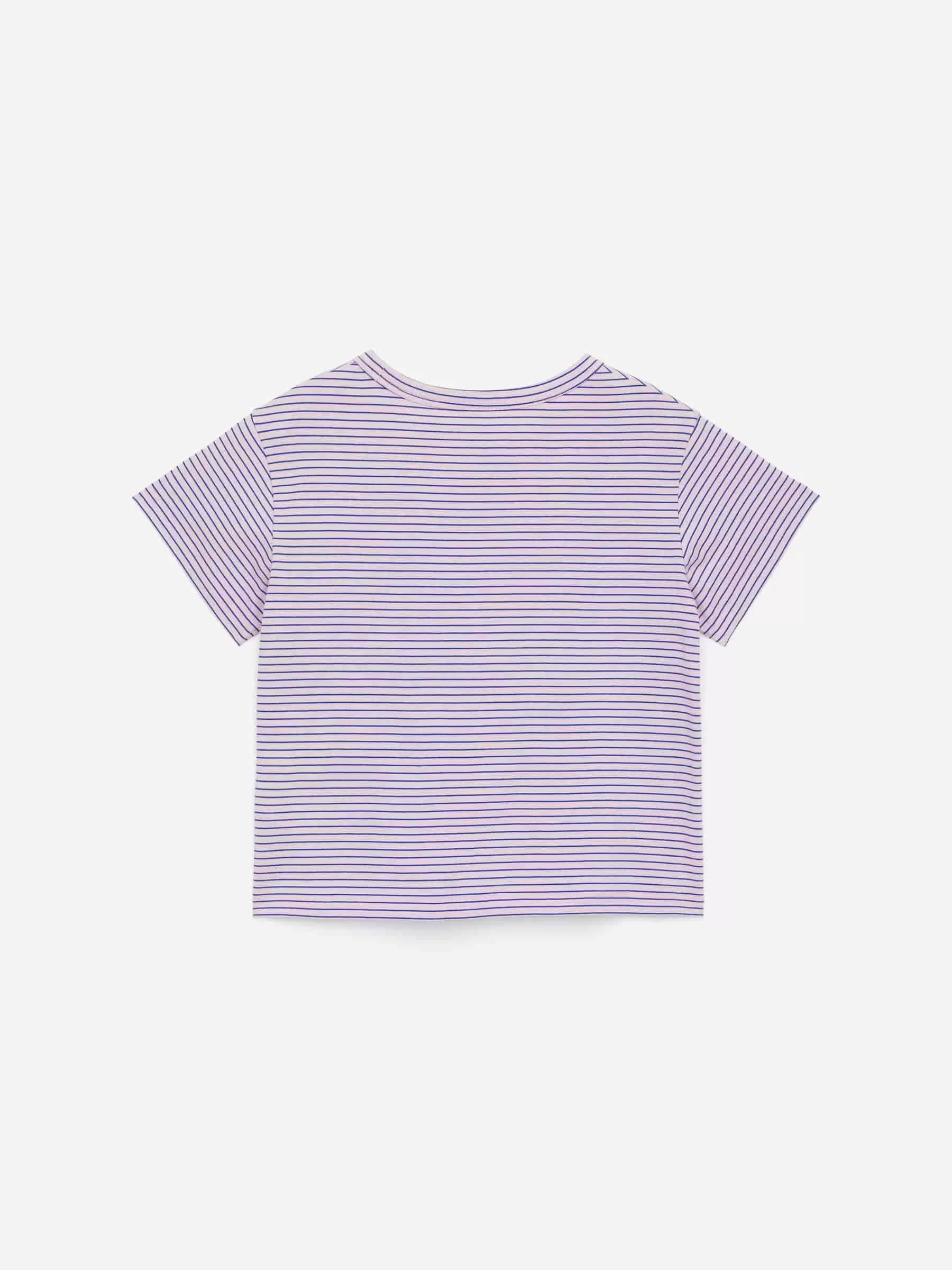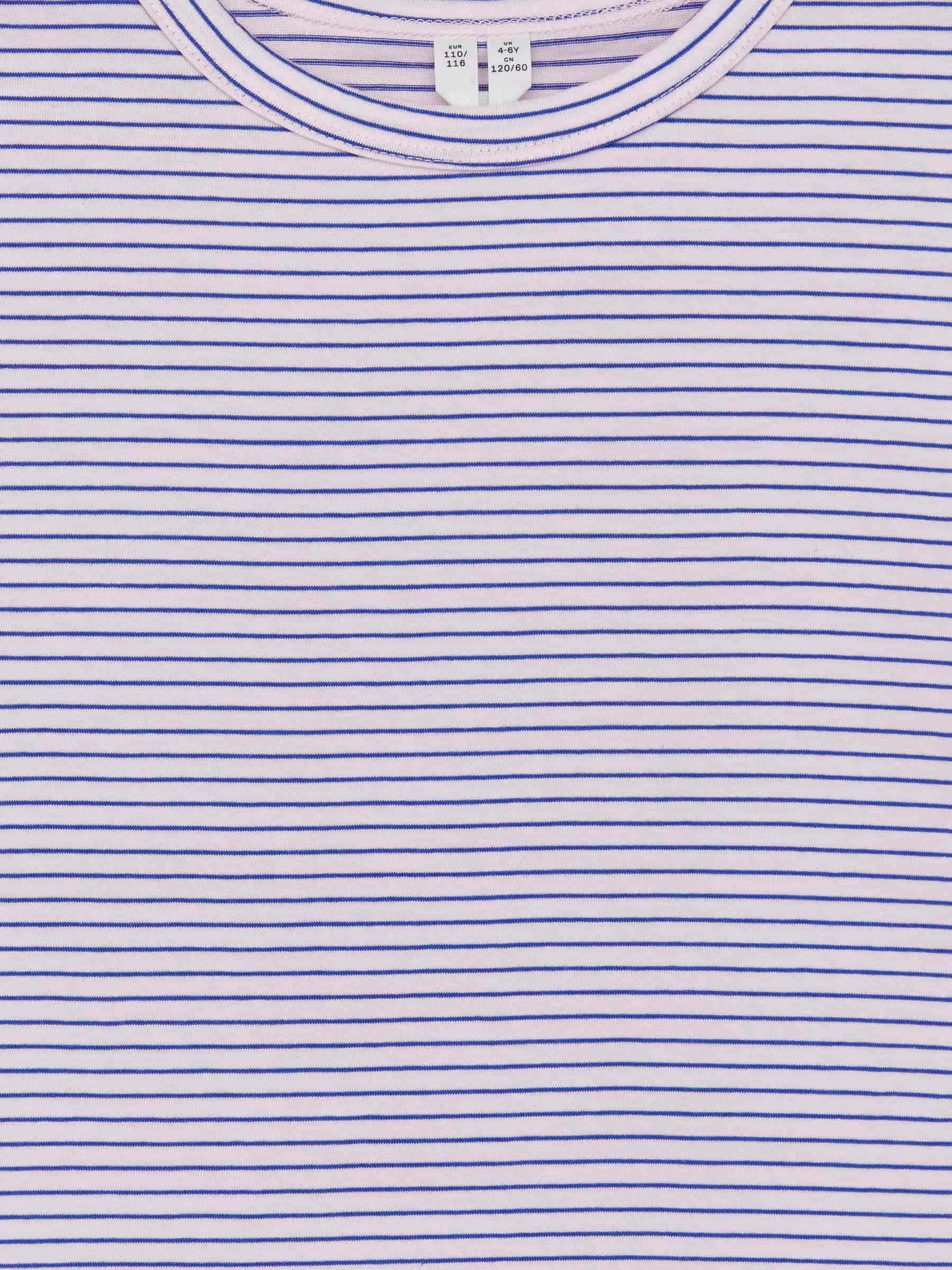 Corte de camiseta suave para un ajuste amplio con hombros ligeramente caídos. Está confeccionado en punto de algodón y rematado con un escote de canalé.
