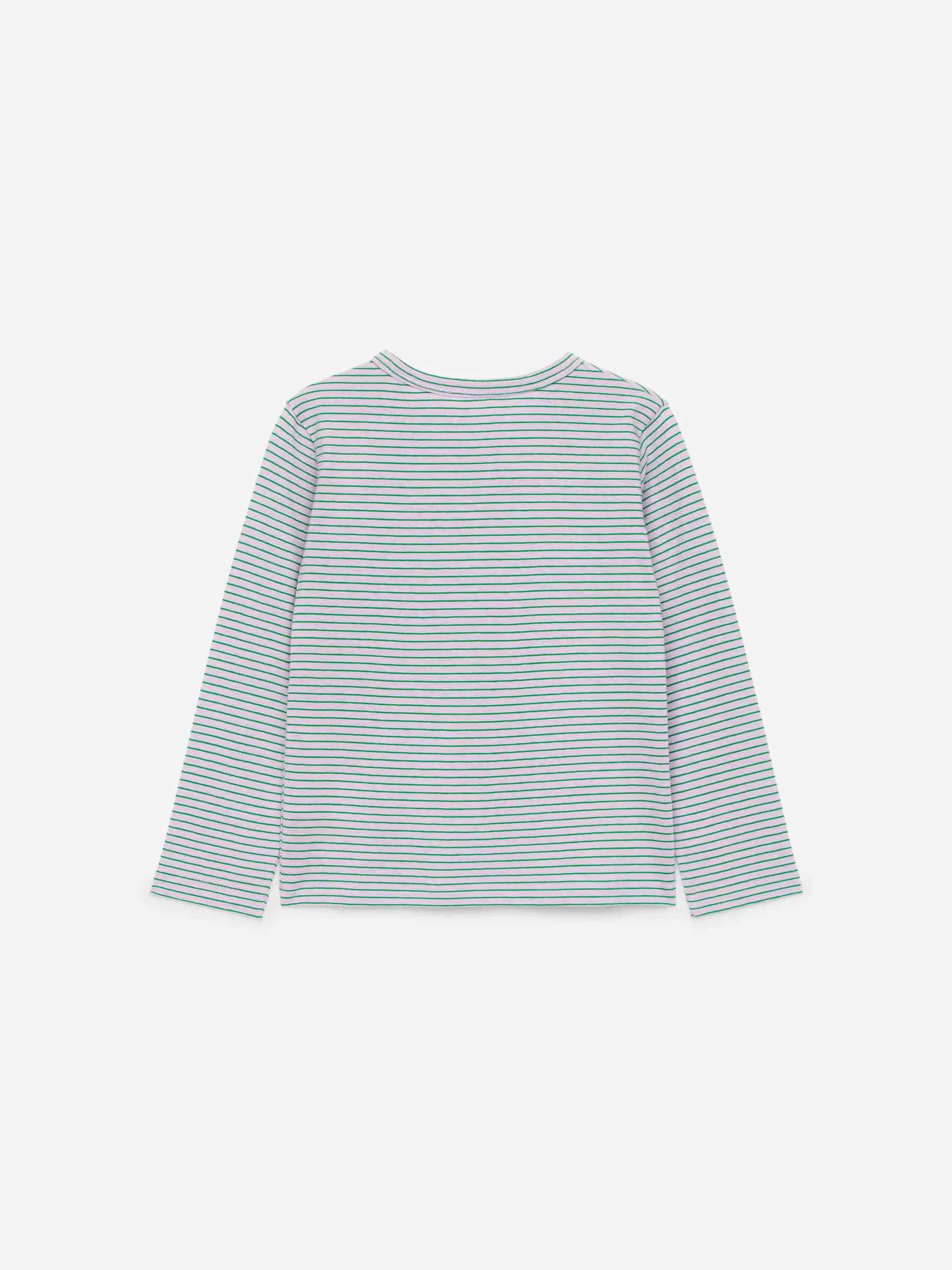 Camiseta de manga larga confeccionada en un tejido single jersey compuesto por un suave hilo de algodón. Ribete en el cuello.