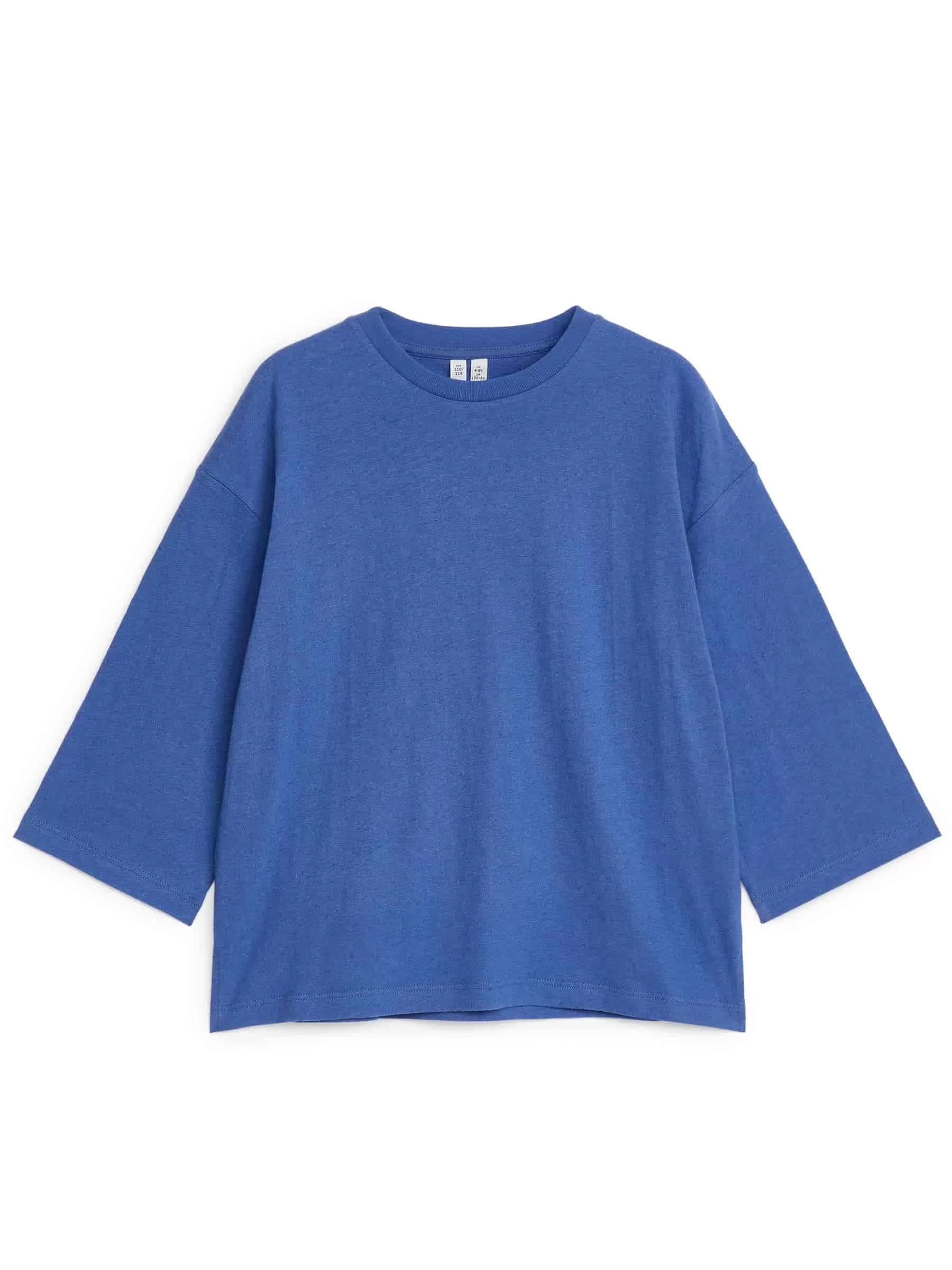 Camiseta de manga larga confeccionada en punto de algodón y lino. Con hombros caídos y silueta amplia.