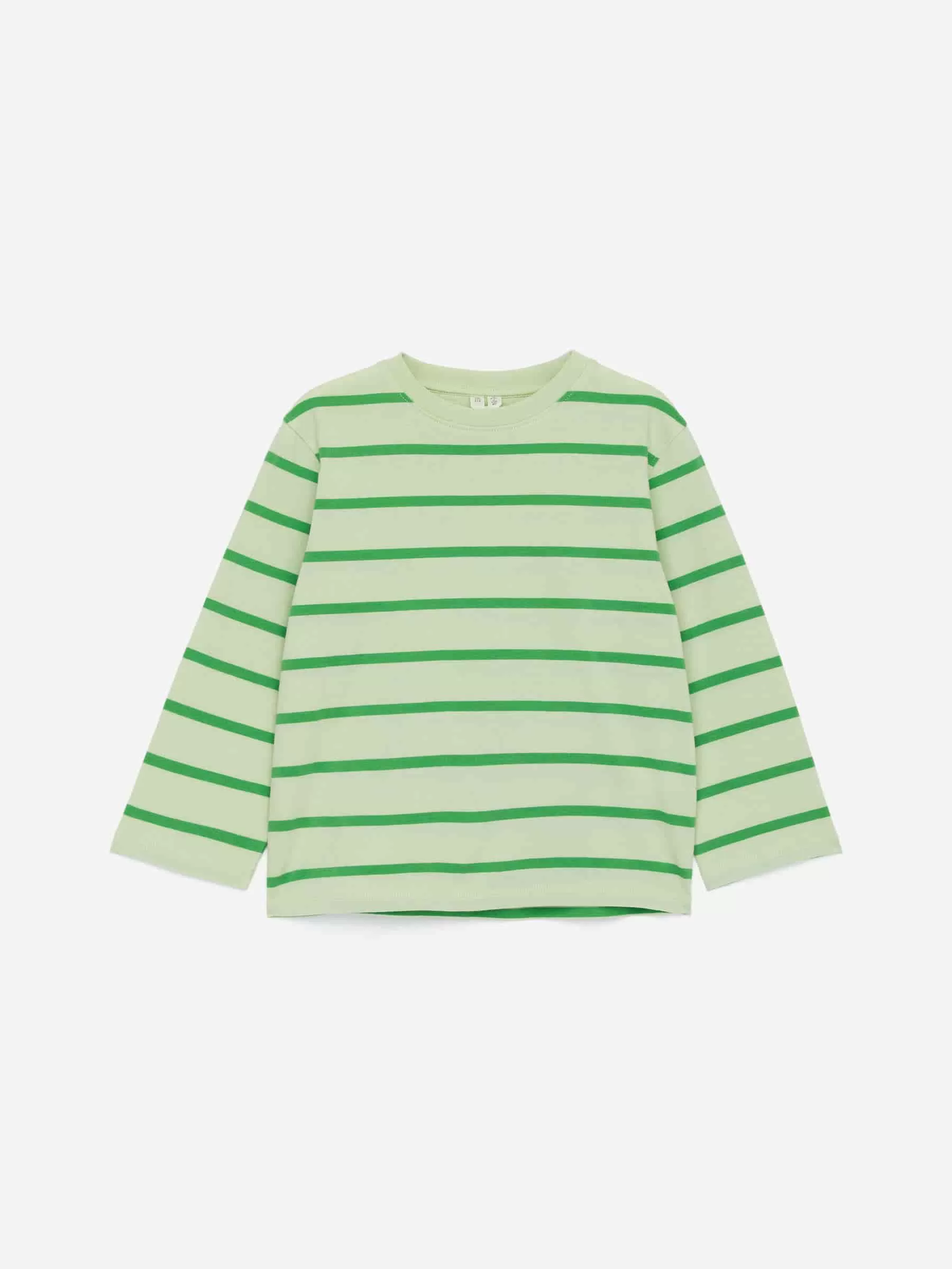 Camiseta de manga larga confeccionada en suave punto sencillo. Corte para un ajuste regular. Escote redondo.