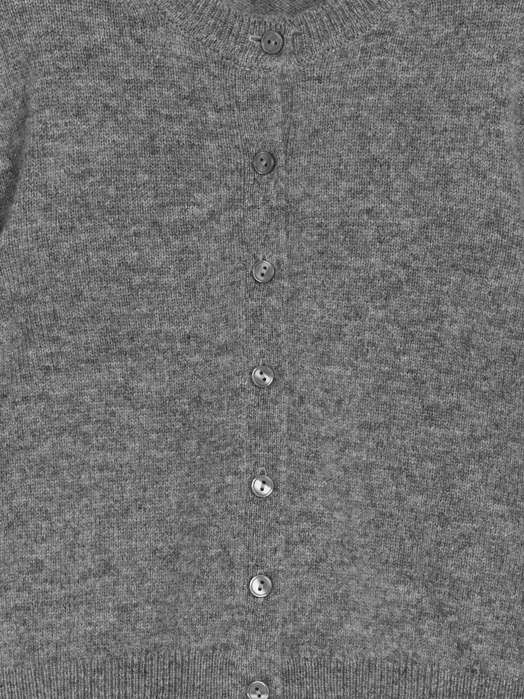 Cárdigan en punto fino de lana con cuello redondo y abotonadura frontal. Detalles de punto acanalado. El producto contiene 100% lana RWS (TE-00047206). Los productos certificados según el Estándar de Lana Responsable (RWS) contienen fibra de lana procedente de granjas certificadas de forma independiente según los requisitos de bienestar animal y gestión de la tierra.