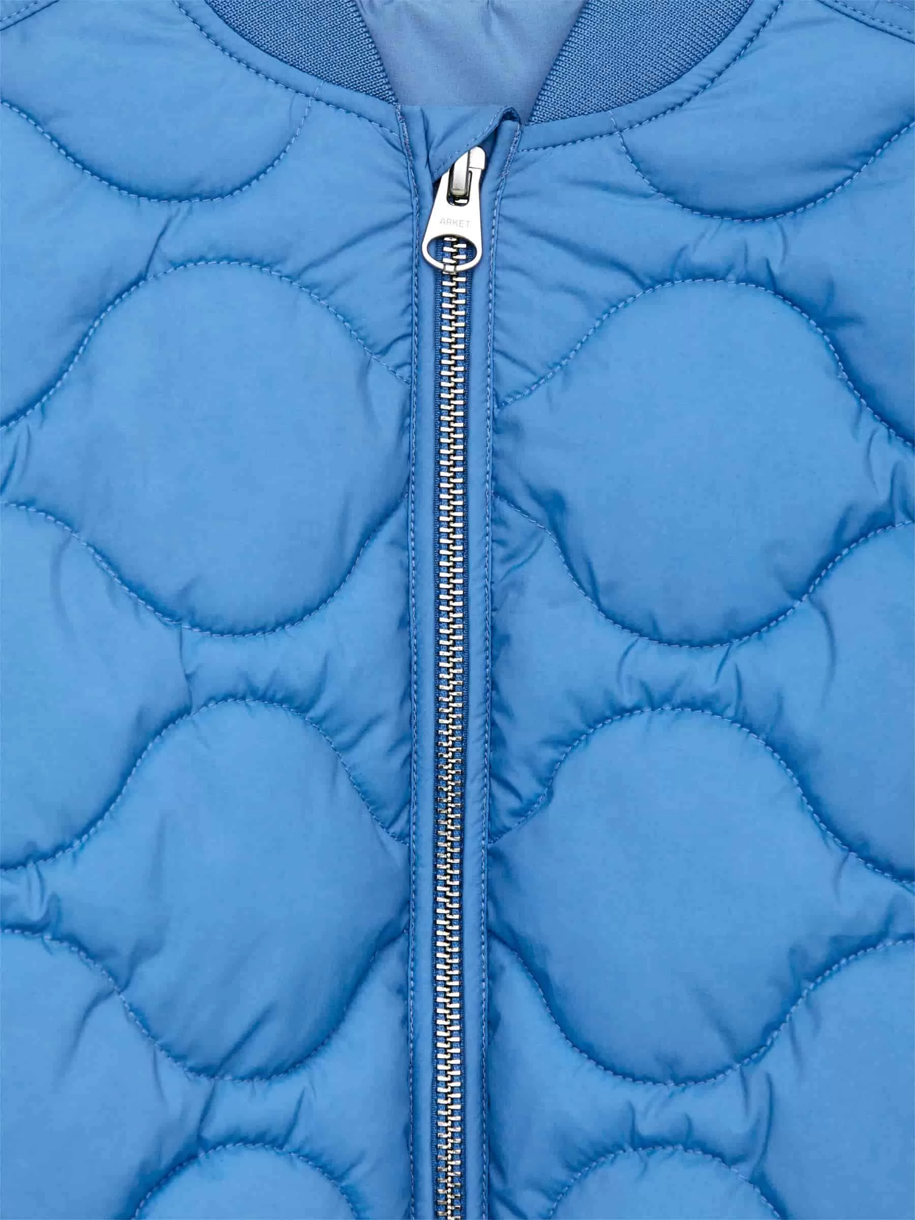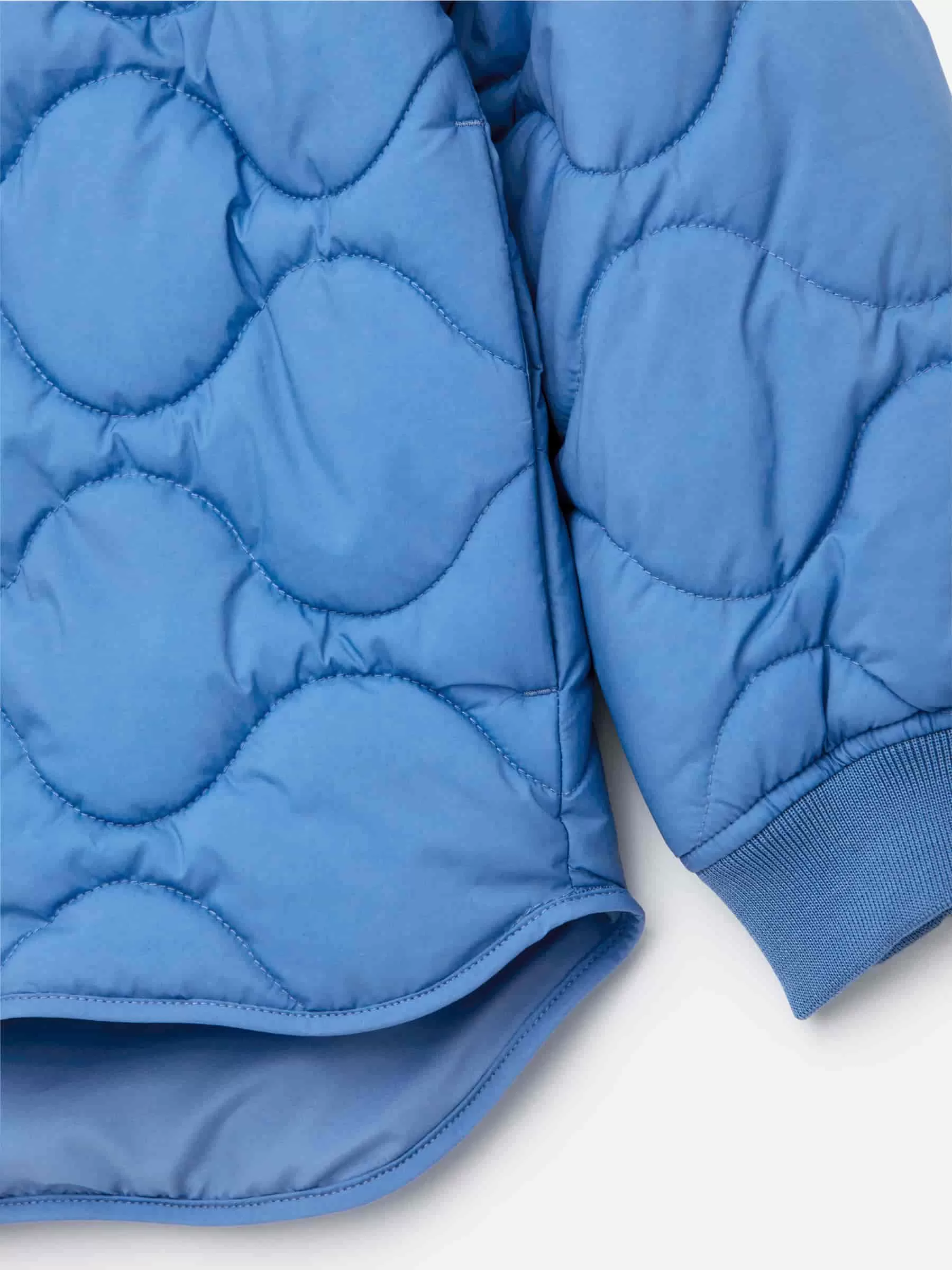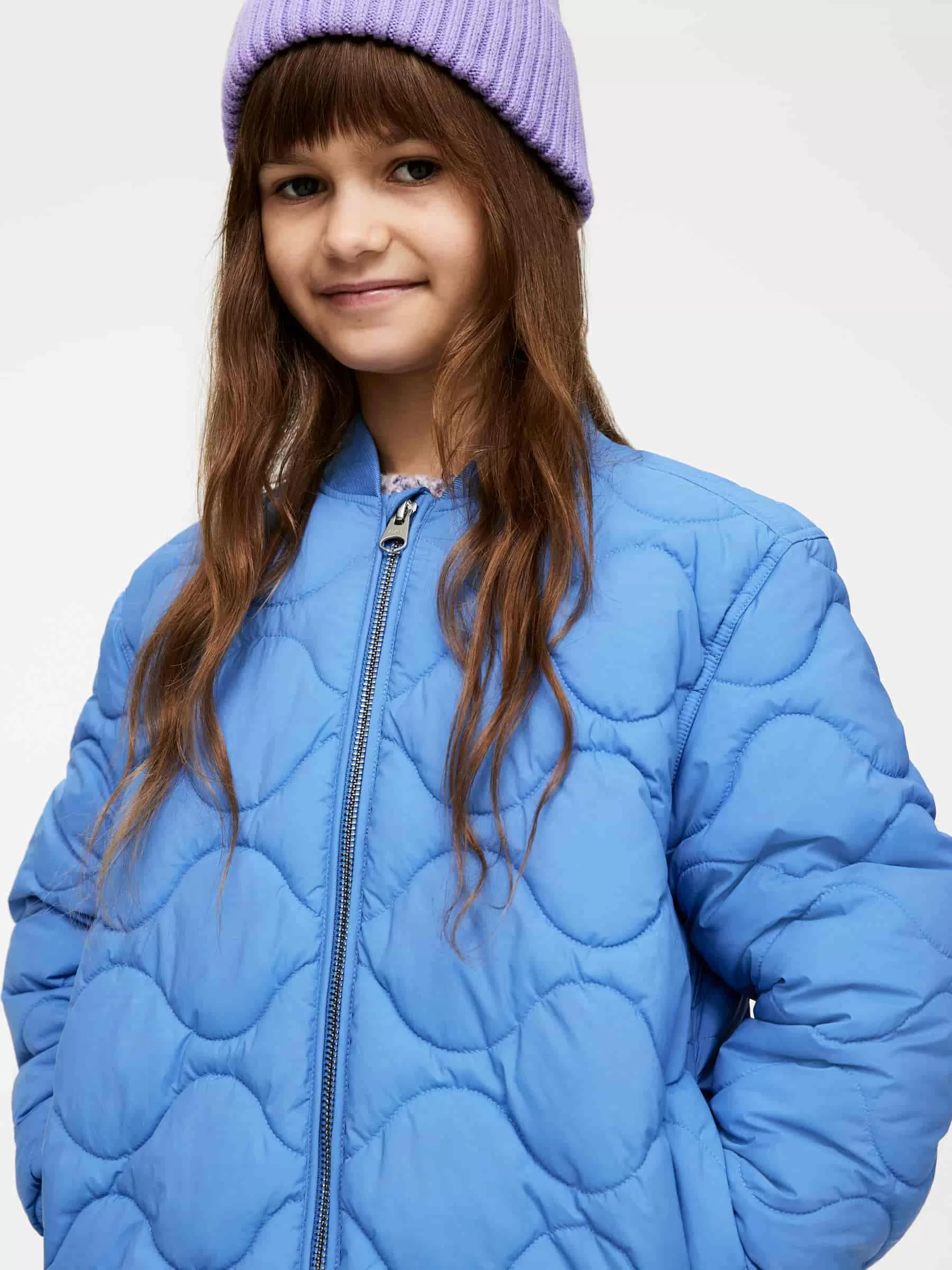 Chaqueta acolchada con forro suave. Ribetes de canalé y bolsillos laterales. Cierre con cremallera metálica. Artículo a juego disponible.