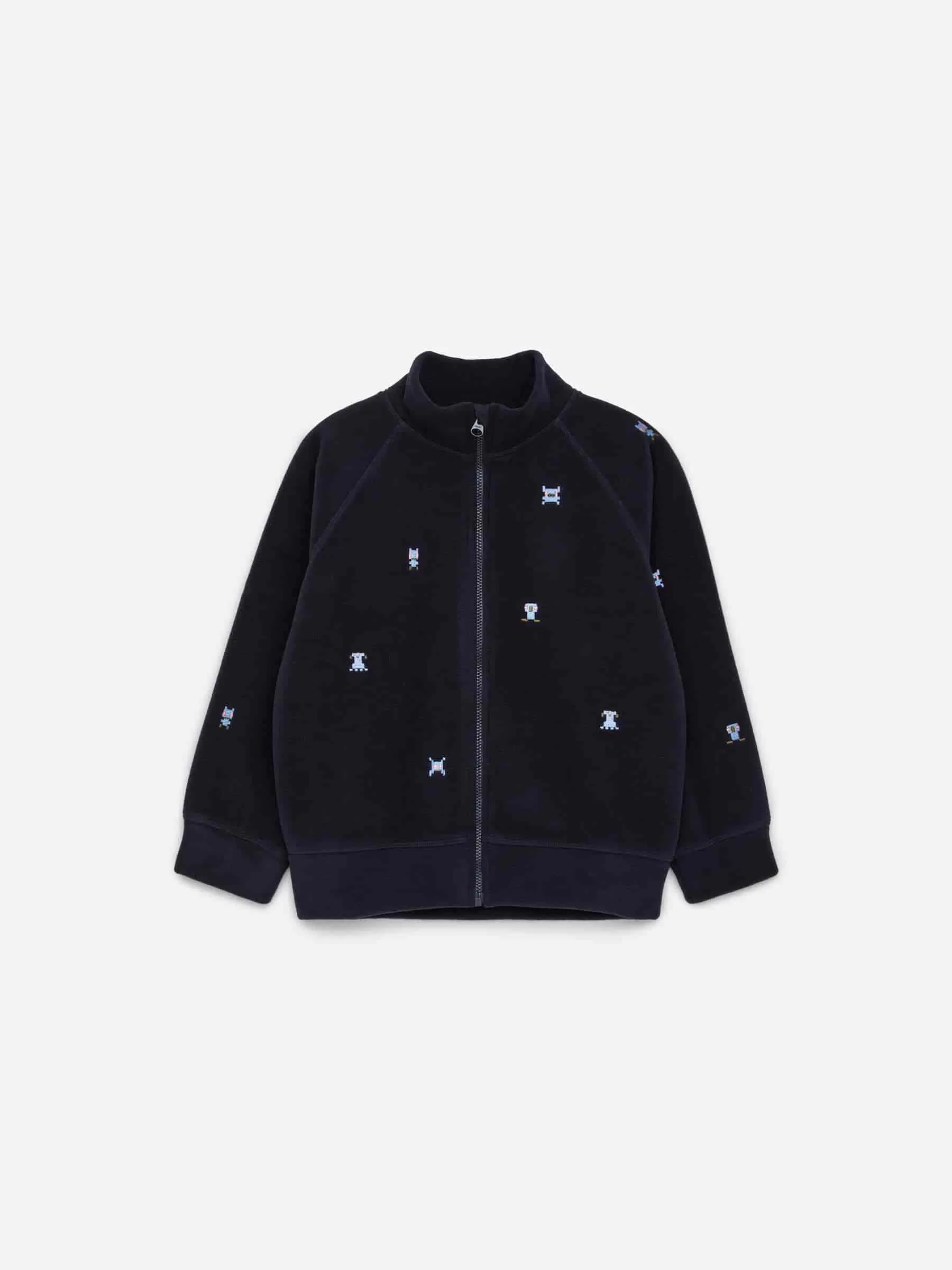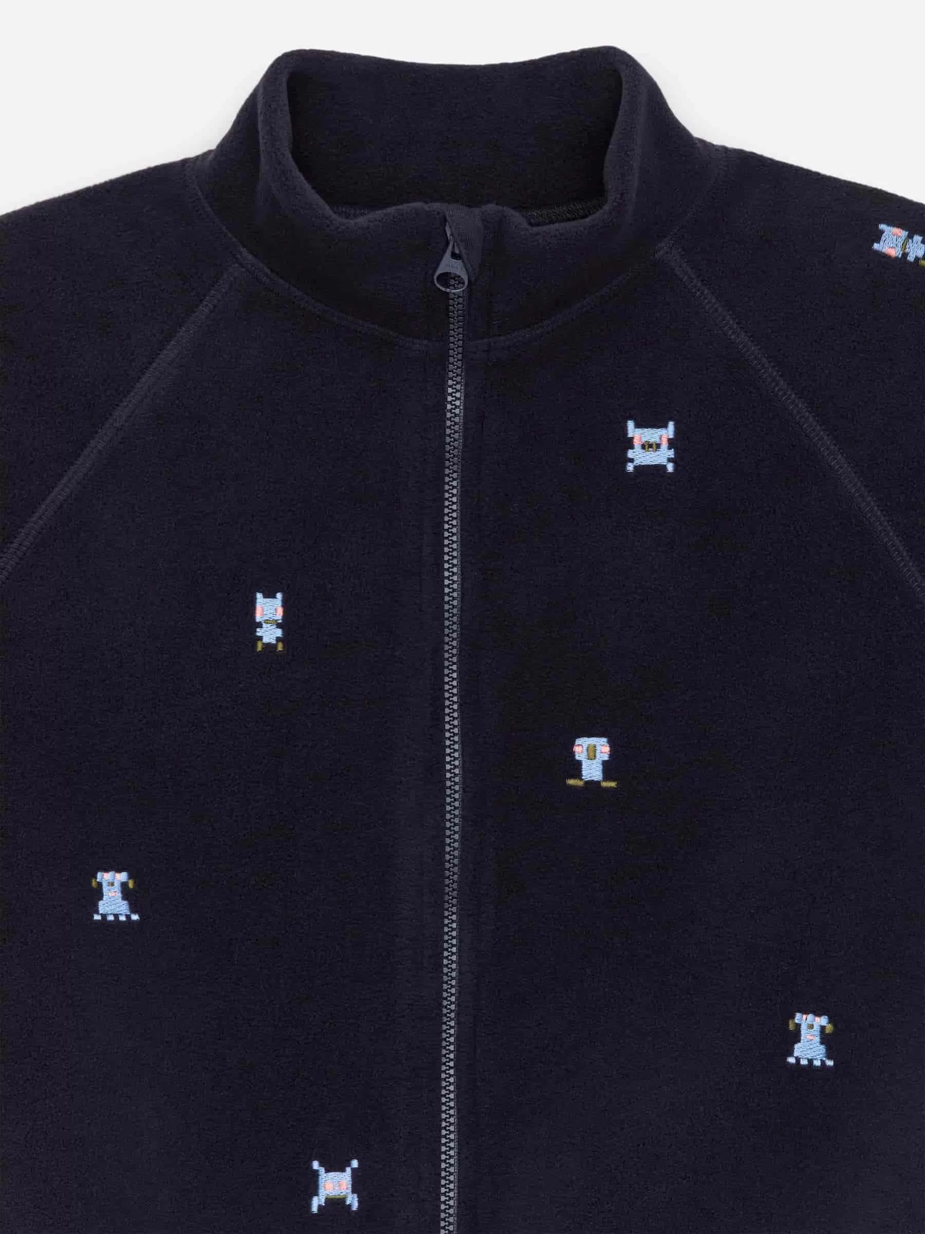 Chaqueta polar con detalle bordado. Diseñado con un cuello de doble capa para mayor calidez. Cierre con cremallera.
