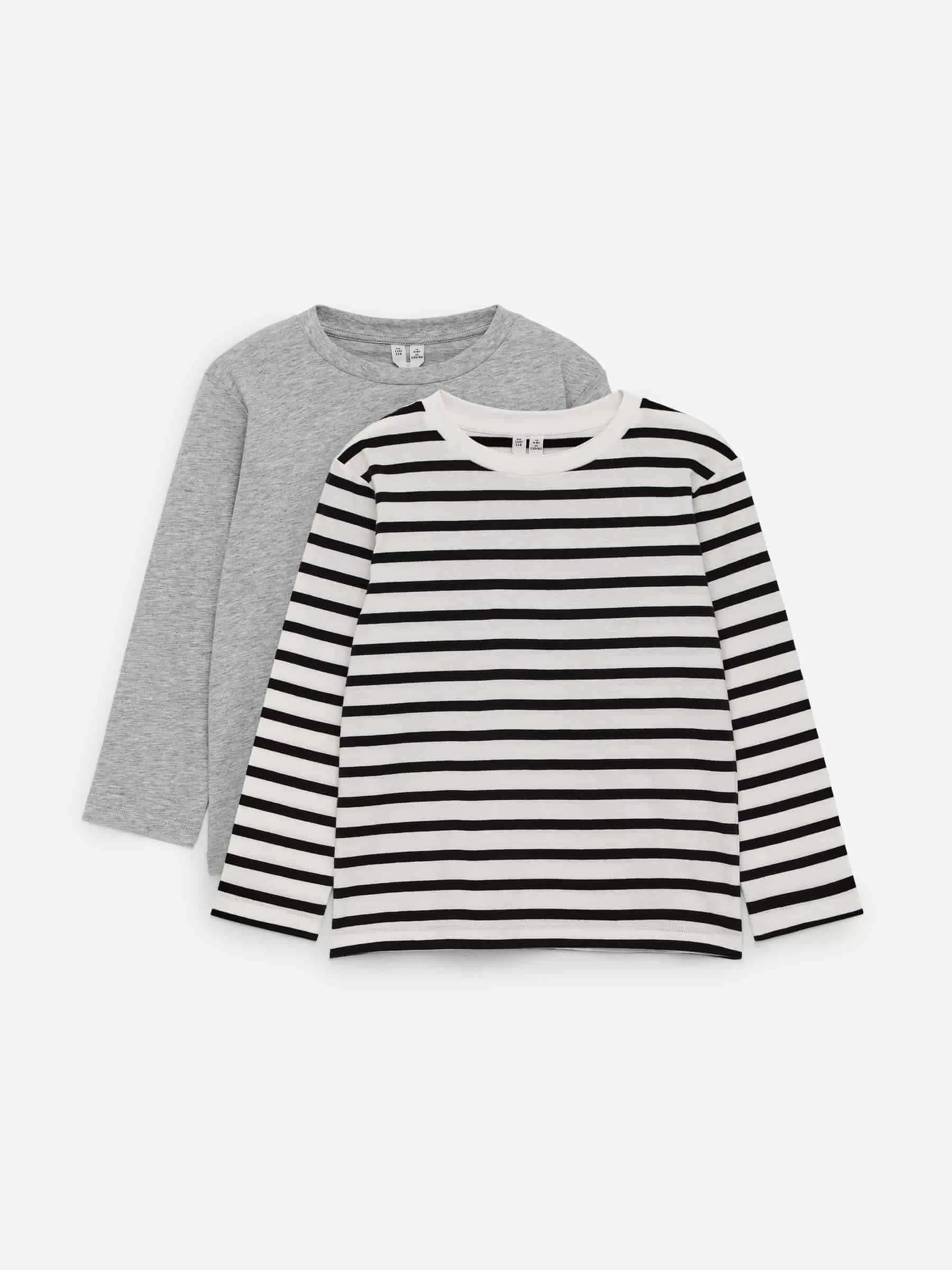 Camiseta de manga larga confeccionada en suave punto de algodón. Se corta para un ajuste regular y se vende en un juego de dos.