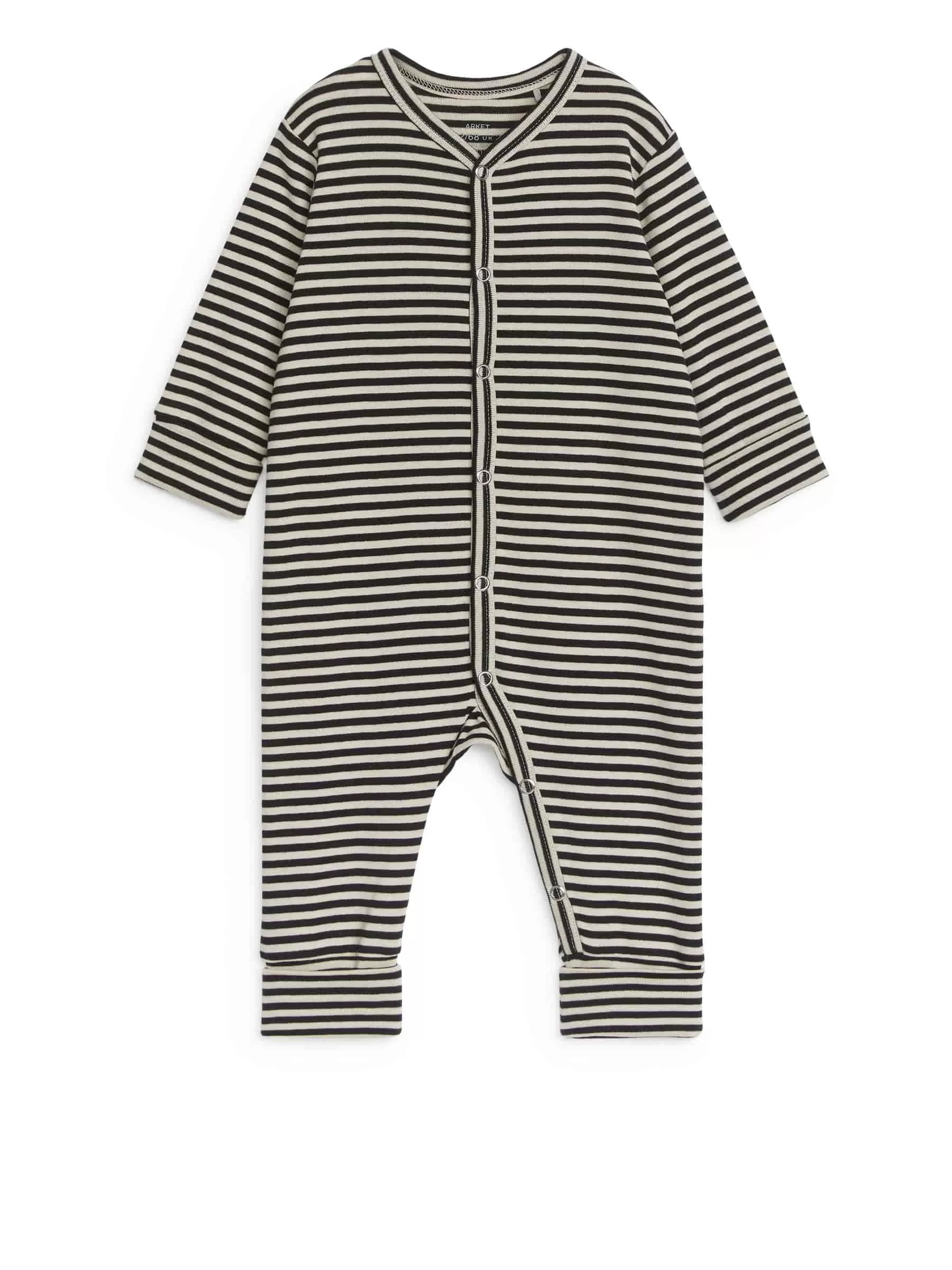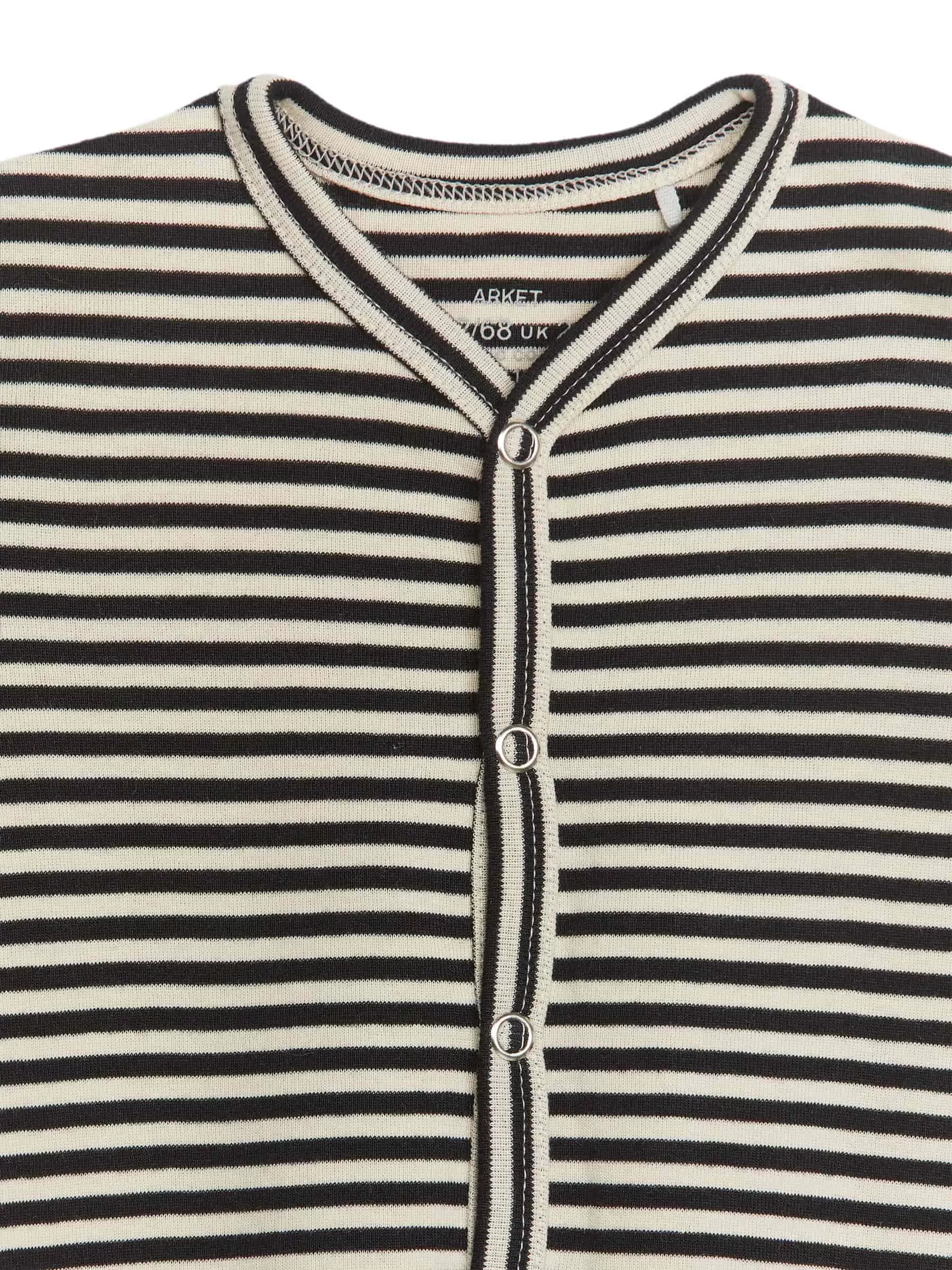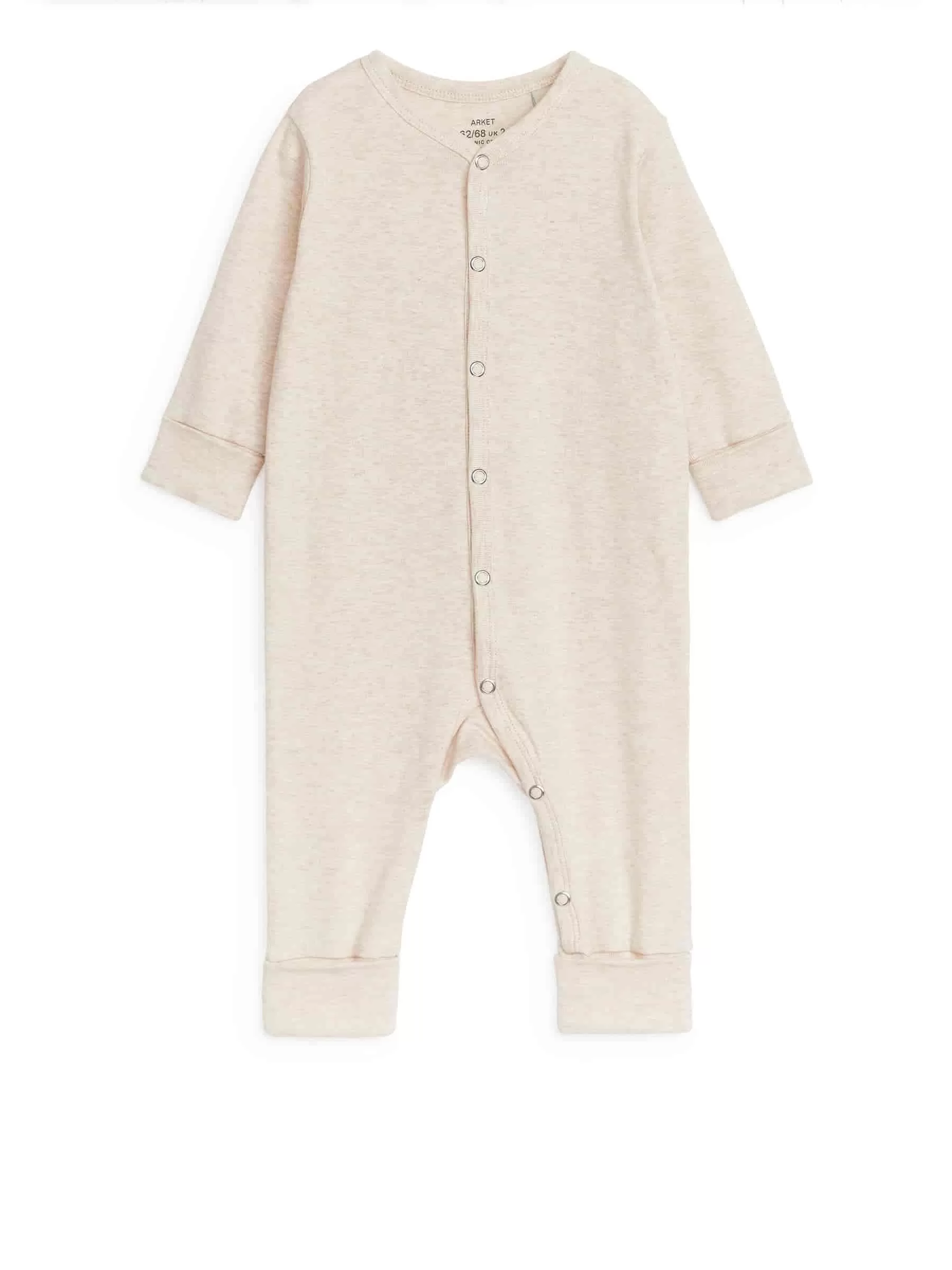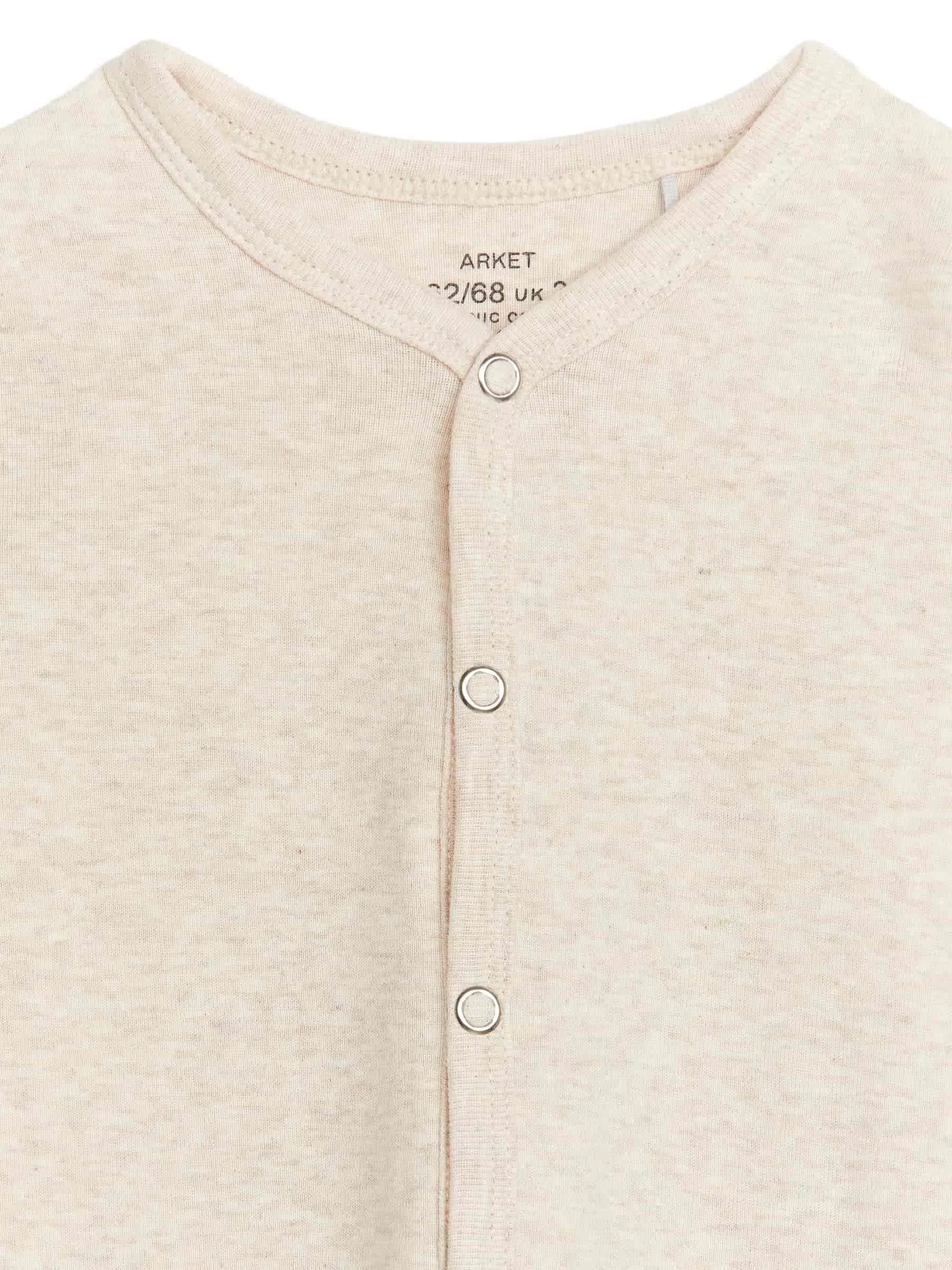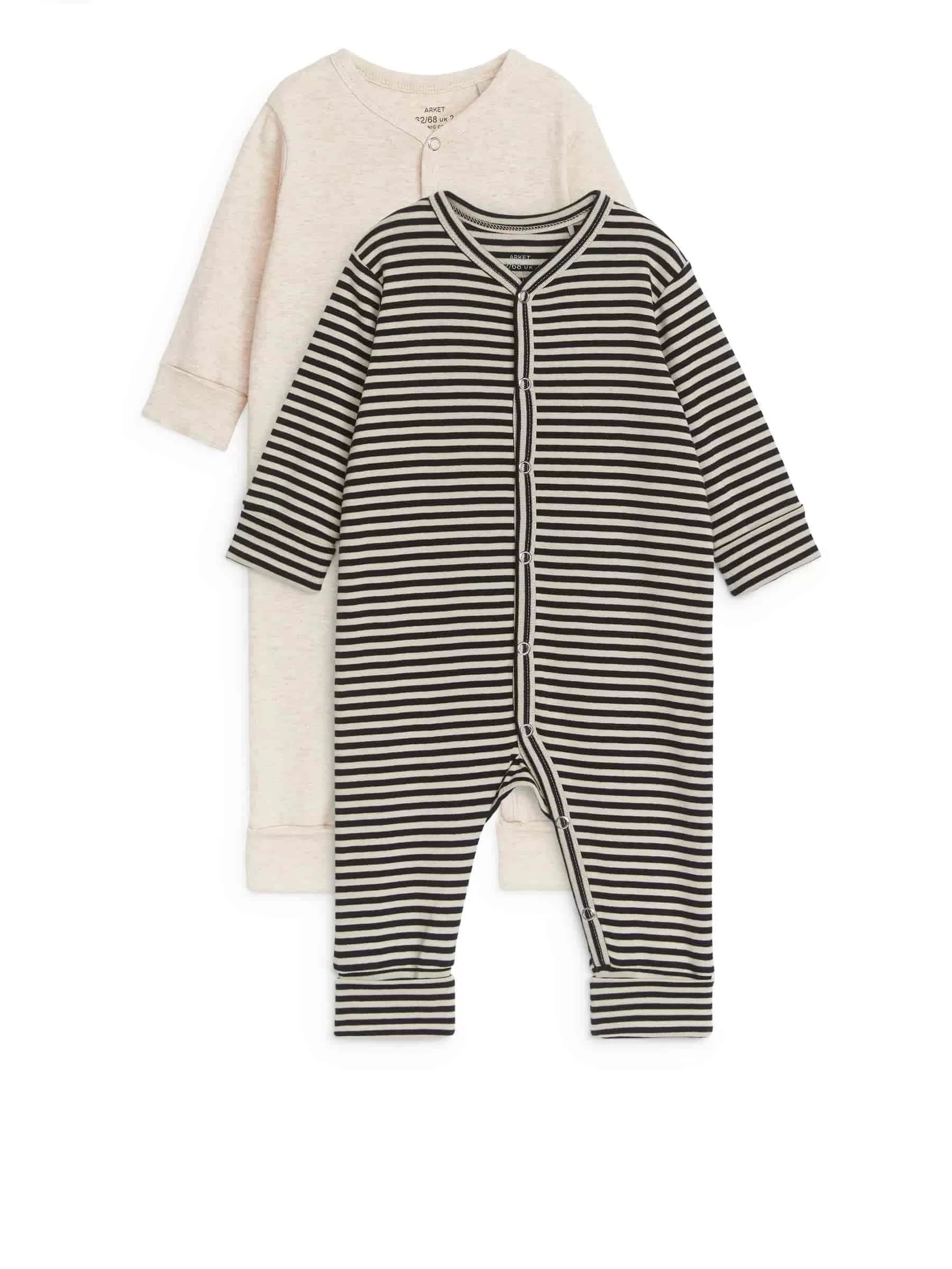 Peto de pijama confeccionado en punto de algodón. Piezas suaves y cómodas detalladas con puños plegables al final de las mangas y las piernas. Botones a presión de arriba a abajo para vestirse fácilmente. Se vende en juegos de dos.