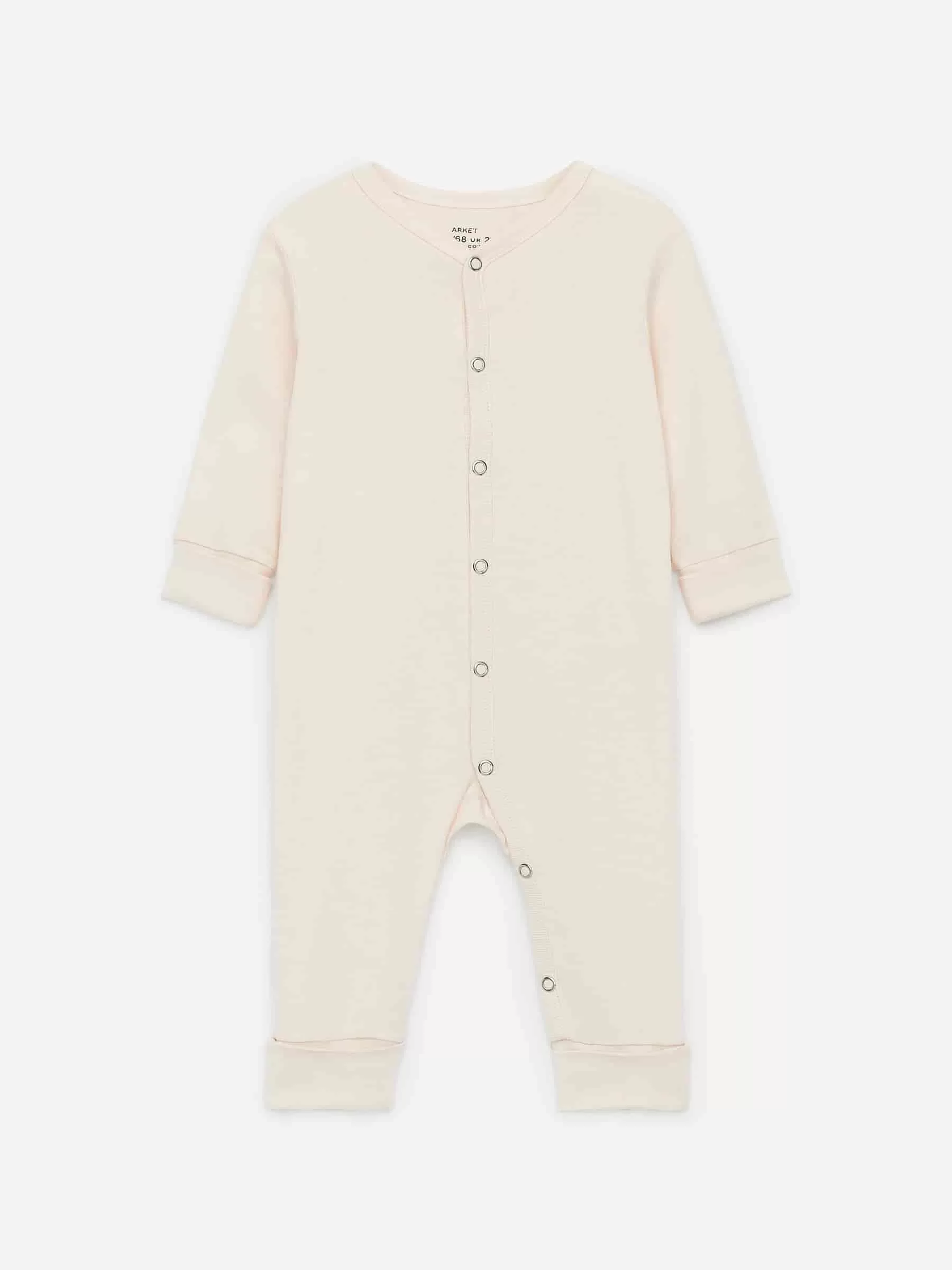 Peto de pijama confeccionado en punto de algodón. Piezas suaves y cómodas detalladas con puños plegables al final de las mangas y las piernas. Botones a presión de arriba a abajo para vestirse fácilmente. Se vende en juegos de dos.