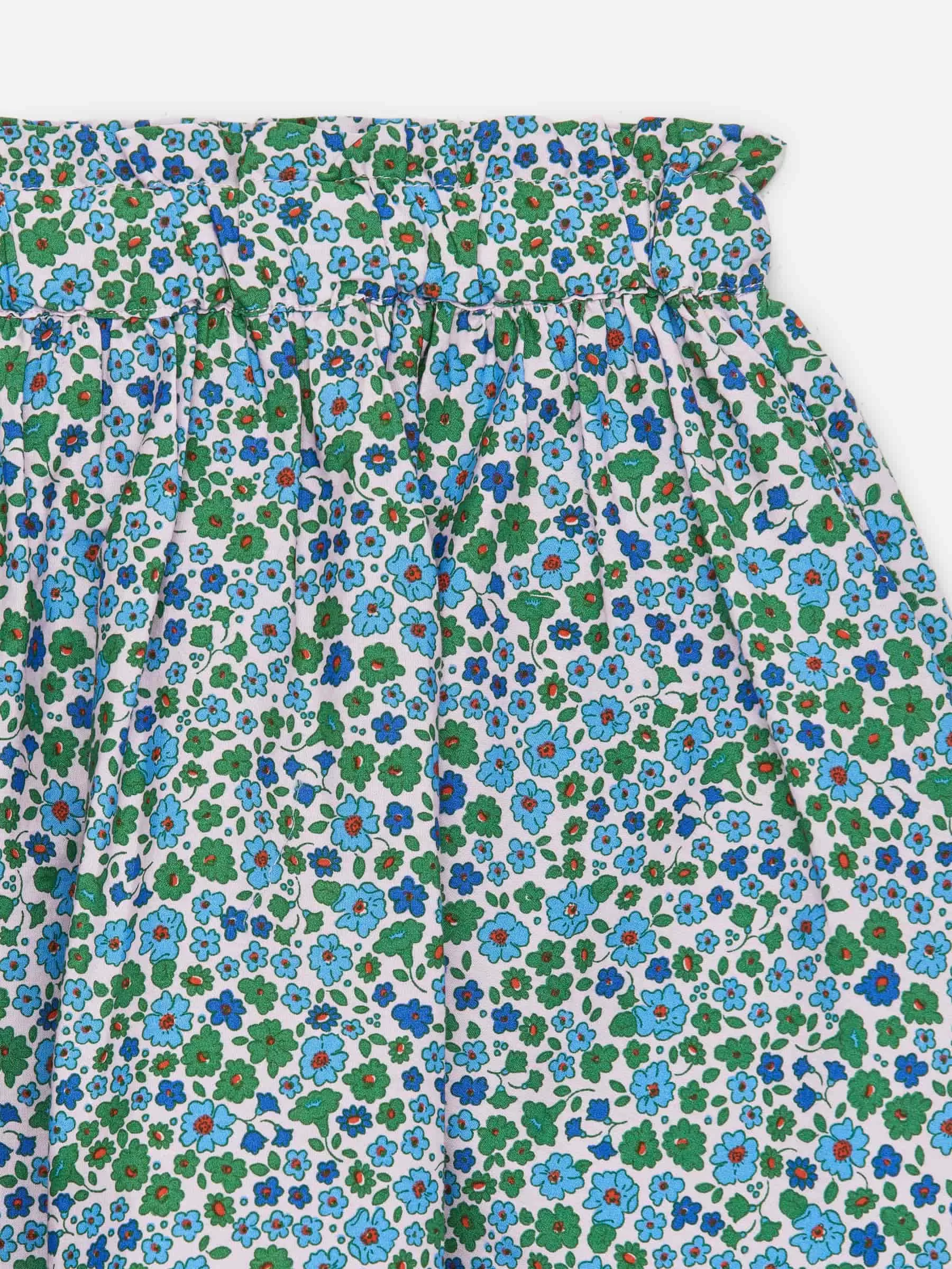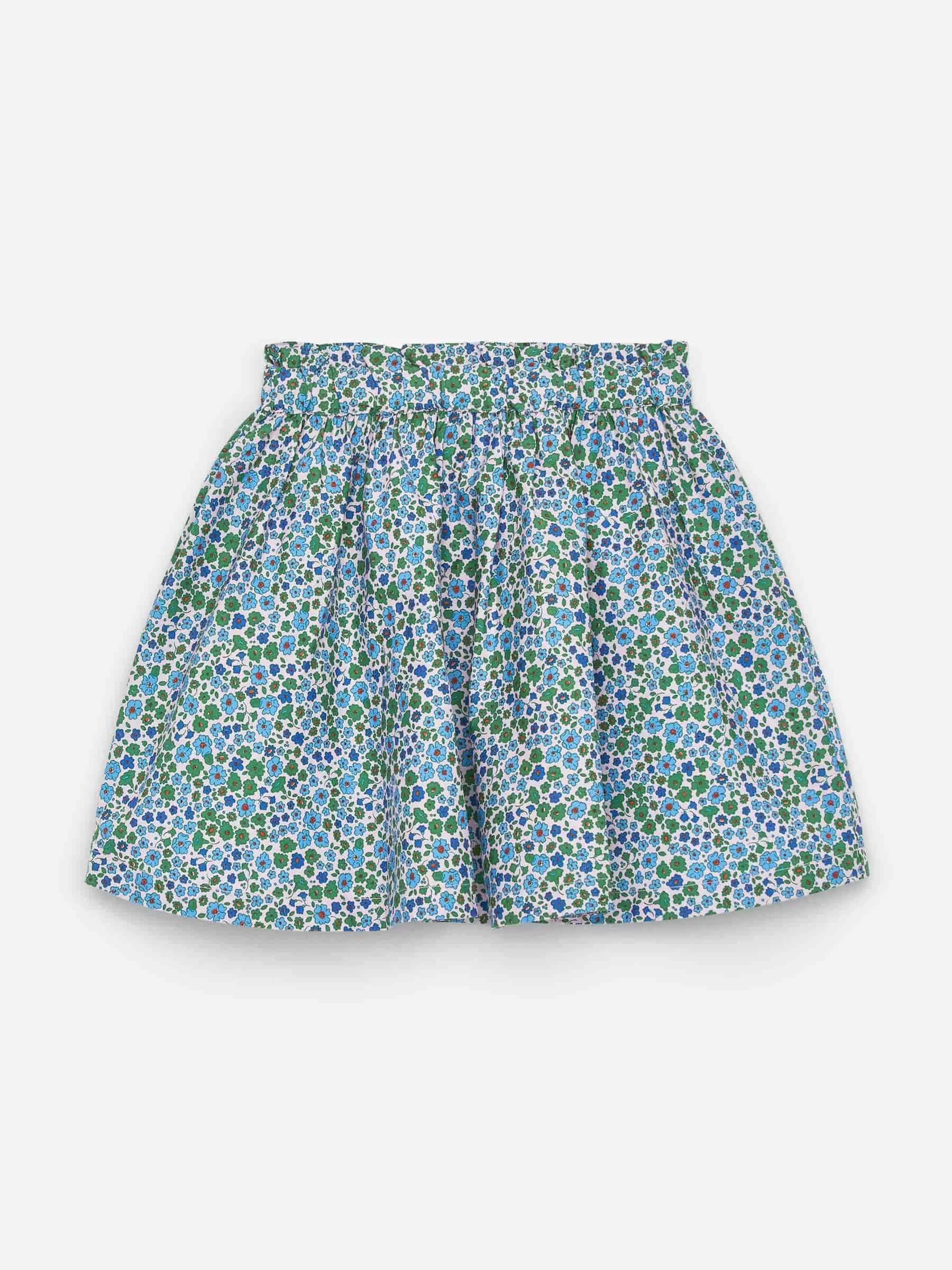 Falda de algodón estampada con cintura paperbag que se ajusta con elásticos en el interior y bolsillos laterales.