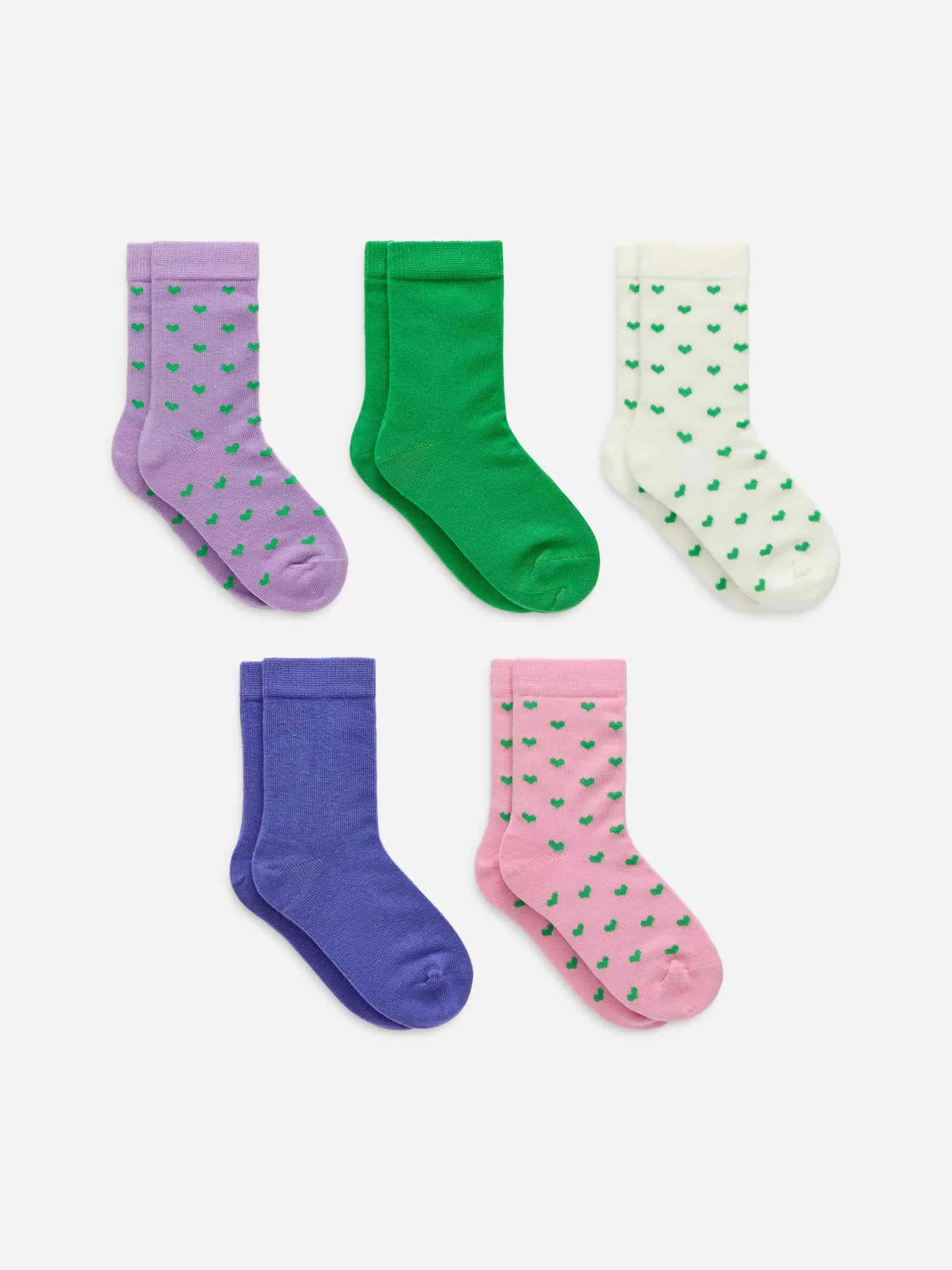 ARKE Niños Juego de 5 calcetines de algodón Rosa/Verde/Lila