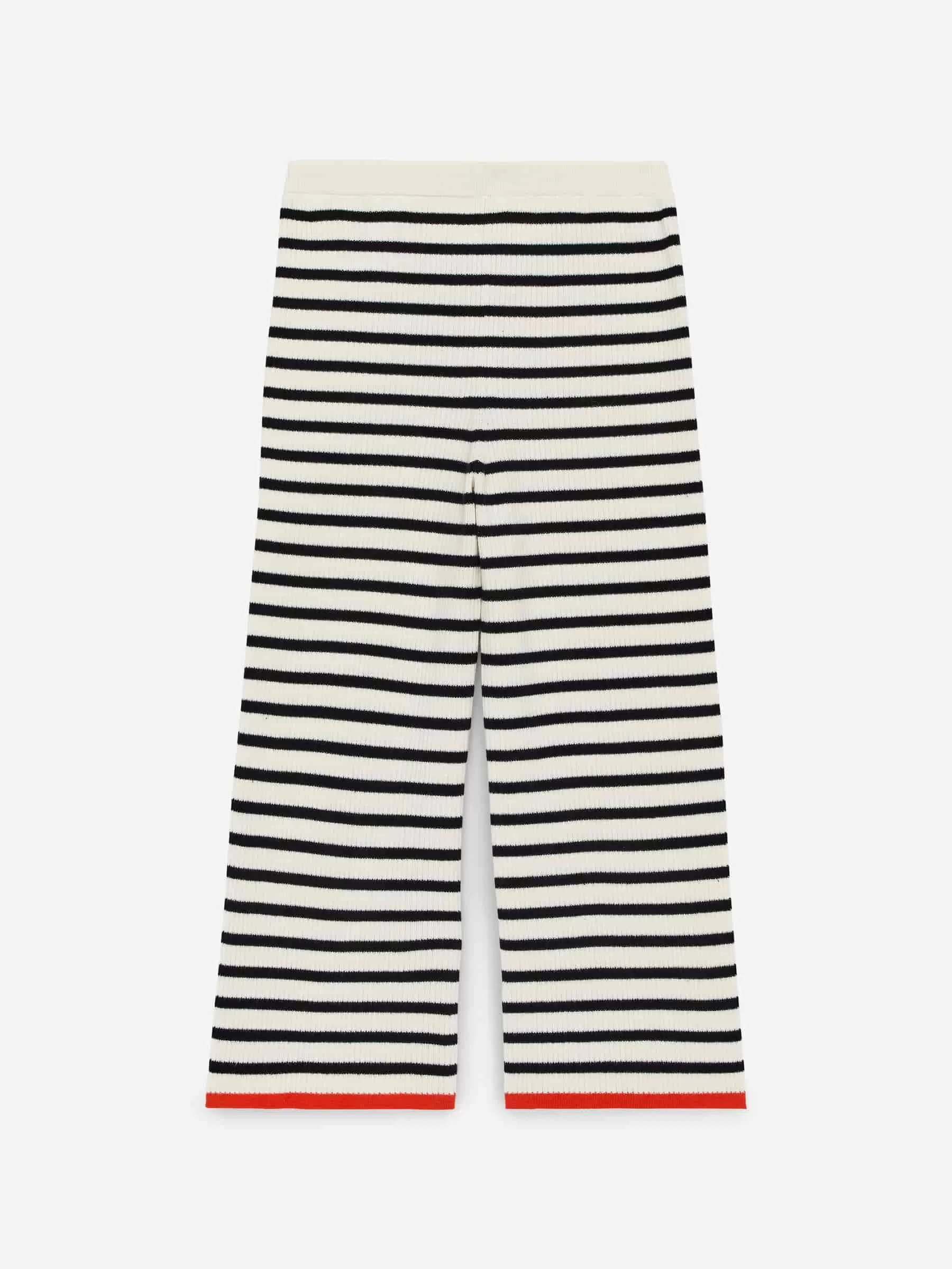 Pantalón en punto de canalé confeccionado en algodón. Canalé en cintura y color en contraste en la parte inferior de las piernas.