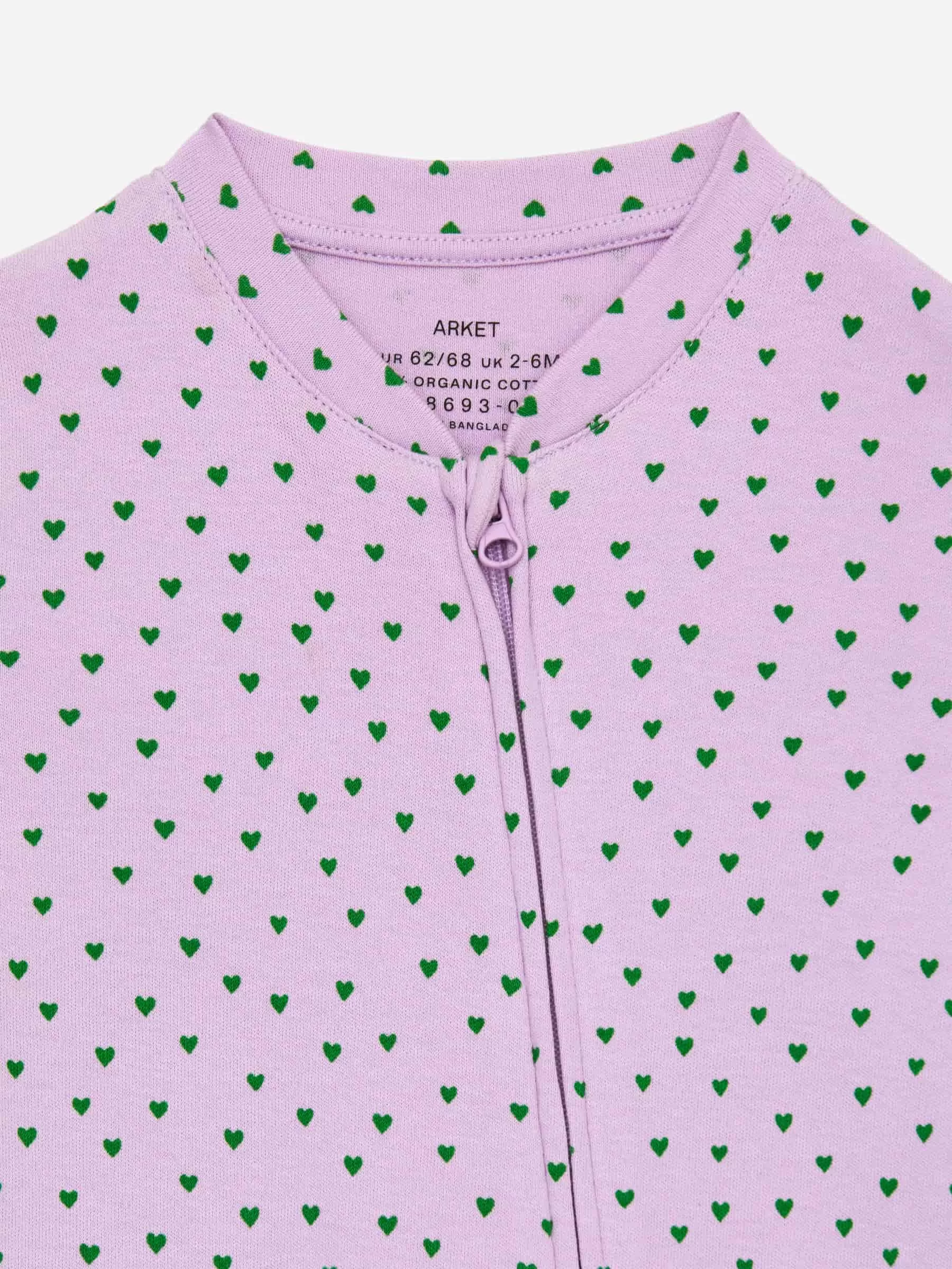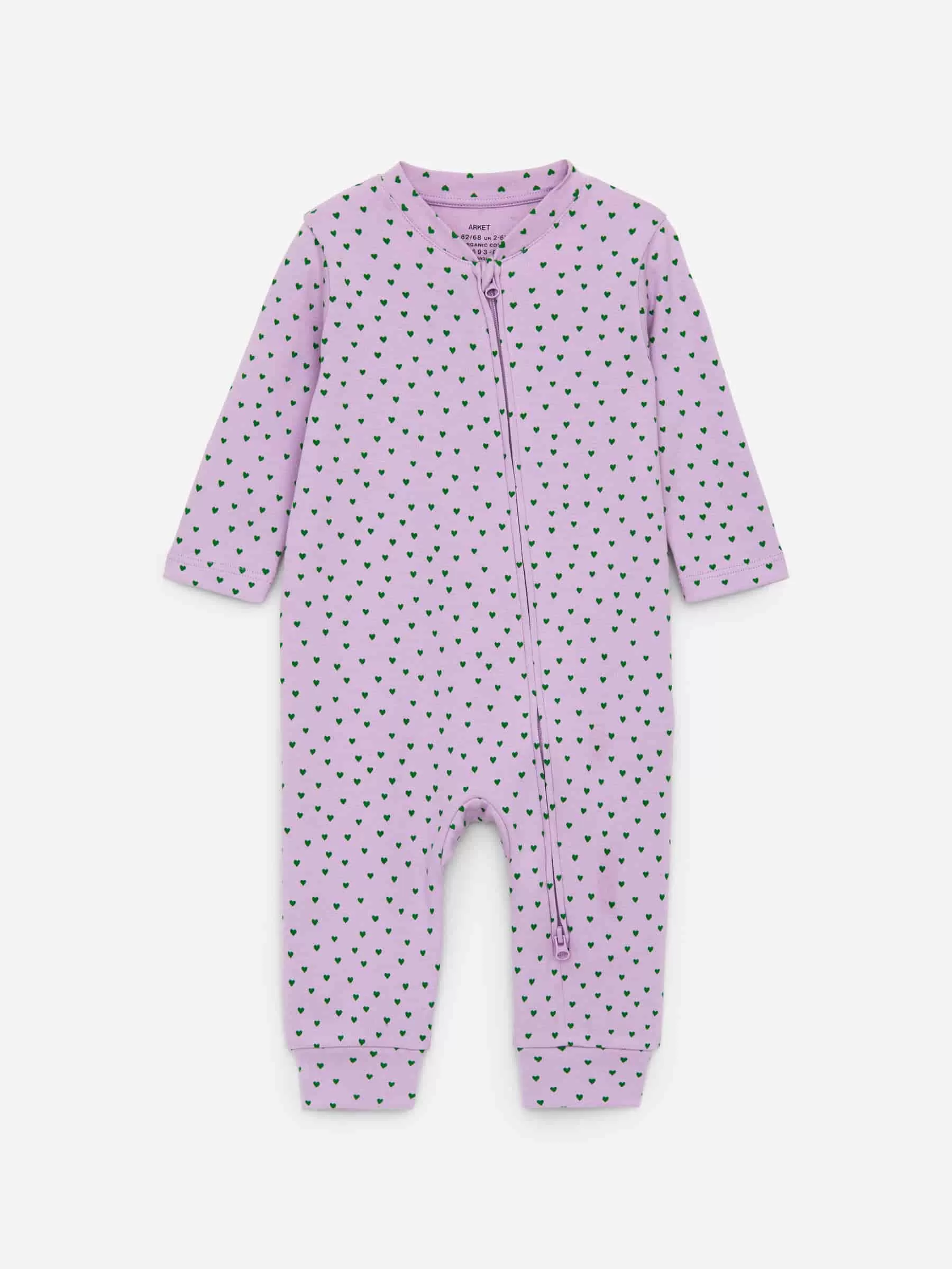 Pijama en punto suave con estampado integral. Detallado con una cremallera diagonal de dos direcciones para vestirse y cambiarse fácilmente.