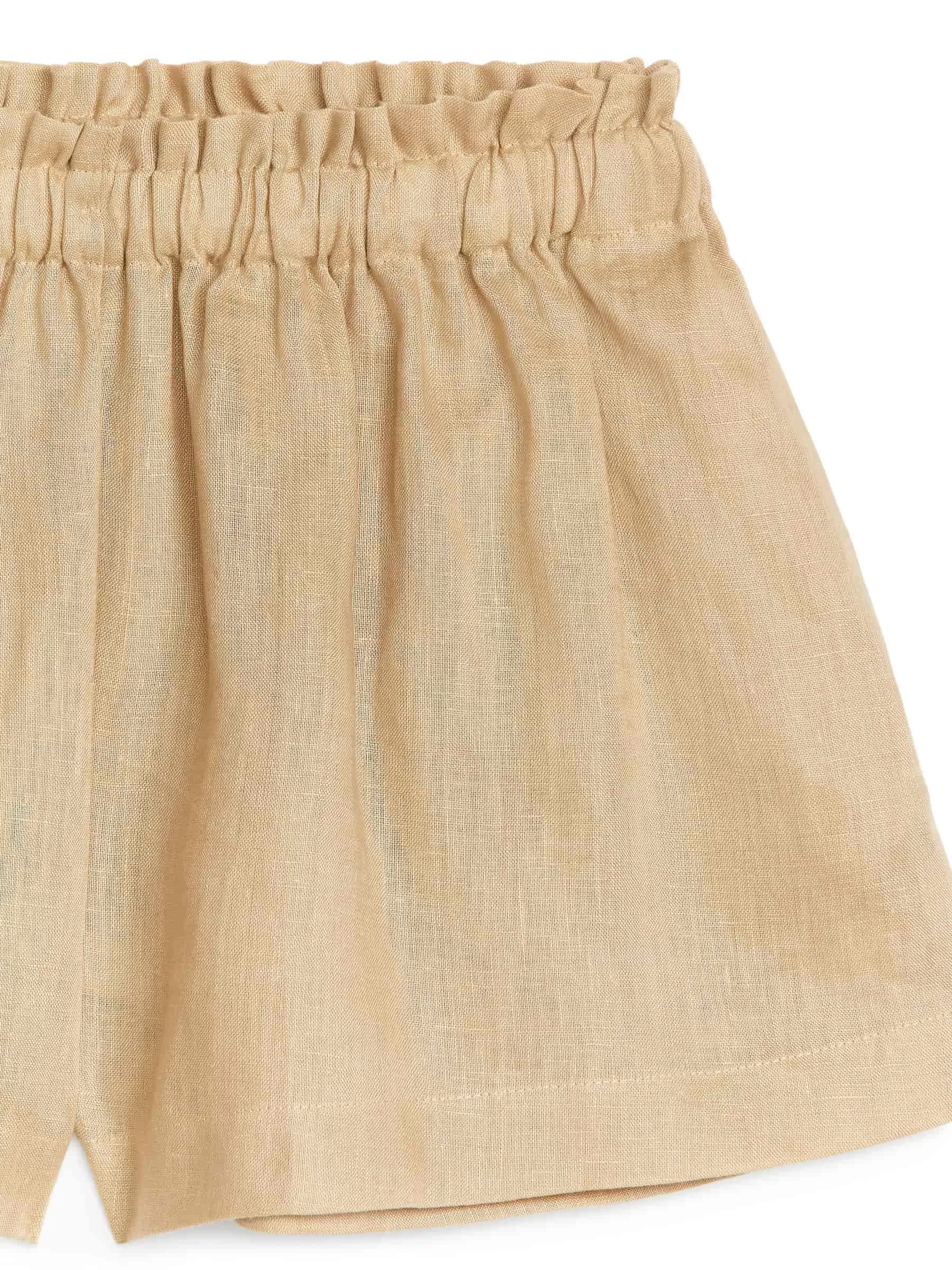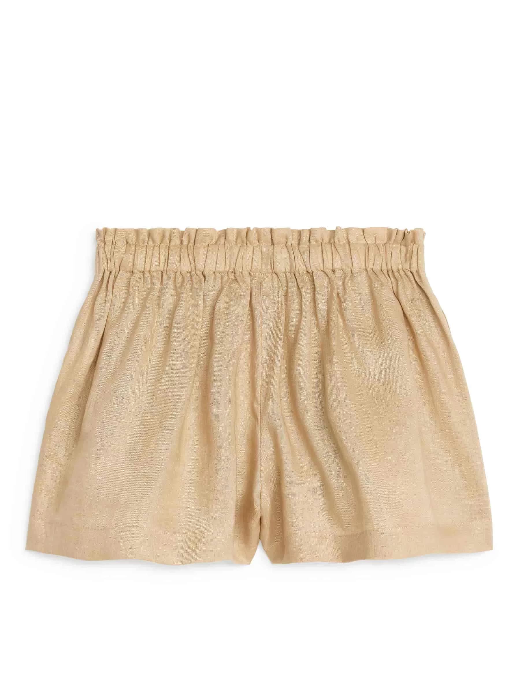 Short ancho de lino con cintura paperbag y bolsillos en costuras laterales.