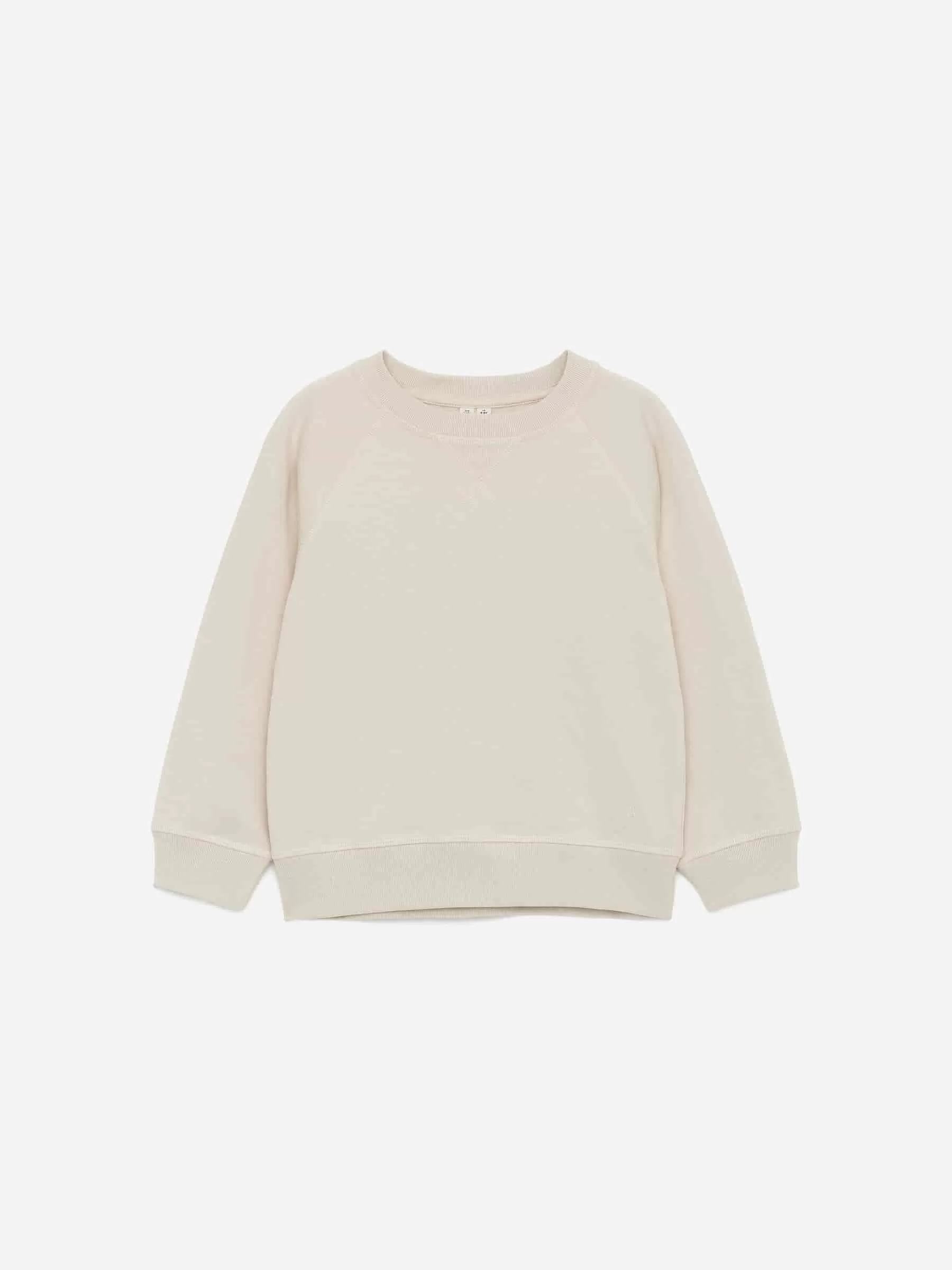 Sudadera esencial en felpa de algodón con la parte inferior ligeramente cepillada para mayor comodidad. Diseñado con cuello redondo y mangas raglán. Ajuste regular.
