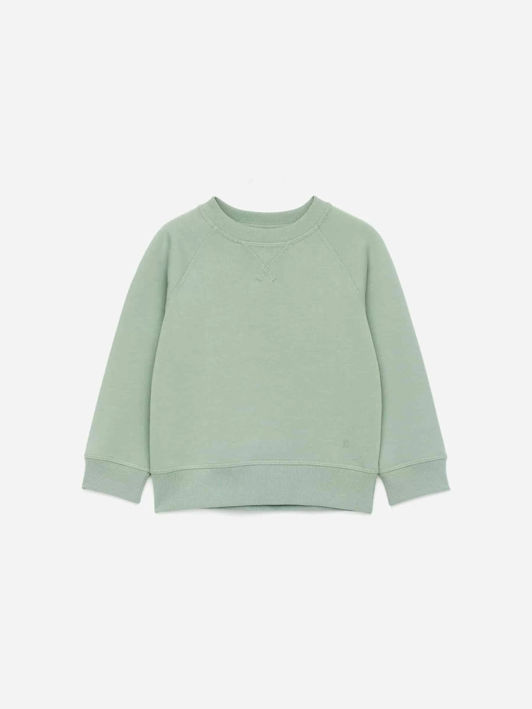 Sudadera esencial en felpa de algodón con la parte inferior ligeramente cepillada para mayor comodidad. Diseñado con cuello redondo y mangas raglán. Ajuste regular.