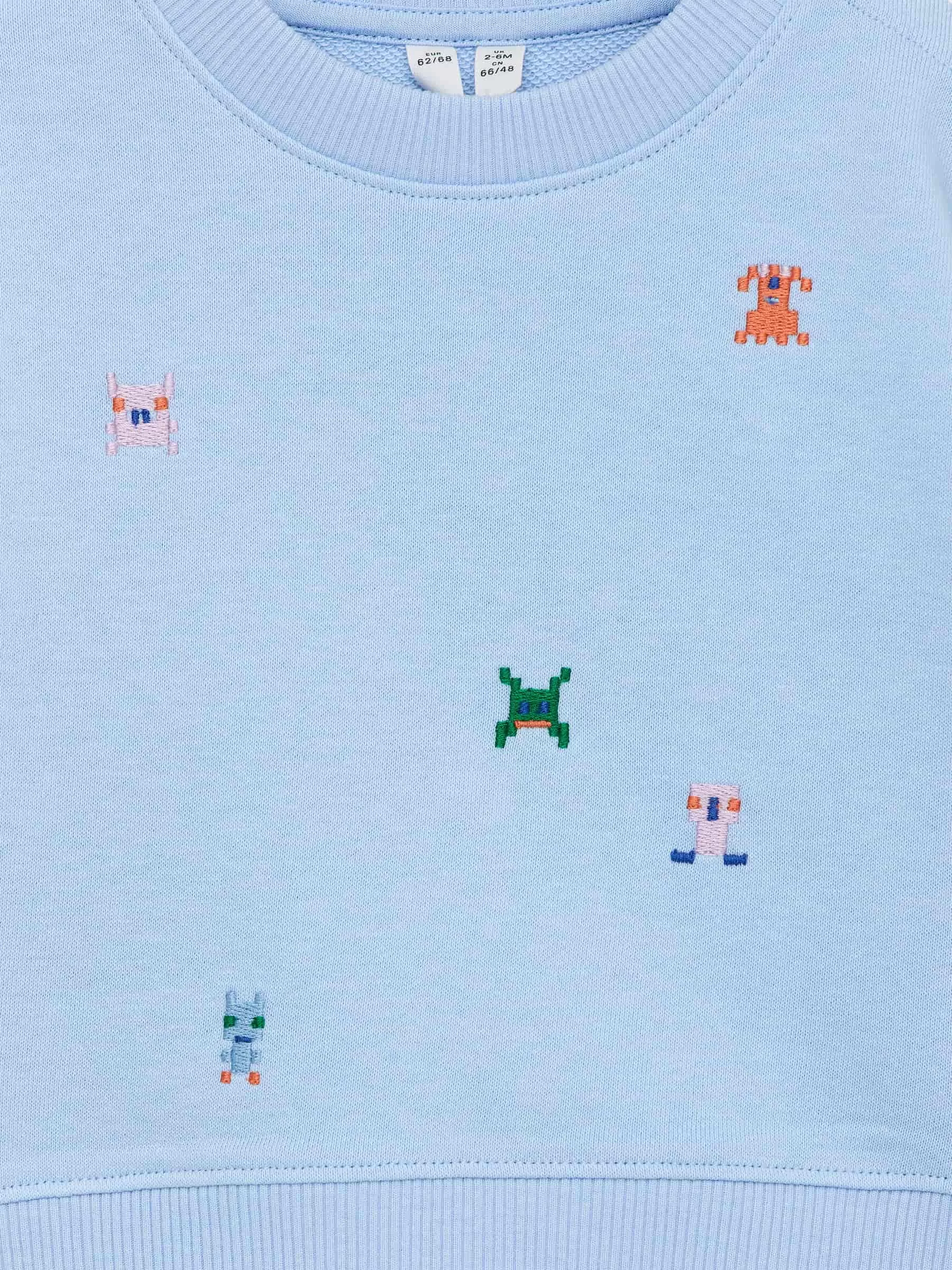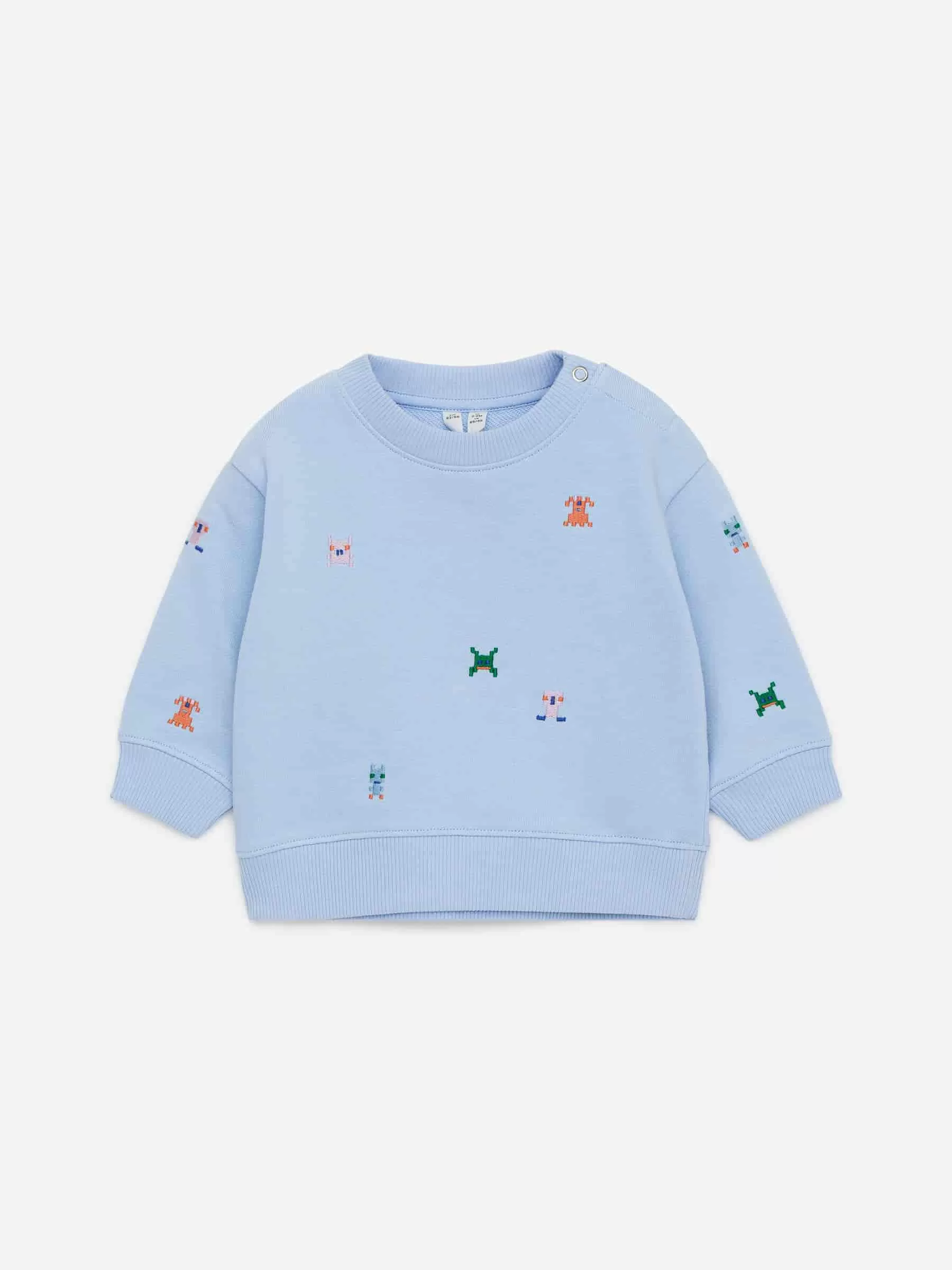 Sudadera de corte regular con detalle bordado. Este modelo está confeccionado en algodón con un interior suave y cepillado. Botón a presión en el hombro para vestirlo fácilmente y ribetes acanalados.