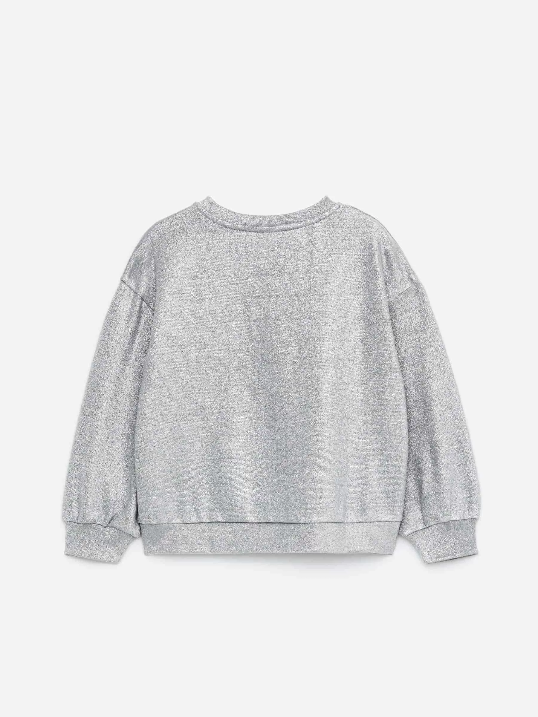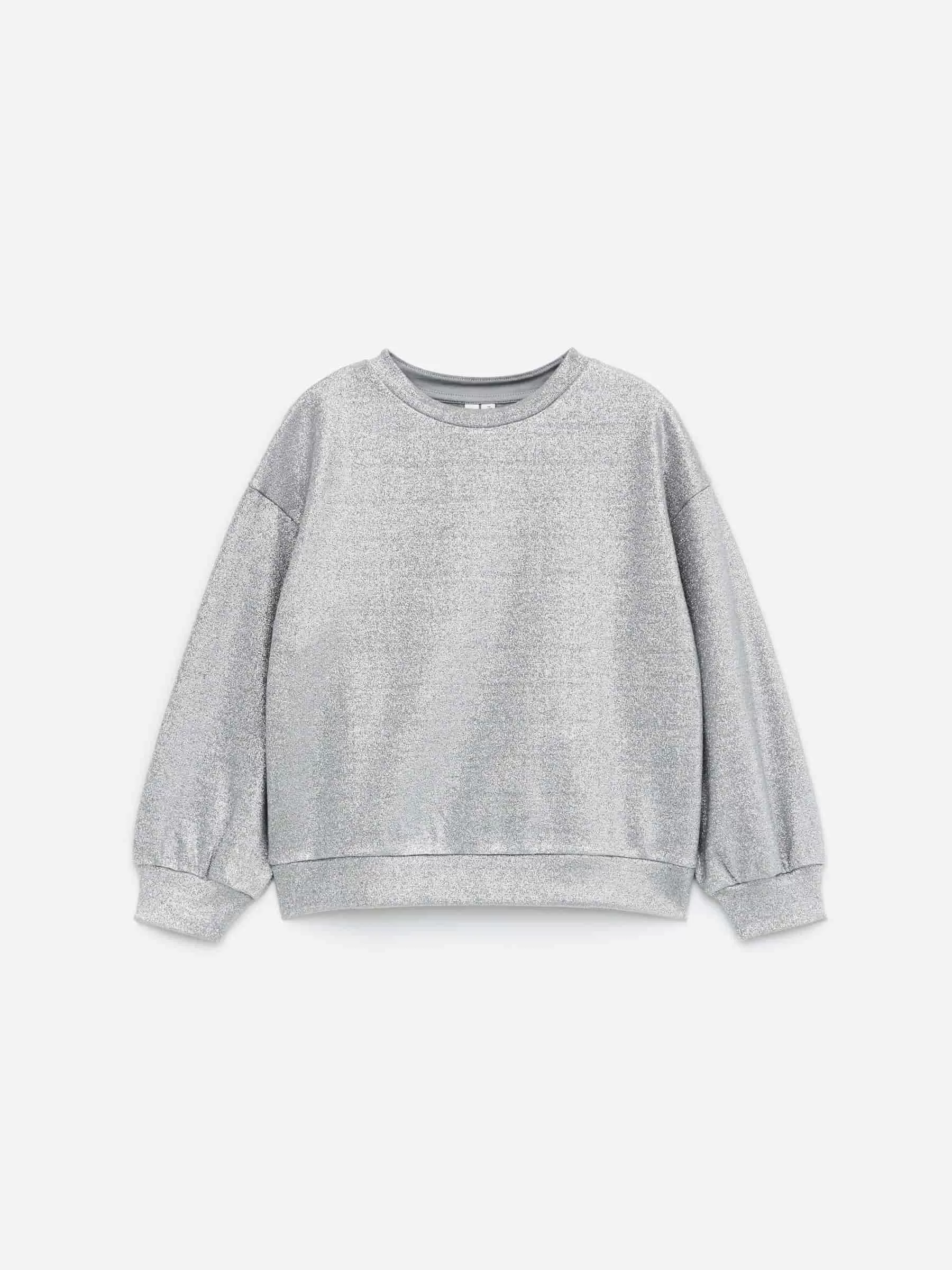 Sudadera confeccionada en algodón elástico y hilo de lúrex metalizado que crea un bonito efecto brillante. Diseñado con cuello redondo y ribetes de canalé. Ajuste relajado.