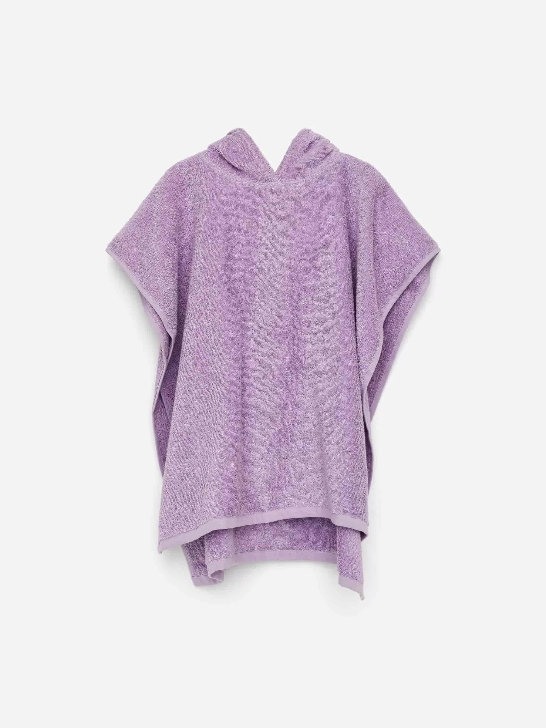 Toalla con capucha confeccionada en un suave tejido de rizo elaborado a base de algodón. Una pieza práctica en la playa o en la piscina. Sin costuras laterales.