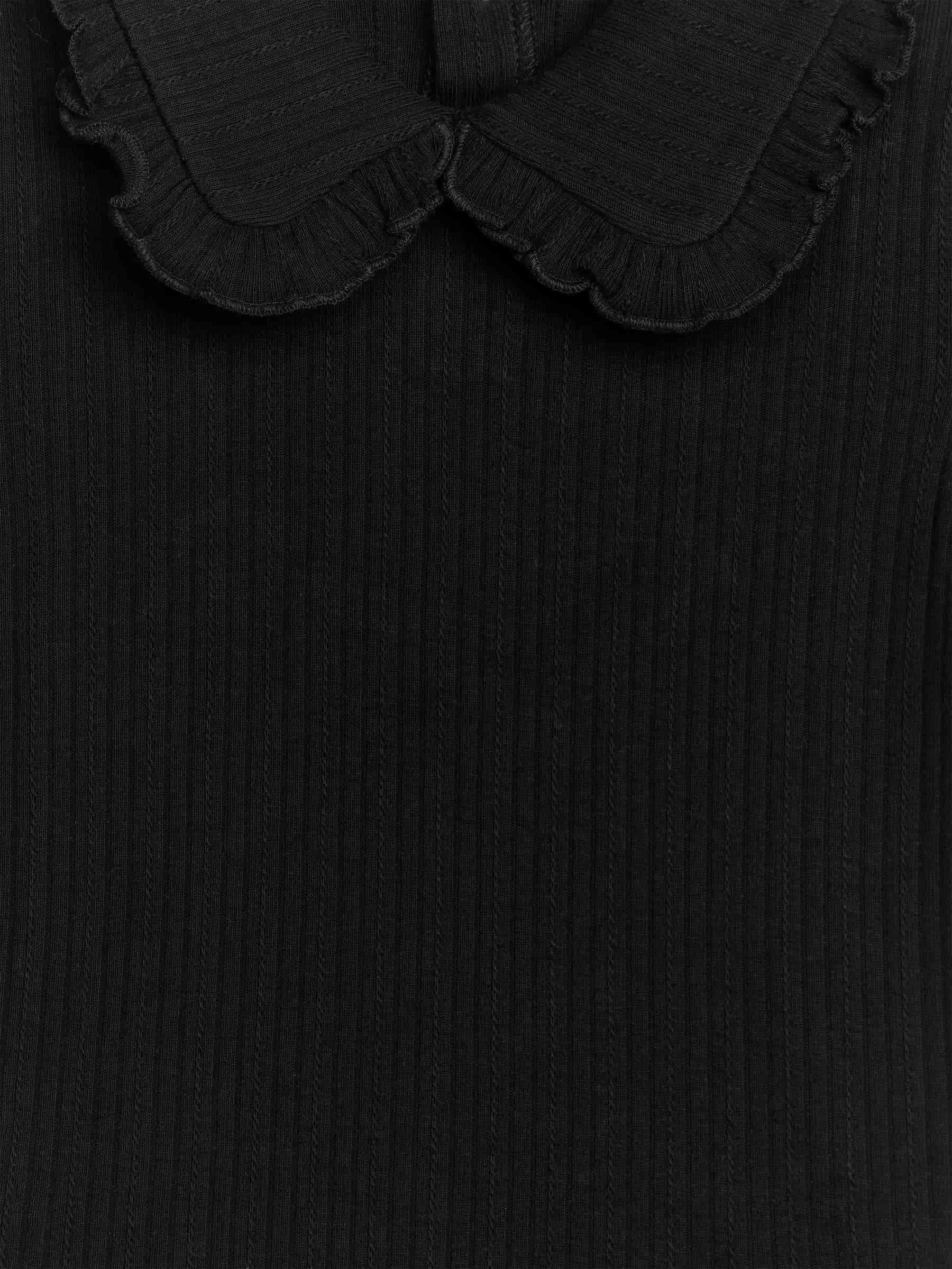 ARKE Niños Top de pointelle con cuello con volantes Negro