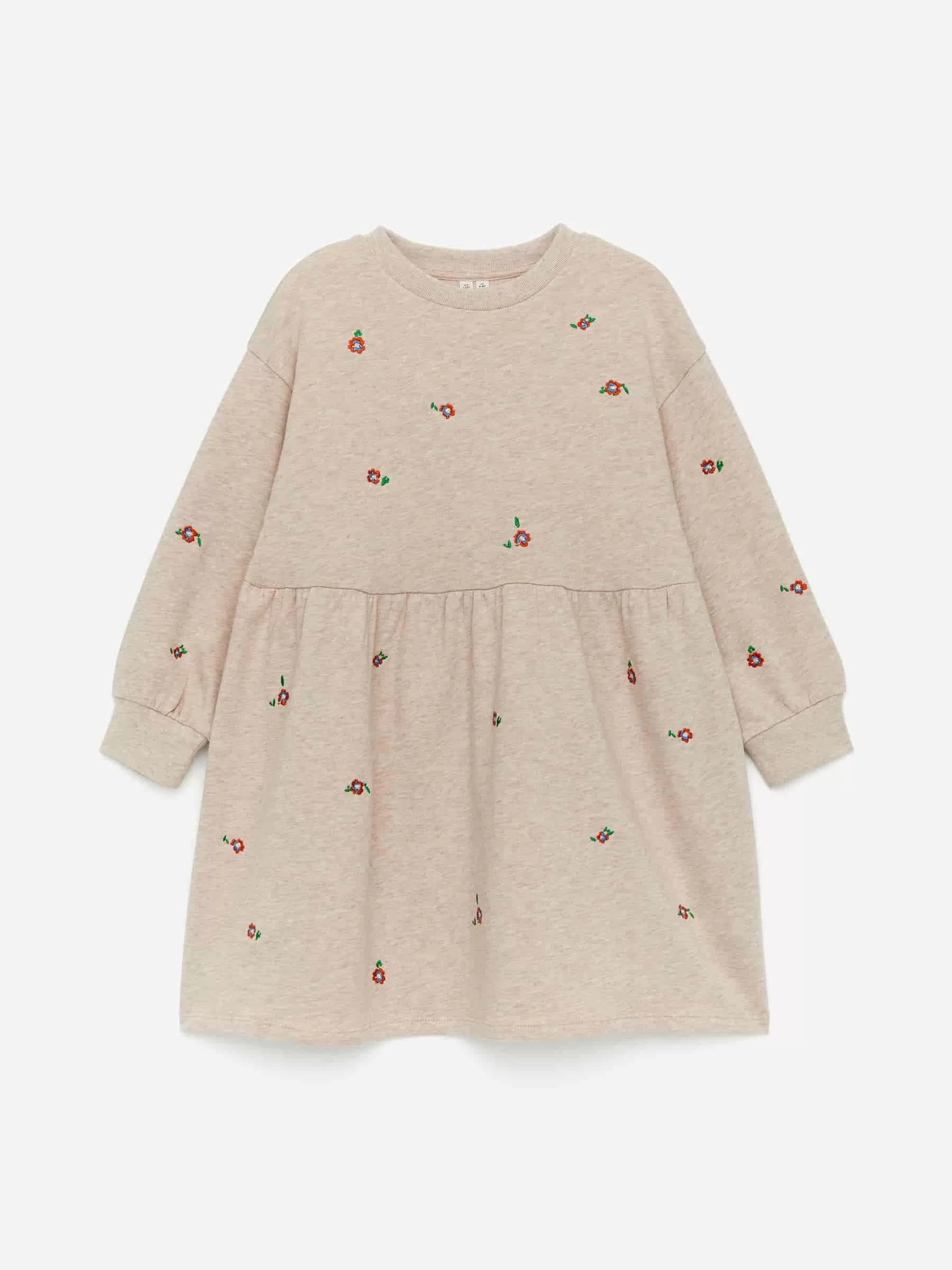 Vestido sudadera oversize en felpa de algodón con gatos bordados. Diseñado con hombros caídos y fruncidos en la cintura. Los ribetes acanalados crean definición en los puños y el dobladillo.
