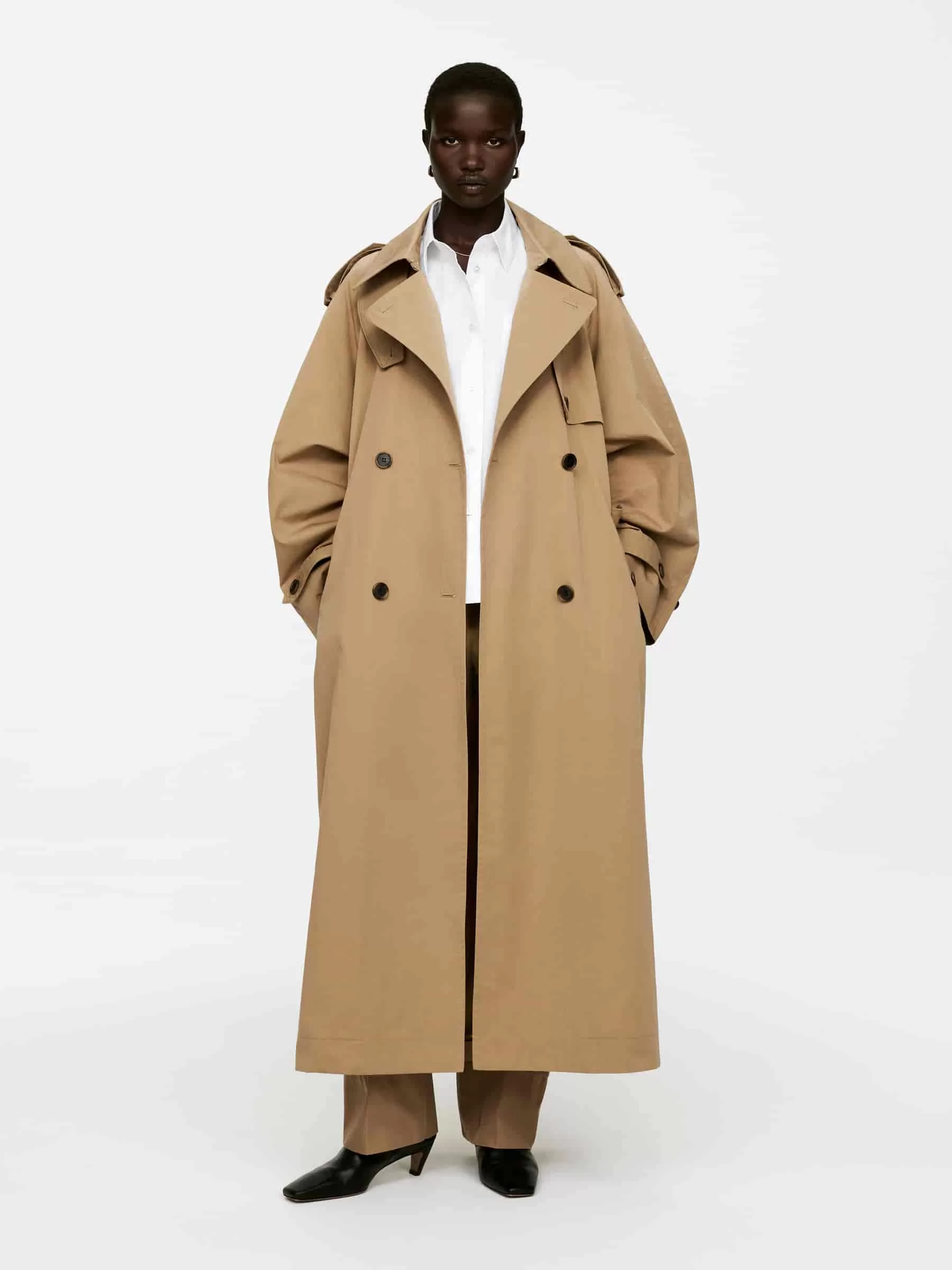 Gabardina clásica confeccionada en una mezcla de algodón. Un modelo extragrande con cinturón con ojales y forro en las mangas. Esta chaqueta forma parte de ARKET 2-in-1 Series™, un sistema de capas funcionales y forros aislantes que se pueden usar como prendas individuales o unidas entre sí.