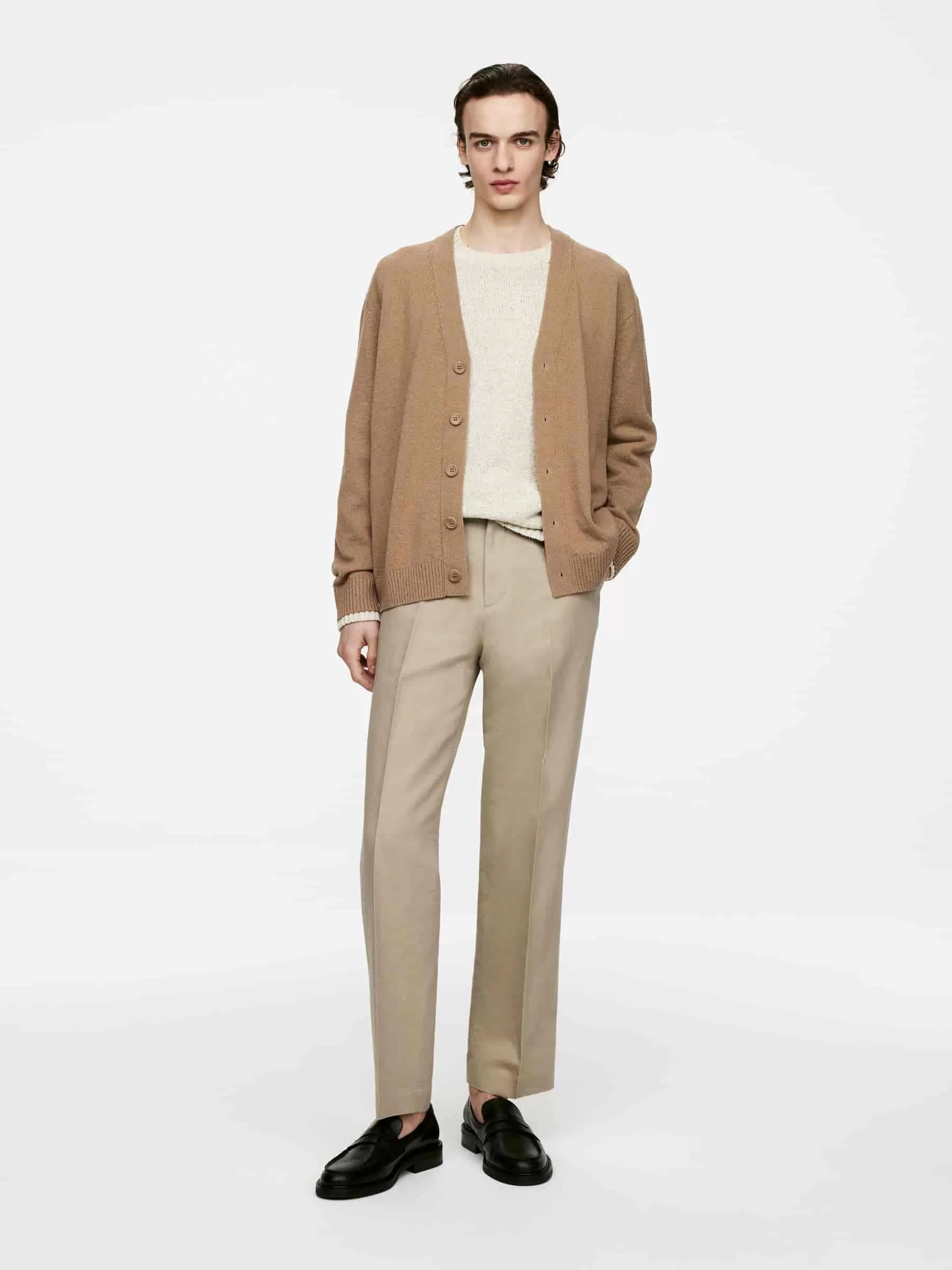 Pantalón confeccionado en mezcla de lino y algodón. Corte para un ajuste regular. Detallado con bolsillos inclinados y dos bolsillos ribeteados en la parte trasera. Cierre de corchetes y bragueta con cremallera. Chaqueta a juego disponible.